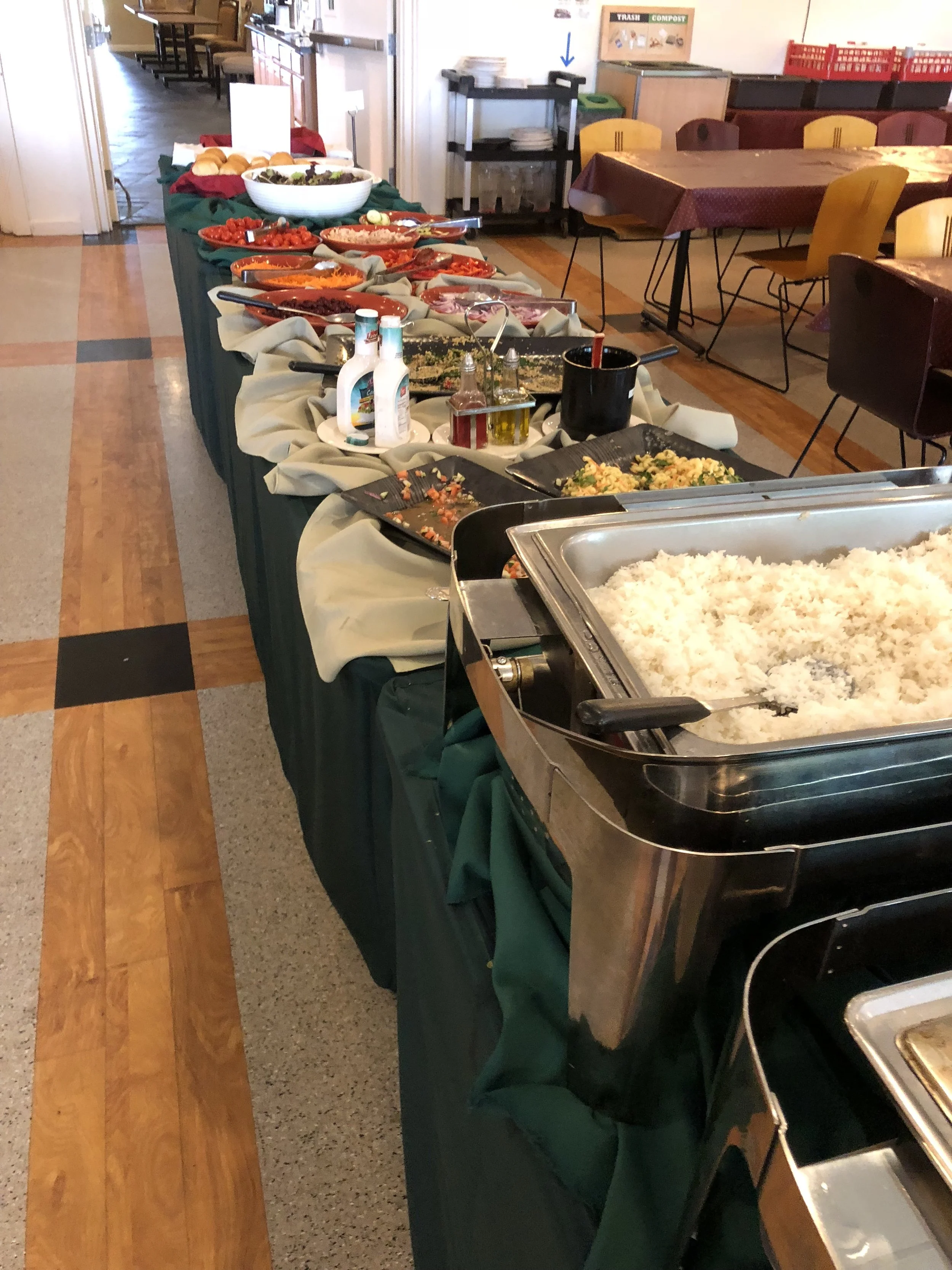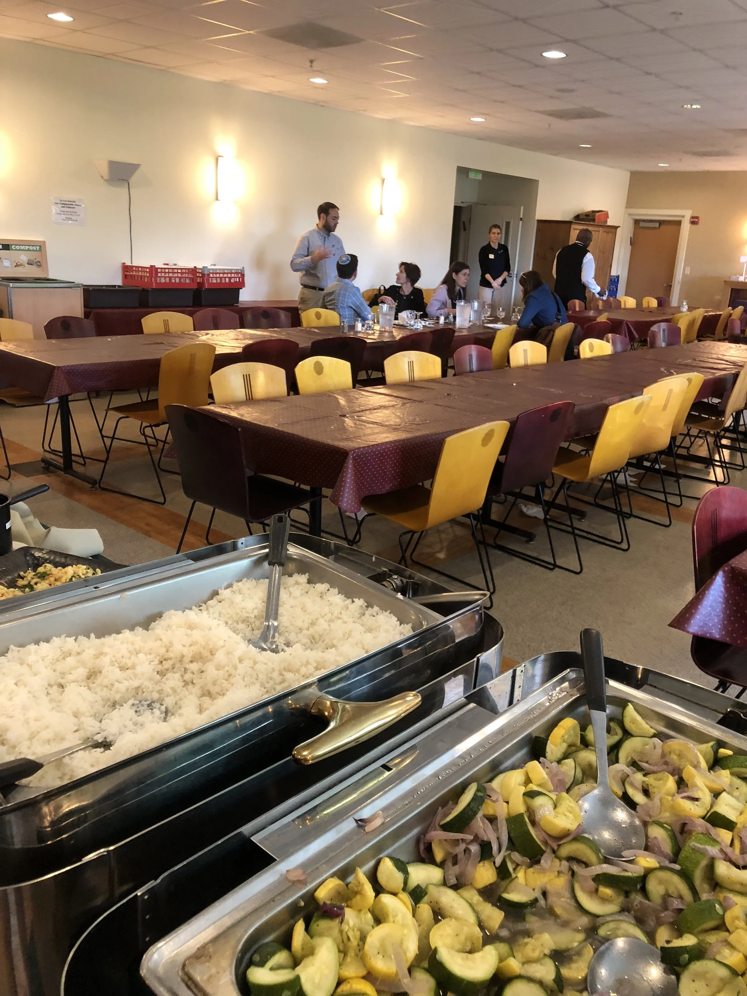We arrived at the restaurant first so we got to scout the best table. It was so exciting to see real food. They started us off with wine, bread and olive oil. I don’t even know if it was good, but it tasted amazing. For appetizers they gave us fried green tomatoes, pulled beef eggrolls, and ‘crab’ cakes. I had some of the egg rolls and they were great. For the main I got a 12 oz steak with string beans and a mushroom rice. They had fries but I was fried out. It was SO good. The steak was heaven. For dessert I had some lemon tart that wasn’t great, but it was better than any other dessert we had had (aside from the ice cream, but apples and oranges). Debbie, the Chief of HR, sat at our table, which made for fun discussions. I have to say, everyone here is super nice. I mean, just the fact that the head of HR for the entire organization came to hang out at our little retreat says a lot. I