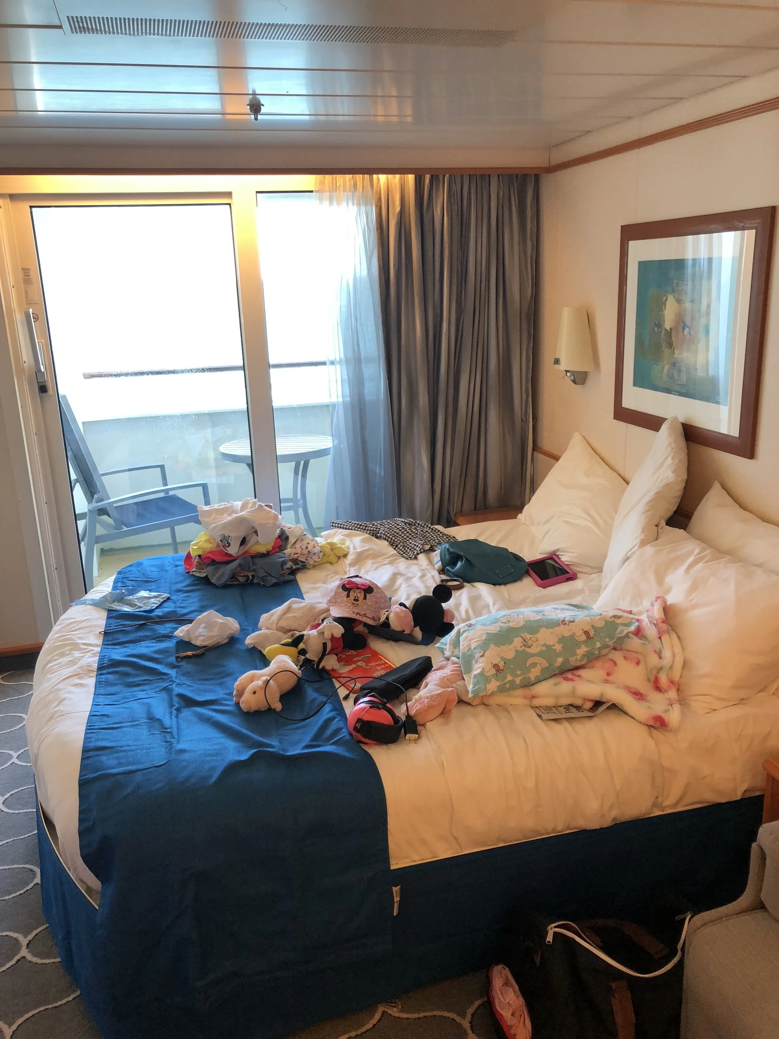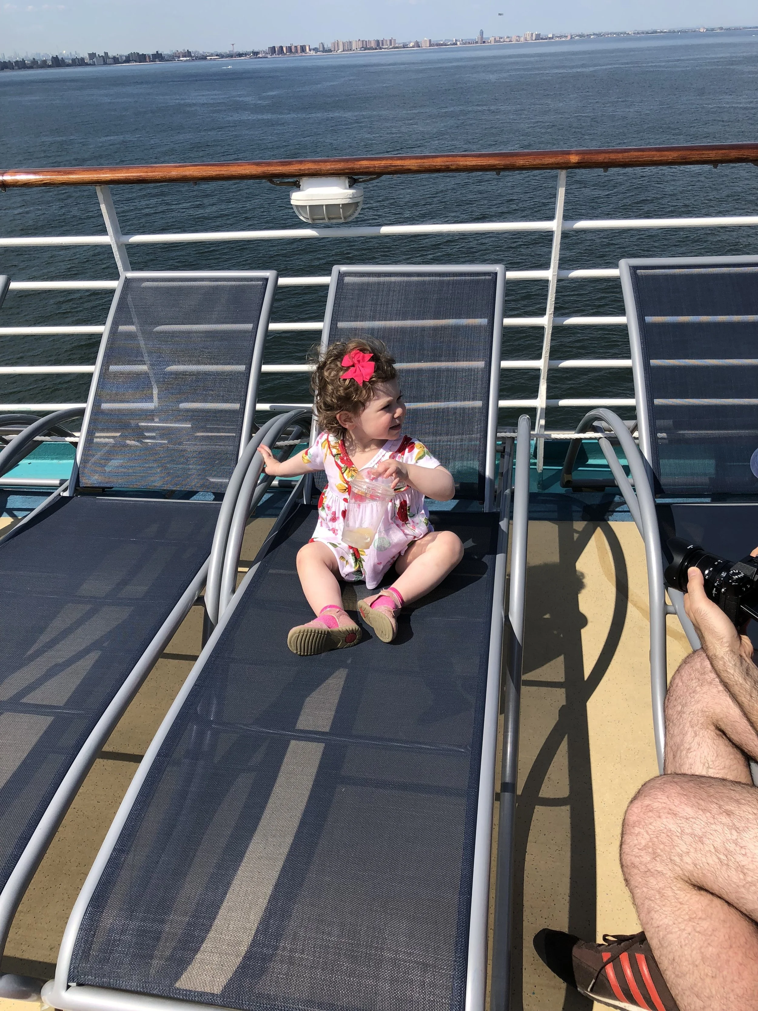 So we went to guest services. Guest services wasn’t much more helpful. The woman actually didn’t even apologize – she just said the crib is not for a two year old. It actually doesn’t make a lot of sense – kids stay in cribs until two, so what are they thinking? I was like give me someone who can help me brainstorm a solution here. I can’t believe they were just going to say ‘too bad.’ I said what, should I stick her on the floor with a blanket? They ended up getting the deck attendant on the phone, who said they would bring a mattress to put on the floor. Awesome.