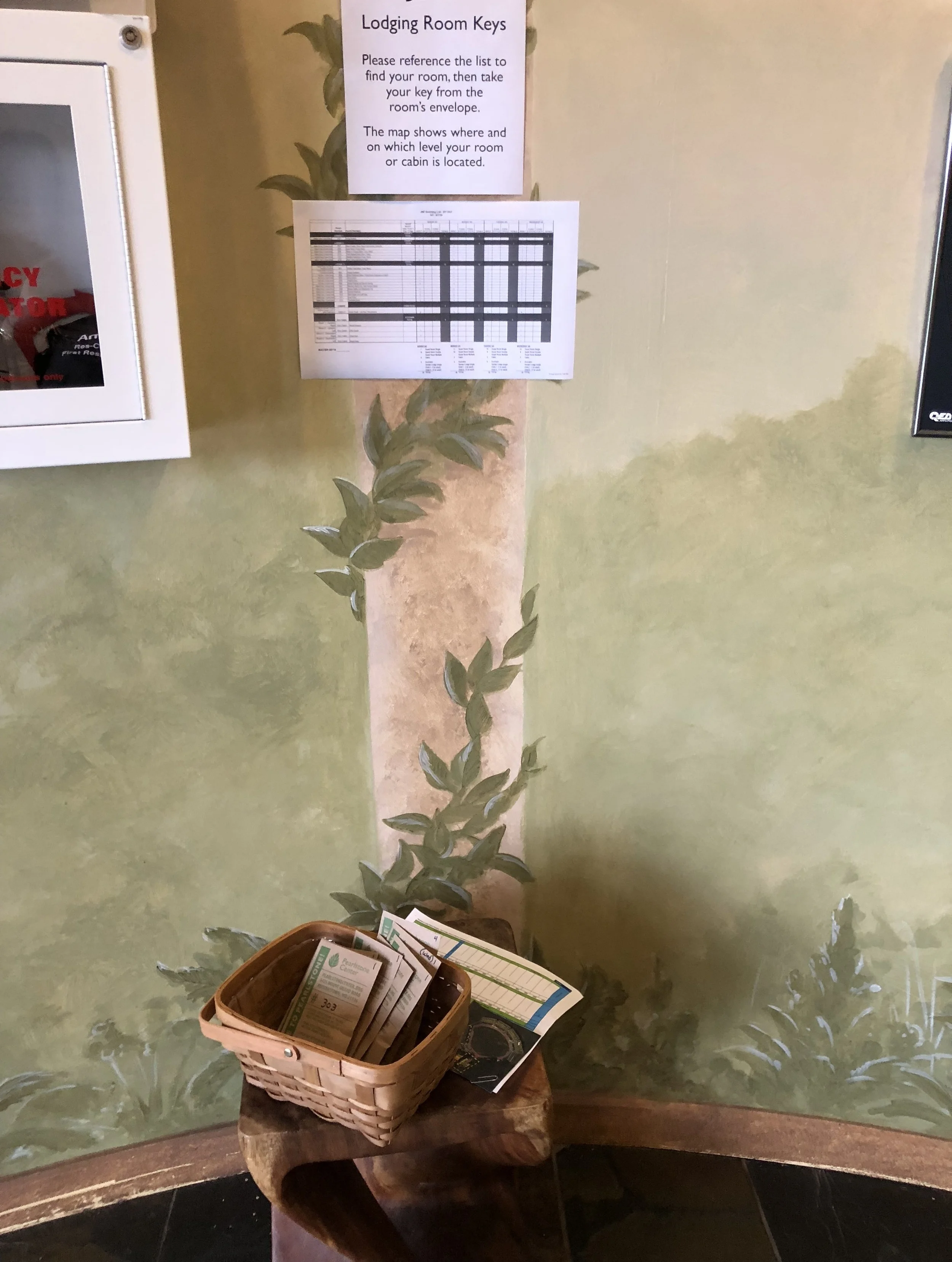 When we got to the destination we couldn’t really figure out where to go so we were driving on these one lane roads in the middle of fields. Finally we saw a sign that said “Pearlstone Retreat” and we followed the signs to the main house. Poor driver. When we pulled up I saw two colleagues so I knew I was in the right place. I went into the main house and found that there was no one to check me in. Instead, my keys were in a little basket, with the room assignments posted on a paper above it. For a moment I thought back to the Amsterdam Waldorf where they gave us a choice of four different scents to be sprayed nightly during turndown.