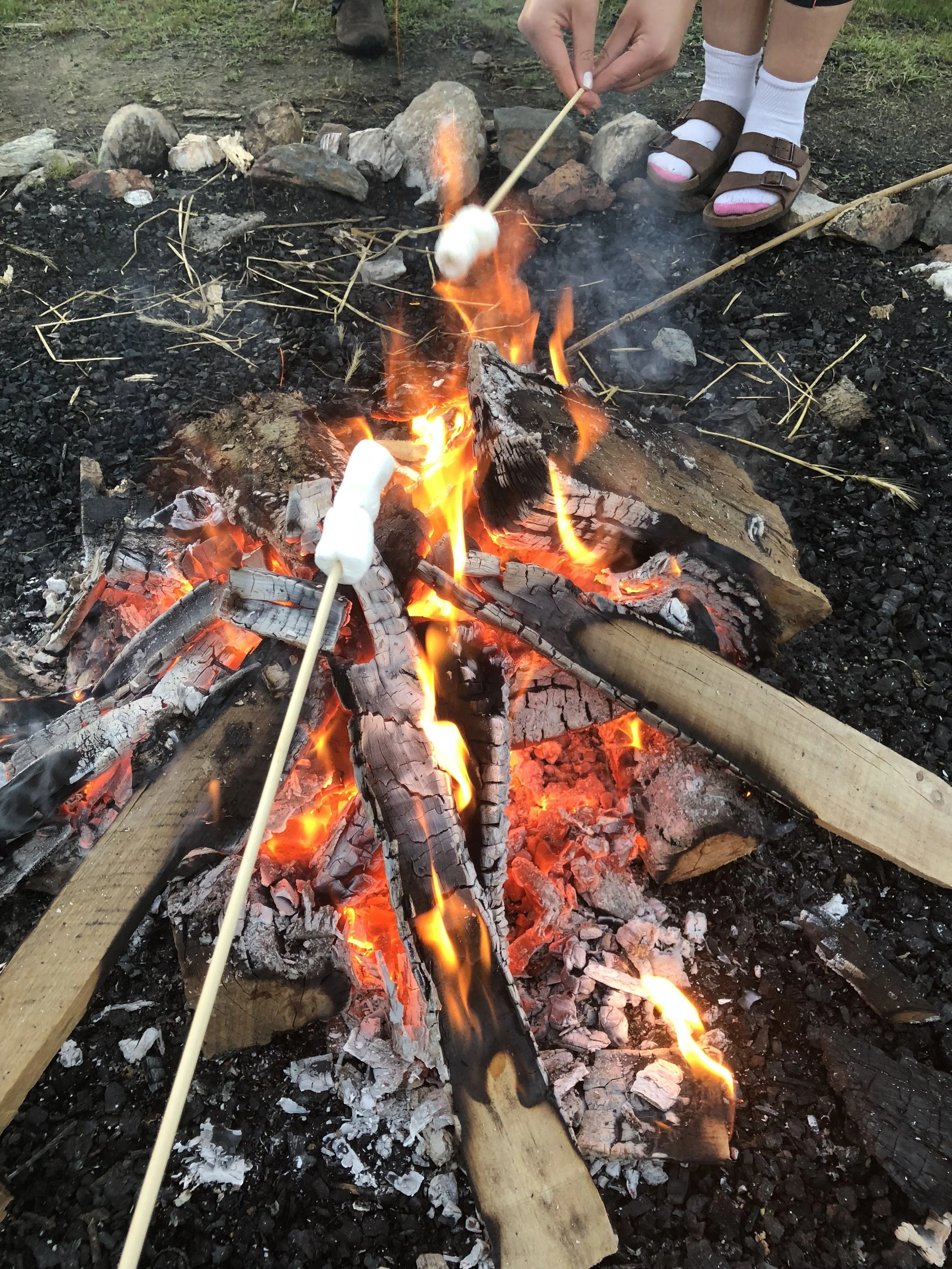 After dinner we had a bonfire with snacks. I made two smores, one regular and one with a reeses pb cup. We also had popcorn, milk duds, and twizzlers. It was all good. Someone was playing guitar. It was all just so campy and made me glad I neveer went to camp. We came back to the room. The big bug hadn't made its way yet, but there were a few ants. Isn’t that nice? Back in the room I showered and went to to bed. Can't wait to see what tomorrow brings.