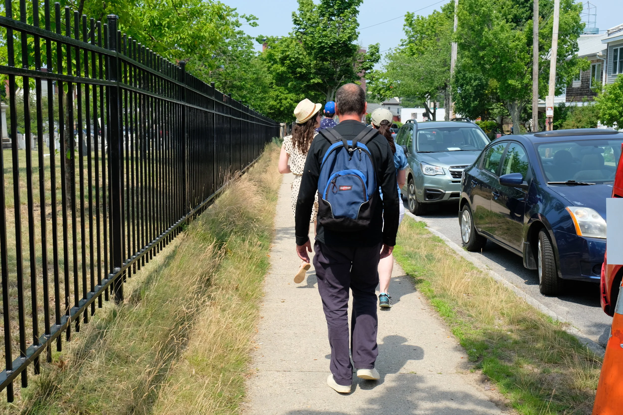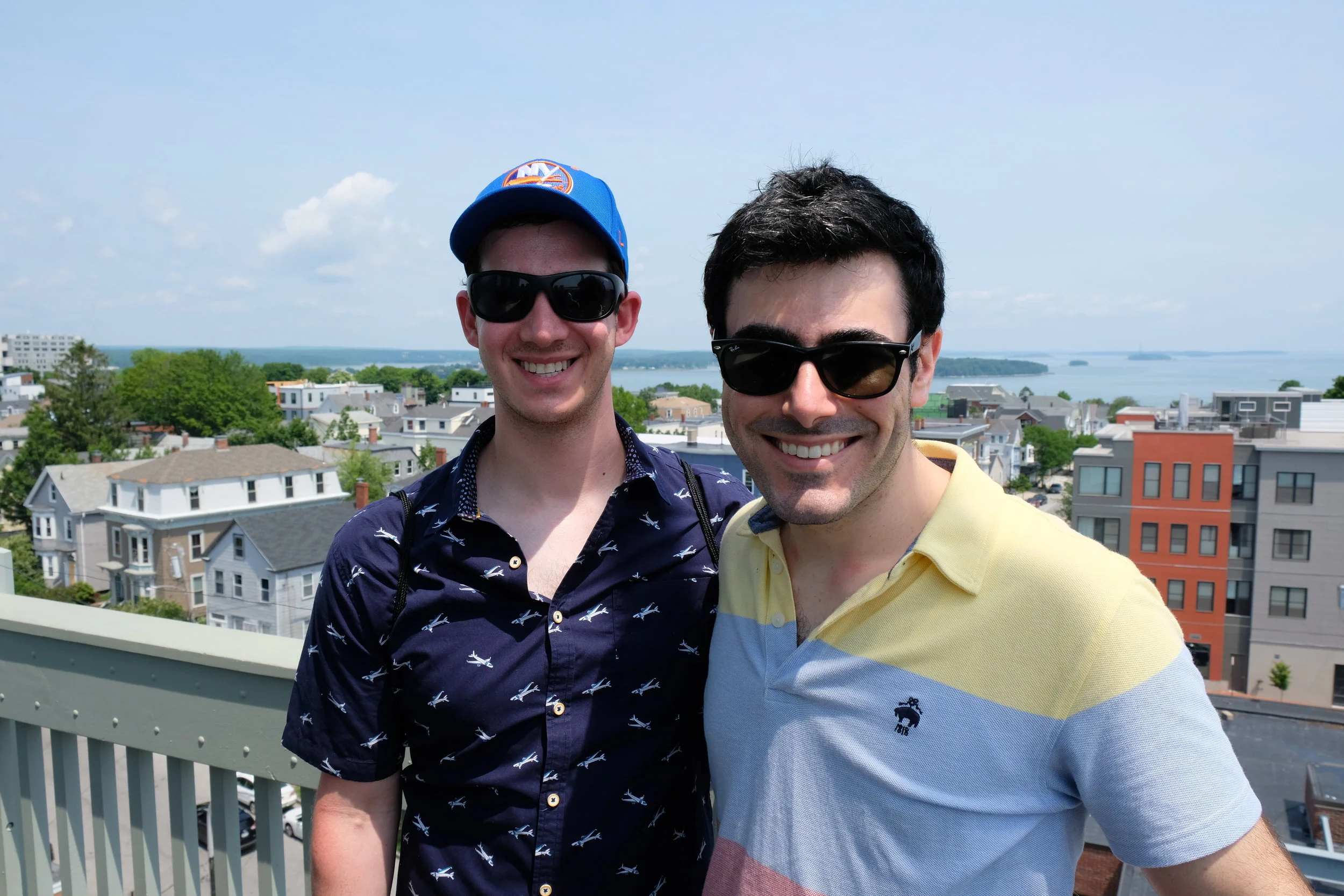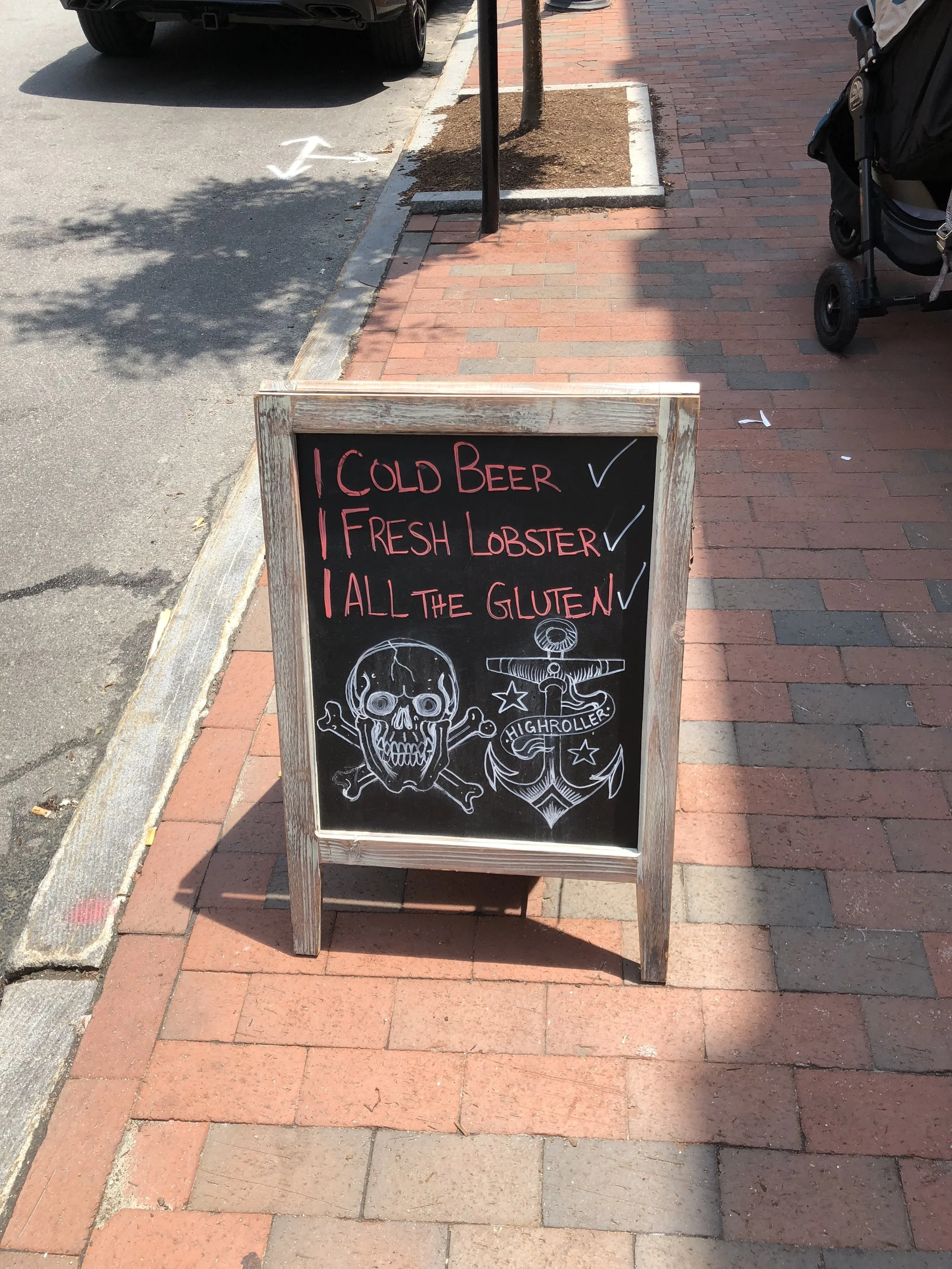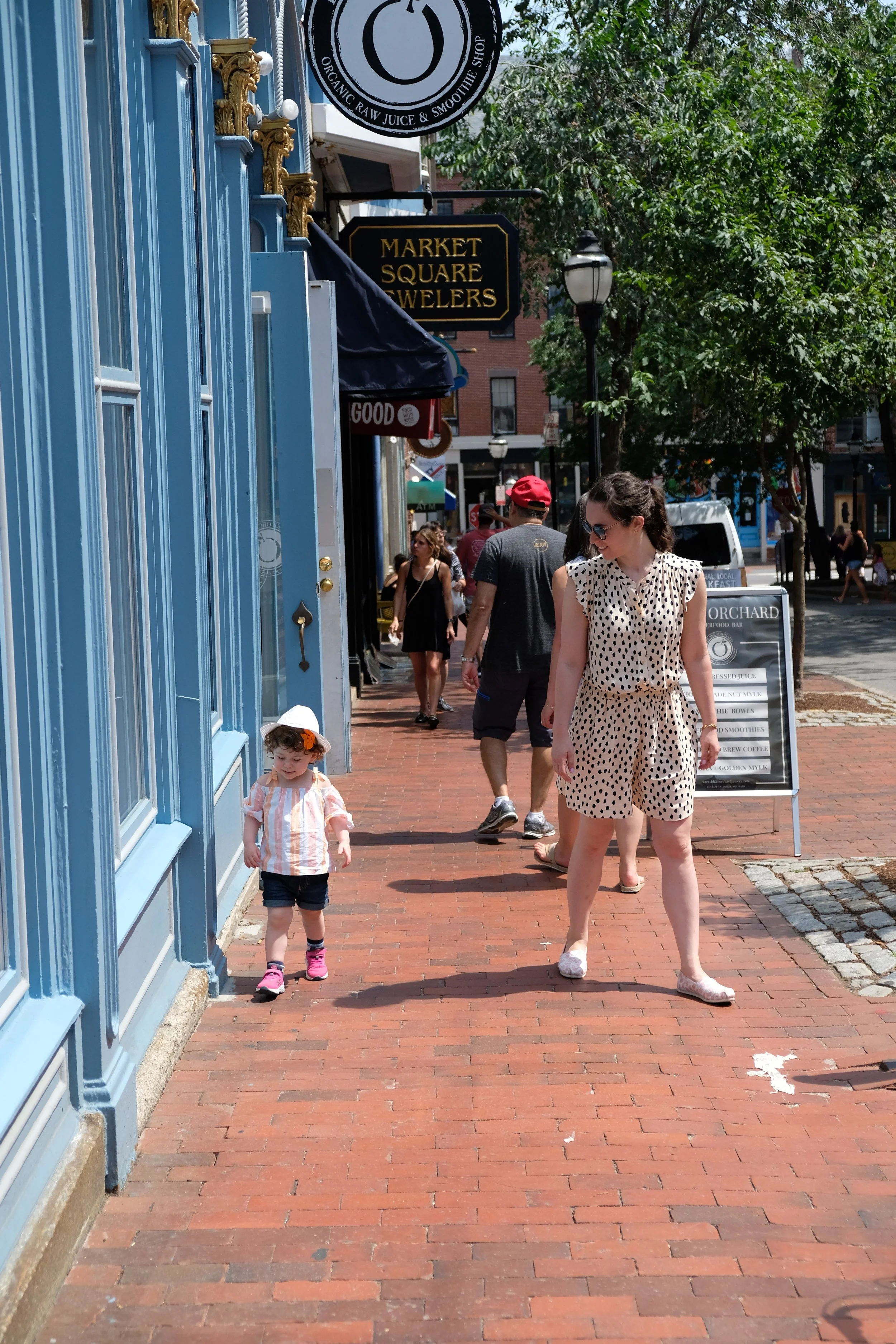 After the tower we were all beat already, so we abandoned Tzvi’s original plan to go to the Wadsworth Longfellow House, which was about a mile away and promised another (what we predicted to be poorly ventilated/air conditioned) walk-through. Instead we walked around the Old Port area. We got iced coffees at a place called Bard Coffee, then tried to buy Tzvi a Starbucks mug for his collection of city mugs, but they were sold out (as were all Starbucks in Portland).