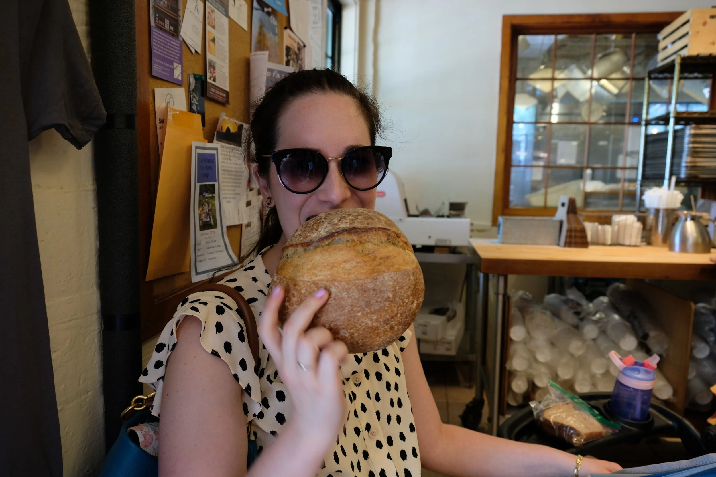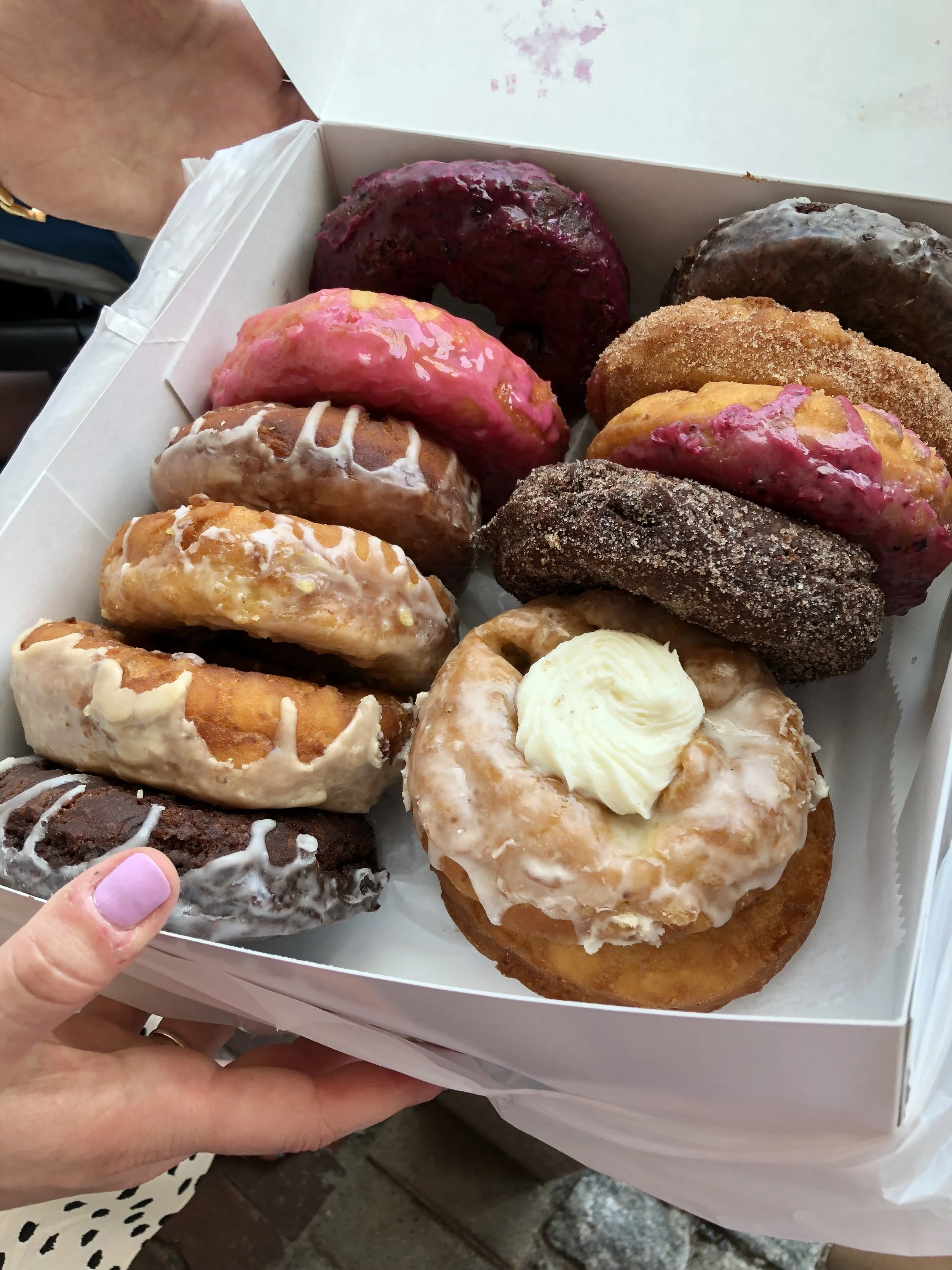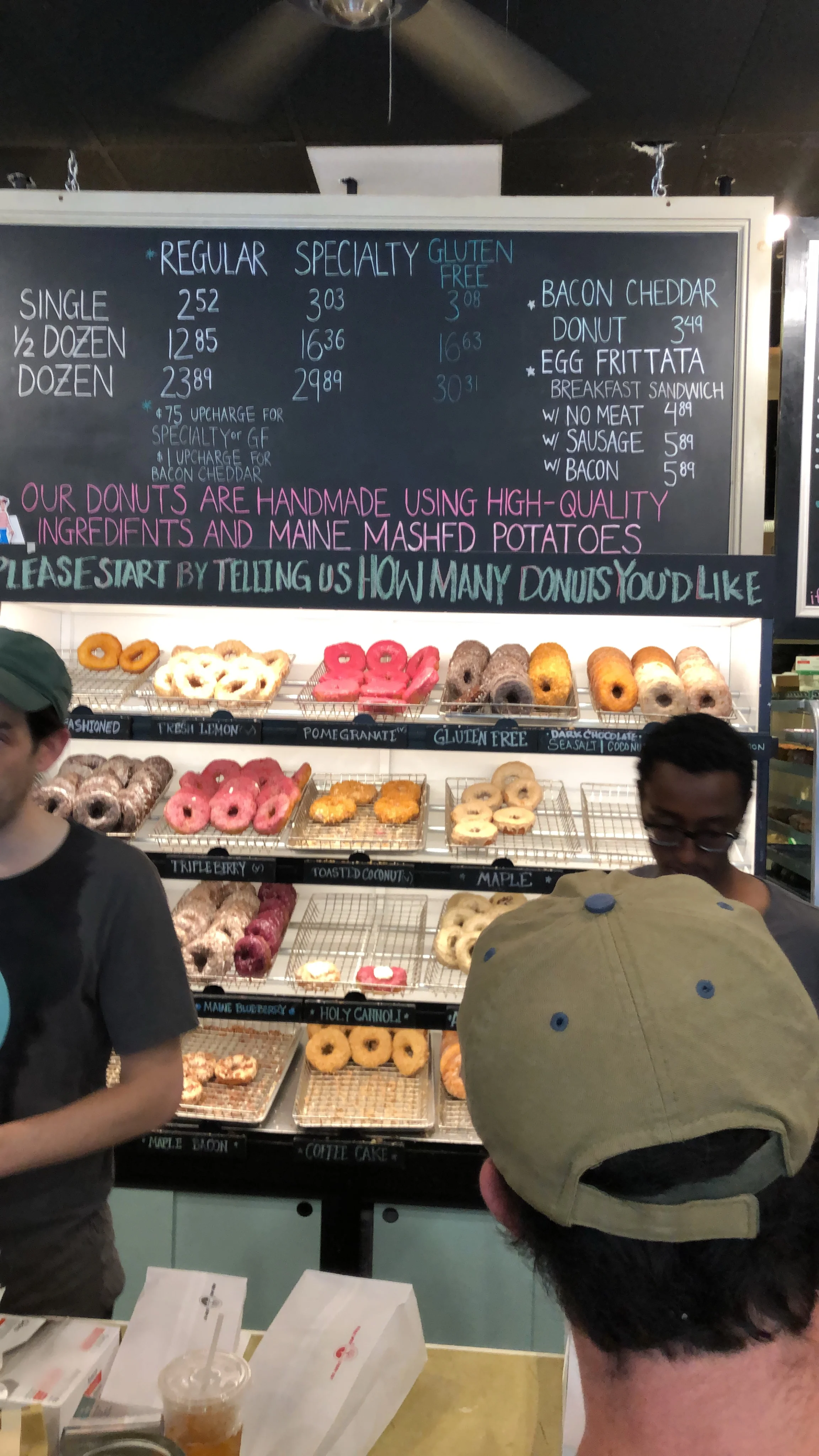 We stopped at a famous donut shop called The Holy Donut, where we bought a dozen Maine potato donuts (one of each kind). Then we went to a bakery called Standard Baking Company, where Tzvi bought an entire loaf of sourdough bread, a pear frangipane tart and a vanilla madeleine. All was delicious. The donuts were really great – kind of like a cake donut but less heavy, though still cakier than a fried donut, and the flavors were really powerful.