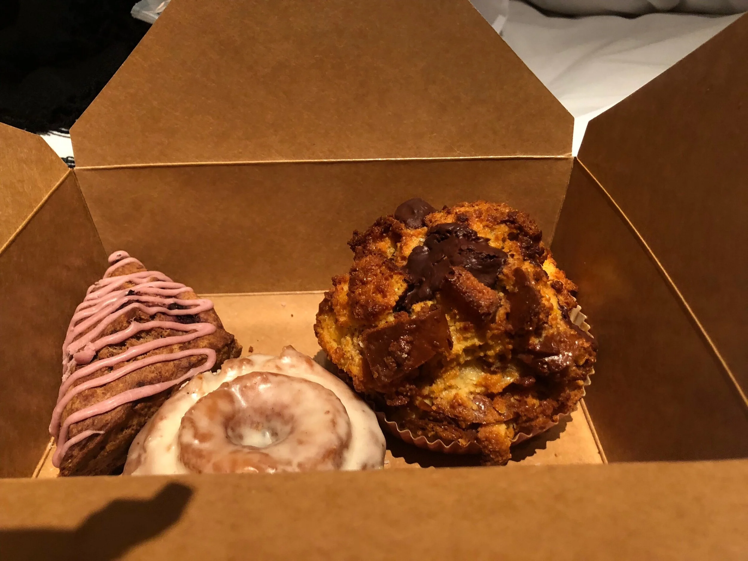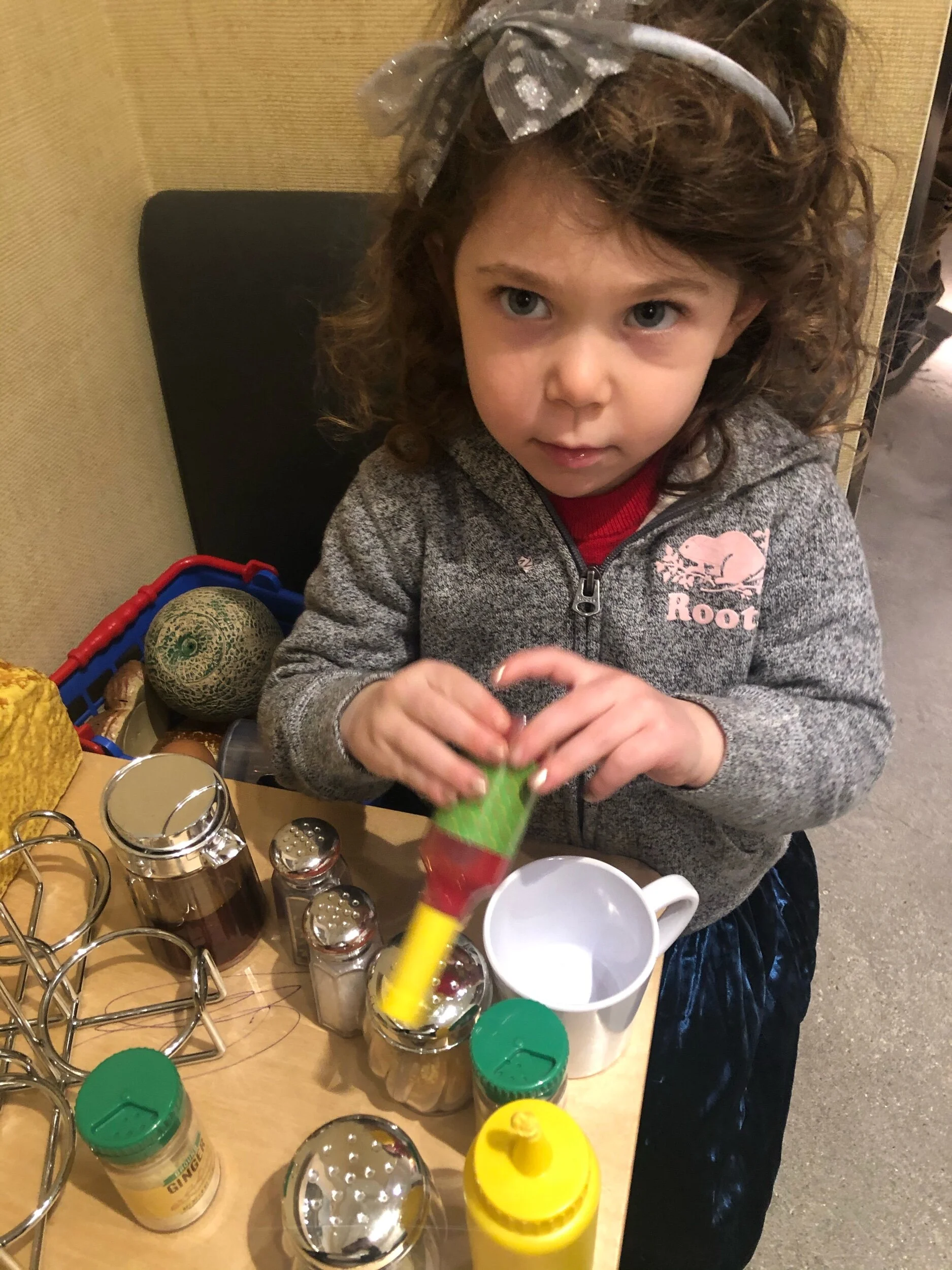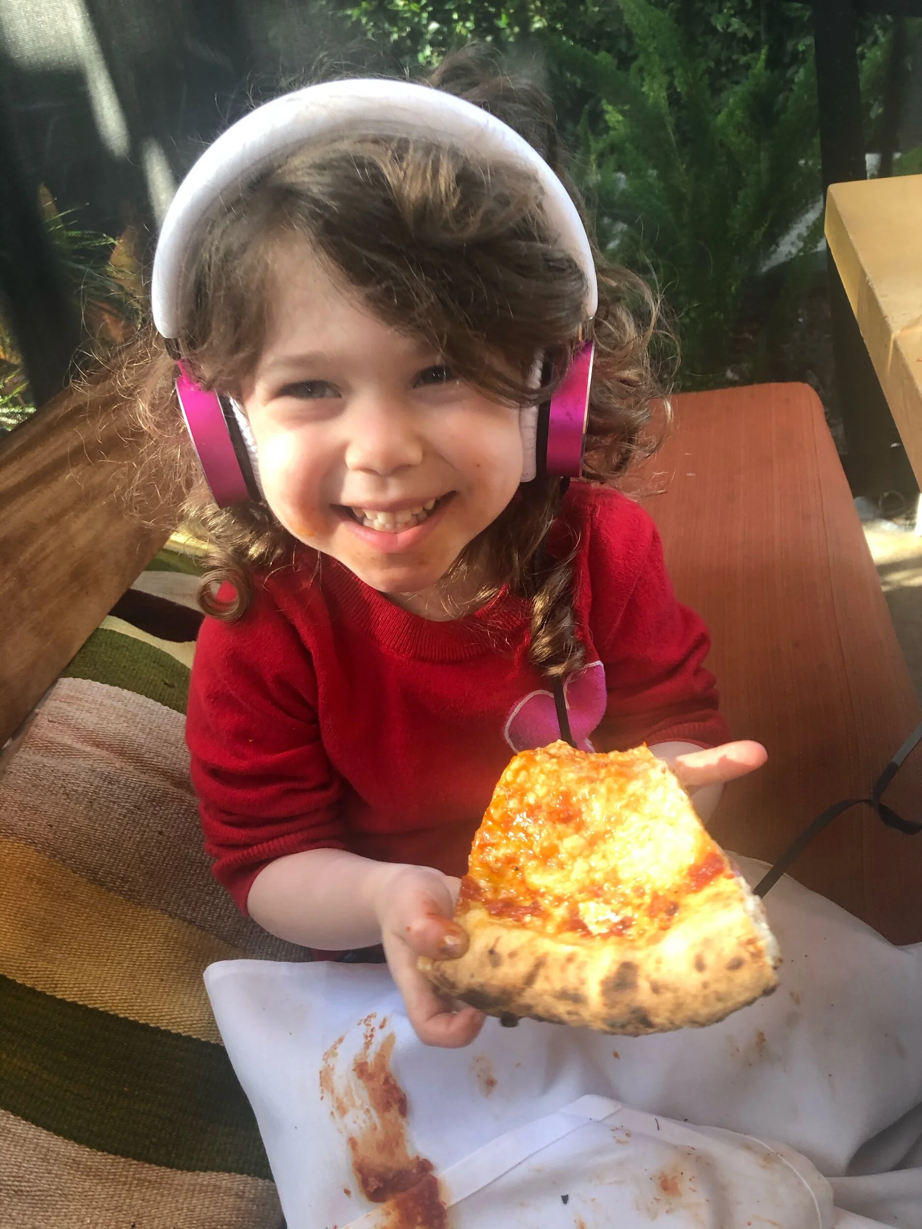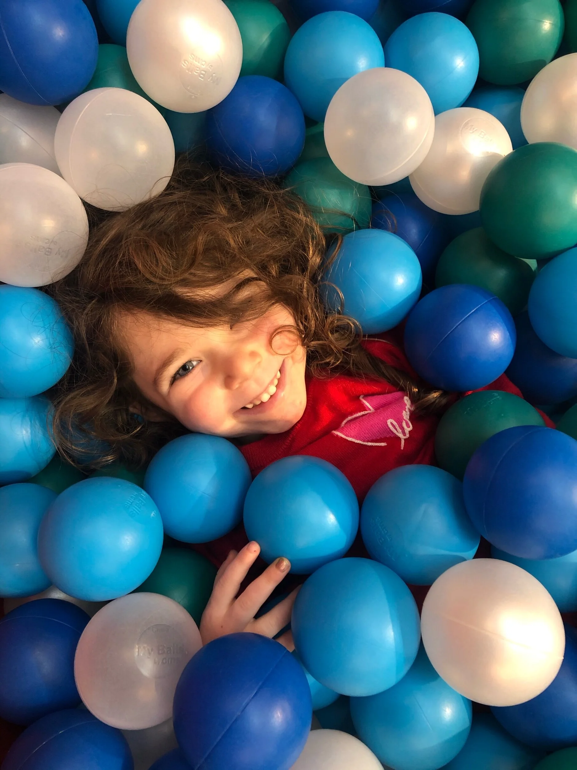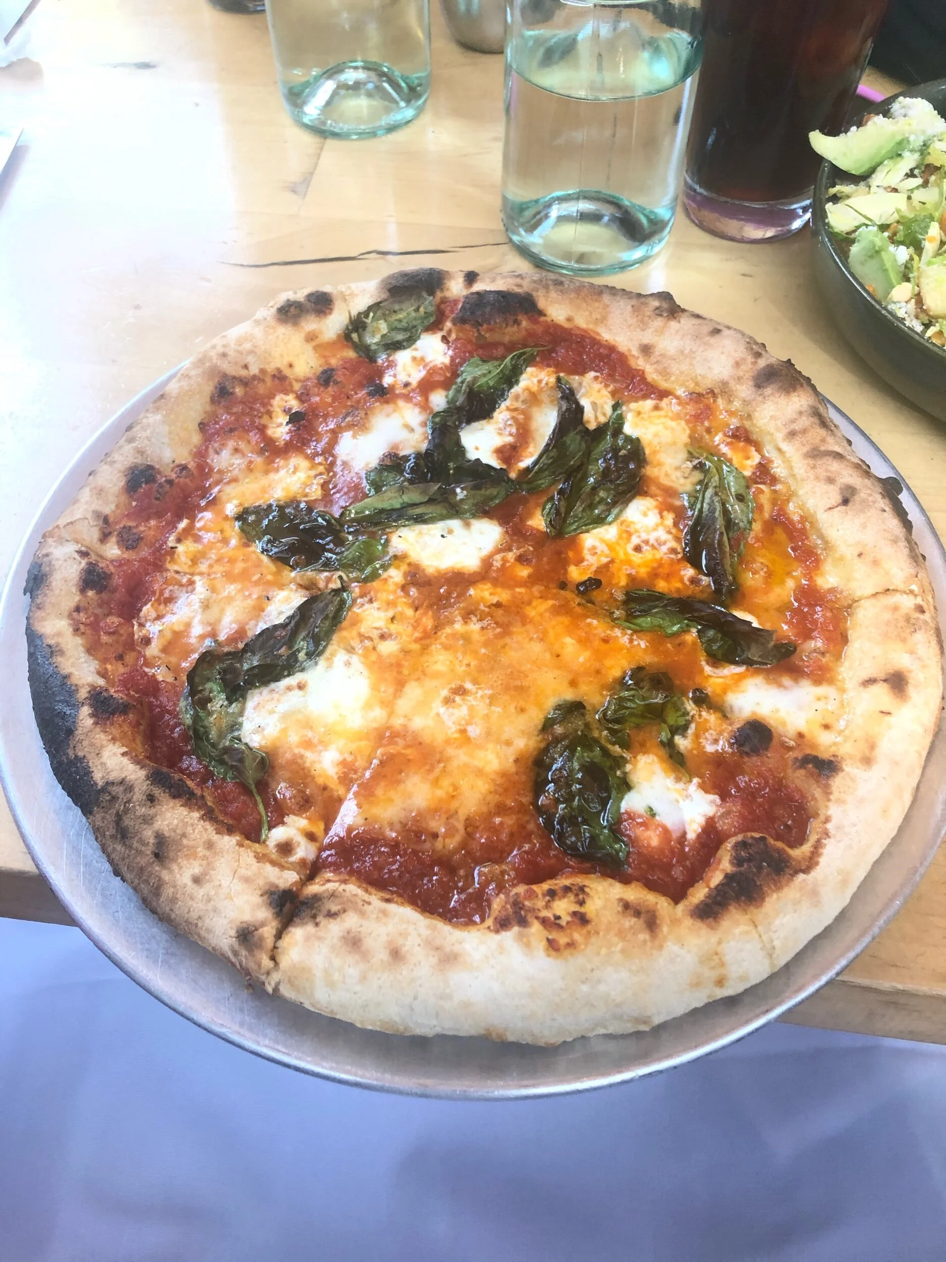 Under normal circumstances I probably would’ve had to spend a lot of the day doing work, but between dealing with Hallie and Steph I ended up screwing up enough stuff that they recognized I wasn’t capable of doing work and taking care of my family, so they graciously let me off the hook with the work. Hallie and I had breakfast again in the lobby (Hallie had a waffle) and then hung out at the hotel until my parents picked us up. We drove to Santa Monica and spent the morning at the Cayton Children’s Museum, which is a huge play space for kids. Hallie had a blast. She loved the ball pit and spent a while painting a sheet of paper completely green. After playing we drove to Venice and had lunch at the Rose Café. The weather was great so we sat outside. I needed a break from Hallie so I let her watch Toy Story during lunch. She ate almost a whole pizza (which was incredibly delicious) and I had a fantastic salmon salad. I also brought a box of pastries back for Steph, which were all tasty.