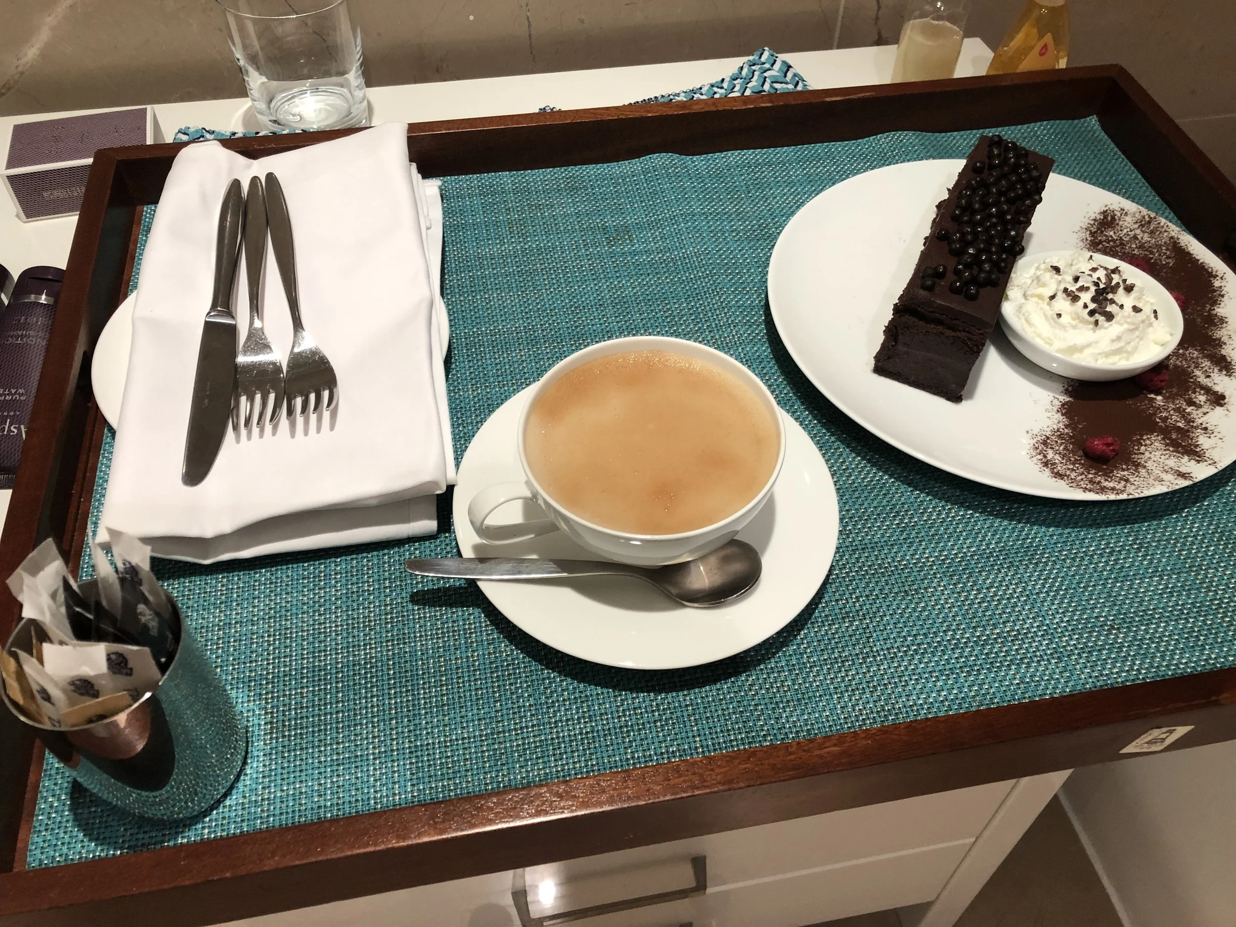 After dinner we drove the half hour back to Herzliya and got Hallie ready for bed. Since Tzvi didn’t get dessert we called room service and had them deliver the Ritz Cake and a soy latte. The cake was like a chocolate log with some sort of rum cake and little chocolate balls on top. We got Hallie into bed pretty quick and then got into our own bed and tried to watch A Star is Born on on Tzvi’s computer while eating the cake, but Hallie wasn’t on board with that plan and refused to go to sleep. She spent at least 30 or 40 minutes intermittently crying and calling out to us to come give her more hugs. Eventually she went to sleep, but we didn’t get very far in the movie and then we went to sleep.