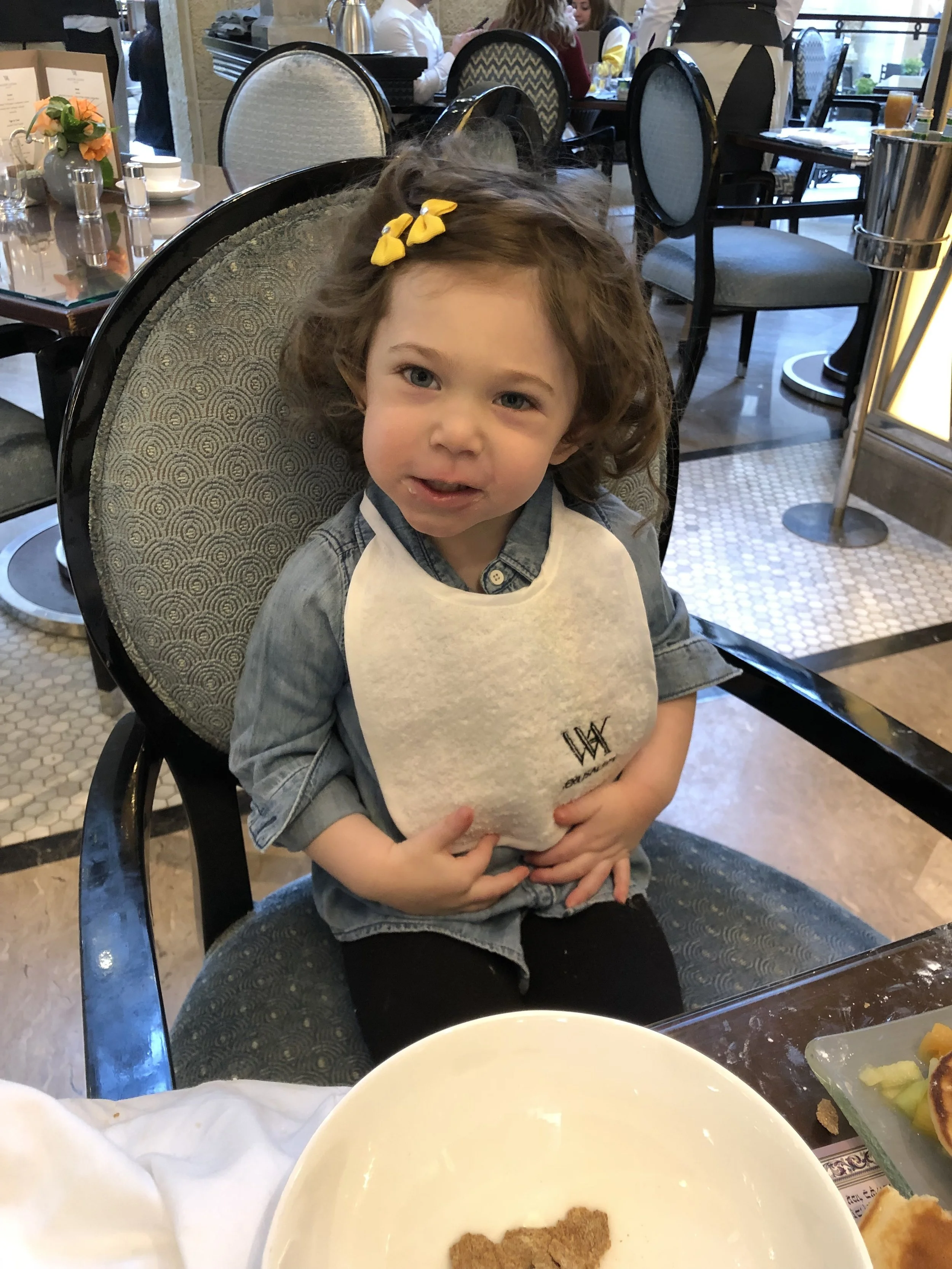 We woke up around 9 on Sunday morning, got dressed, packed a little and headed to breakfast. Same fare as the last couple of days and all delicious. After breakfast we finished packing and Tzvi walked to Avis to pick up our rental car. While we were waiting, Hallie made friends with a bunch of bellmen and the greeter man. He kept saying “come with me, I give you chocolate” and Hallie was like no. Then he told her its good, don’t go with strangers. Then they were friends.