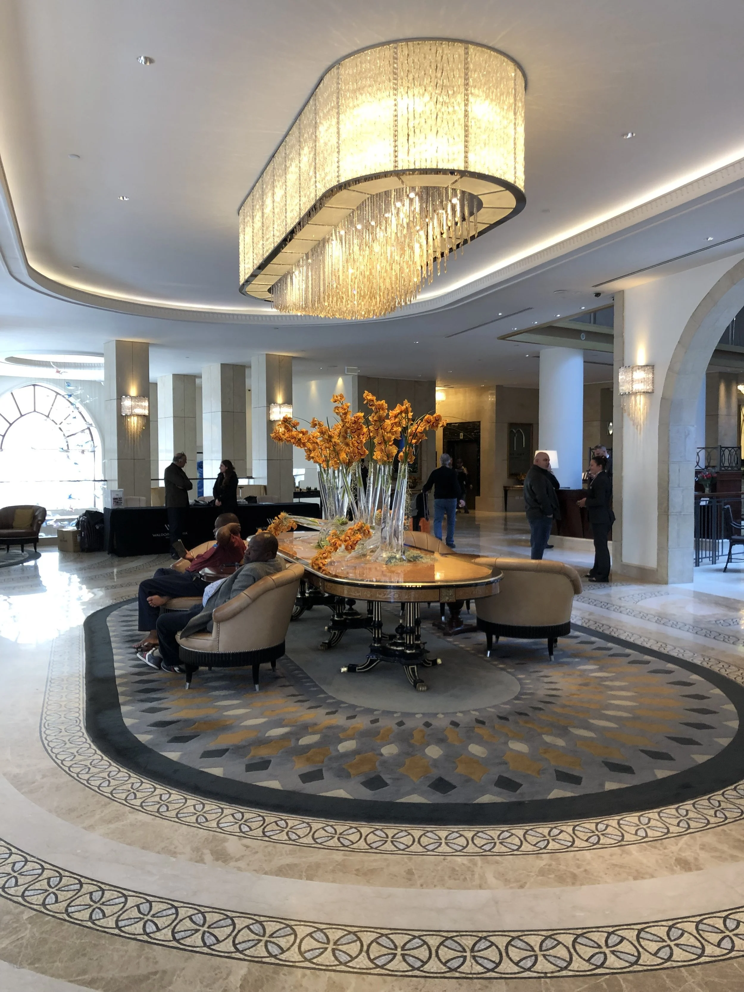 Here are a few parting shots of our room and the beautiful Waldorf lobby.