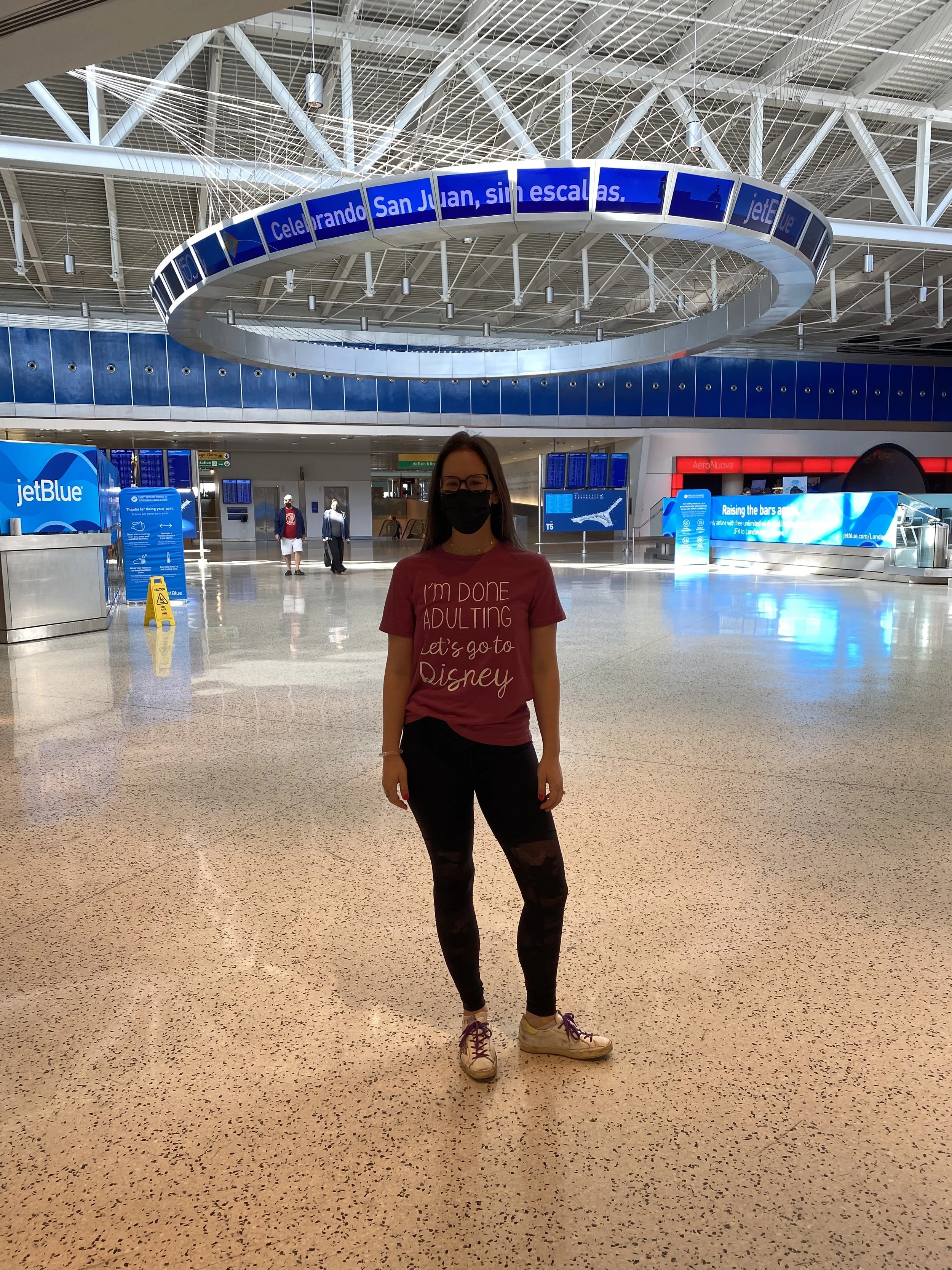 Anyway, we got up this morning and our car showed up at 9. The guy showed up in a Honda Odyssey and I got all nervous that he wasn’t able to fit everything, so we told my parents to stop by our house first. We ended up fitting everything with room to spare. We did leave 20 minutes late though. Anyway, we headed to the airport and checked in curbside. The guy didn’t even weigh our luggage. We knew we were underweight, but it was still interesting. Maybe we should always do curbside. Check in was easy, as was security. We got coffee and bagels and headed to the gate when it was time to board. Smooth boarding, and we only left about 20 minutes late.