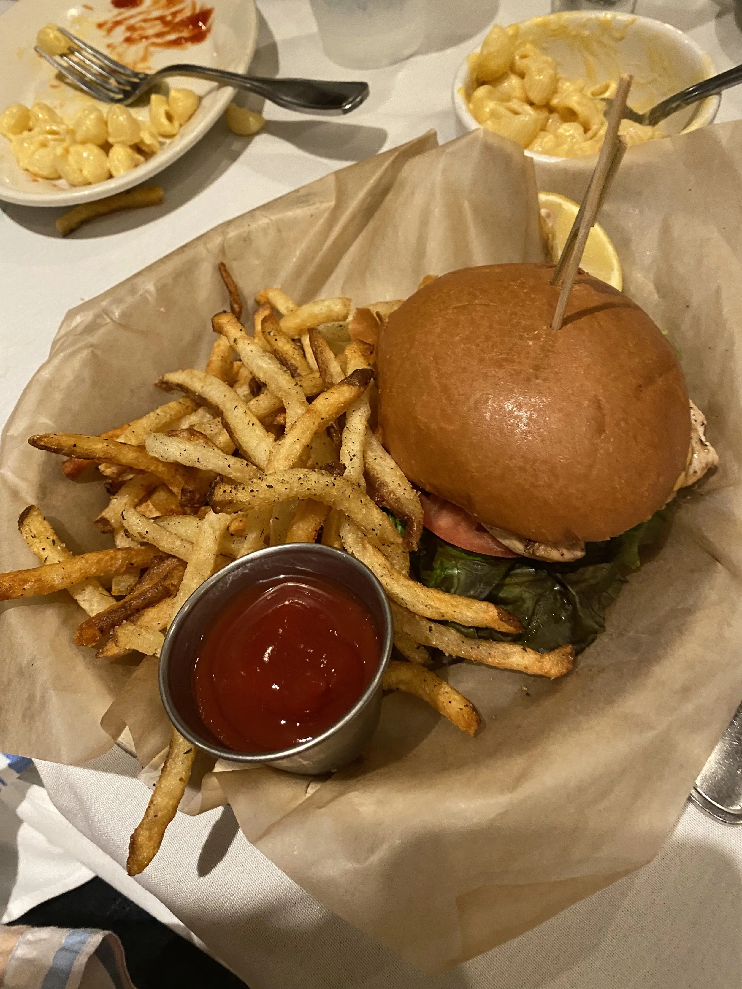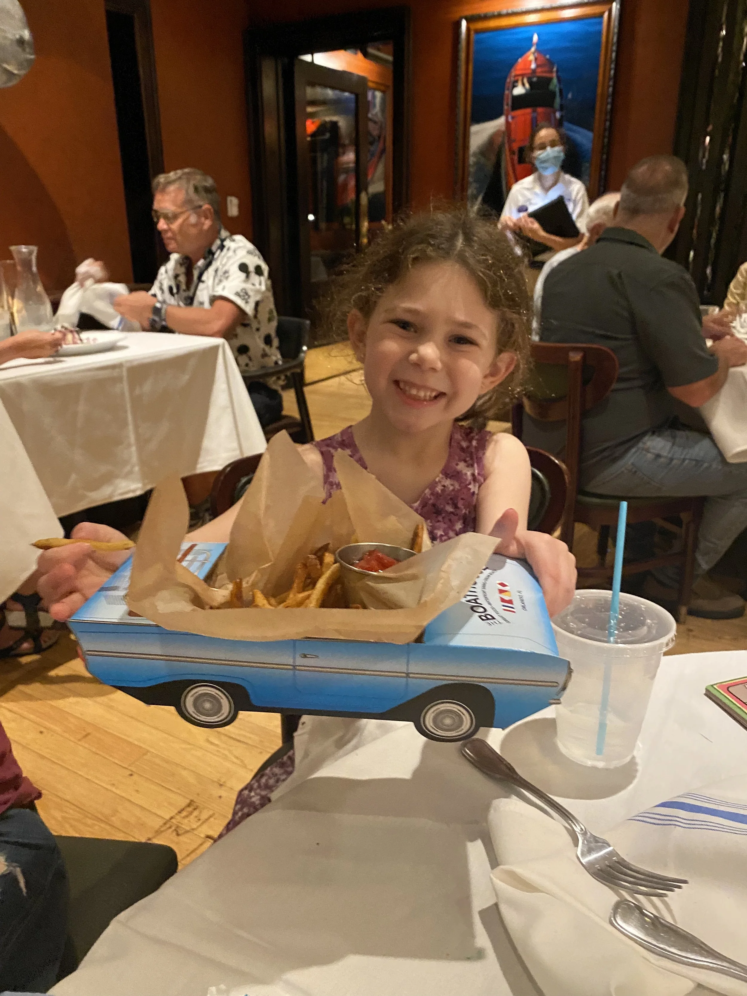 Dinner was fine but too long. The restaurant itself was huge and very nice, but the food just took so long. I had a Caesar Salad with Salmon. Tzvi had a half of a head of iceberg lettuce with blue cheese dressing and some tomatoes, and a mahi sandwich with fries. He also had a beer. Madeleine was a little nuts, but who isn’t.
