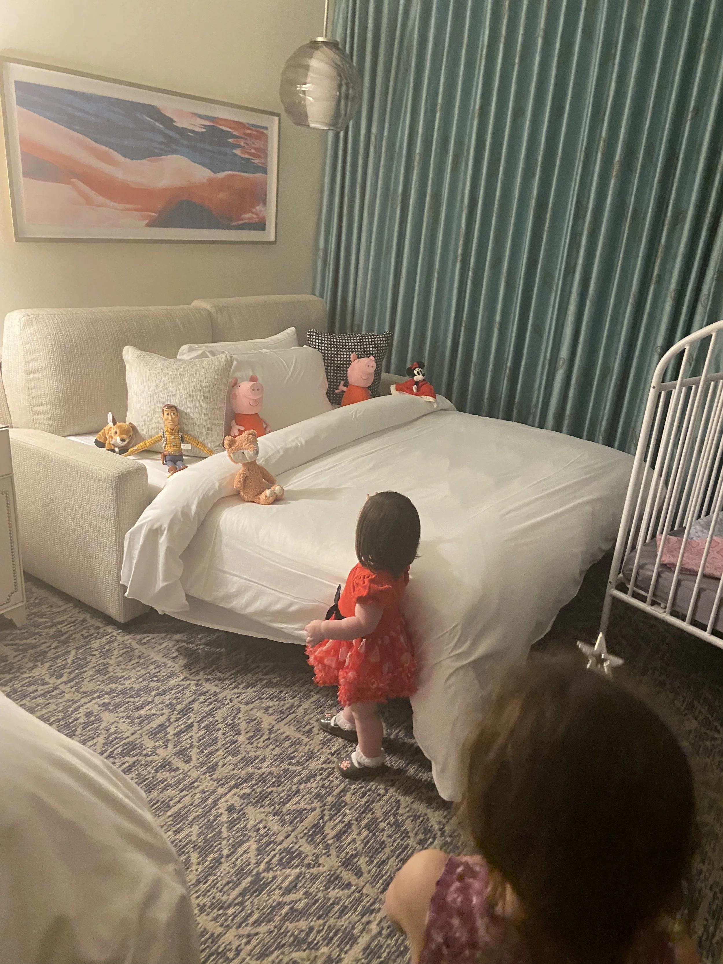 It started raining again, but thankfully we were eating our ice cream under an awning. From there we walked to the soap store, but only bought Hallie some bath bombs. Then we Ubered home, which isn’t so easy now that there are only 2 Uber drop offs at Disney Springs and you have to walk really far to get to either one. Madeleine was so happy on the way home and was singing and dancing. It was hilarious. We got home and the girls went right to sleep, but it was so late.