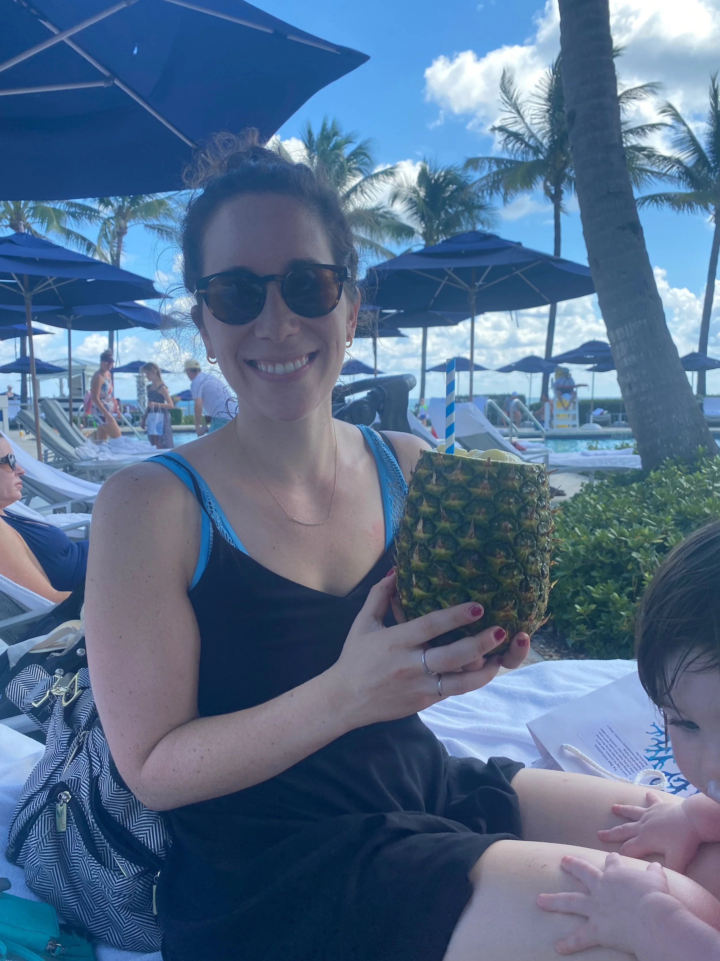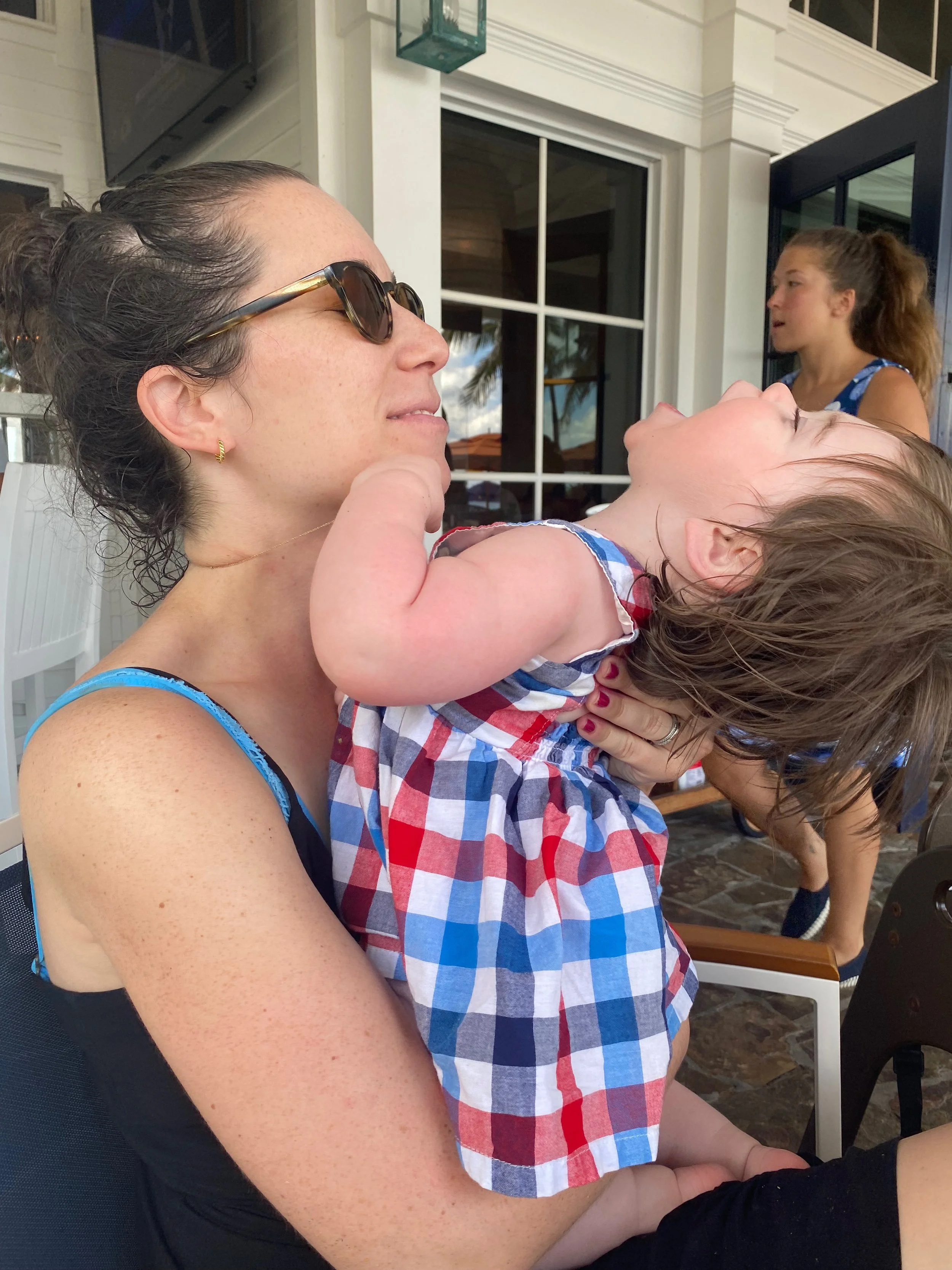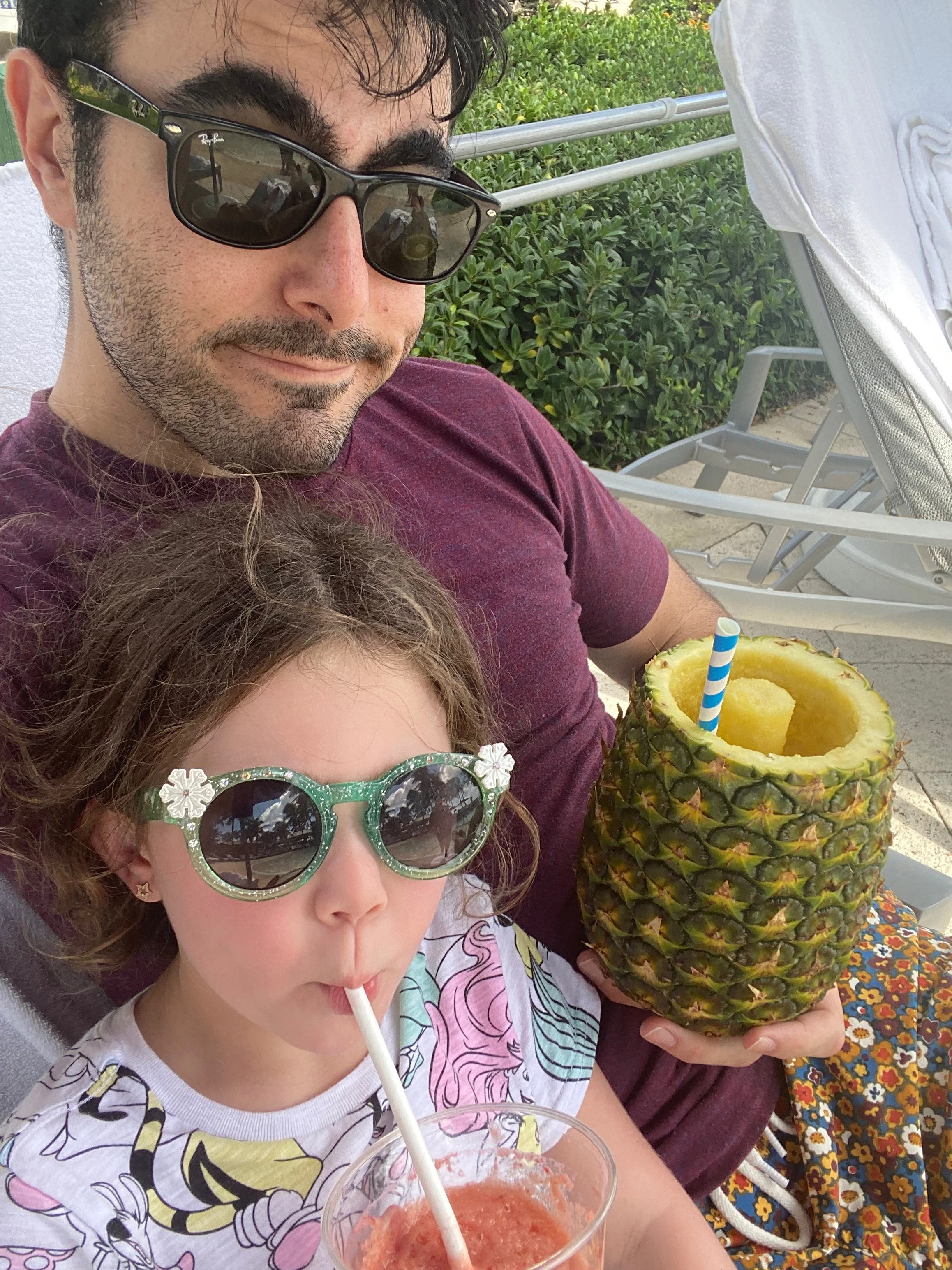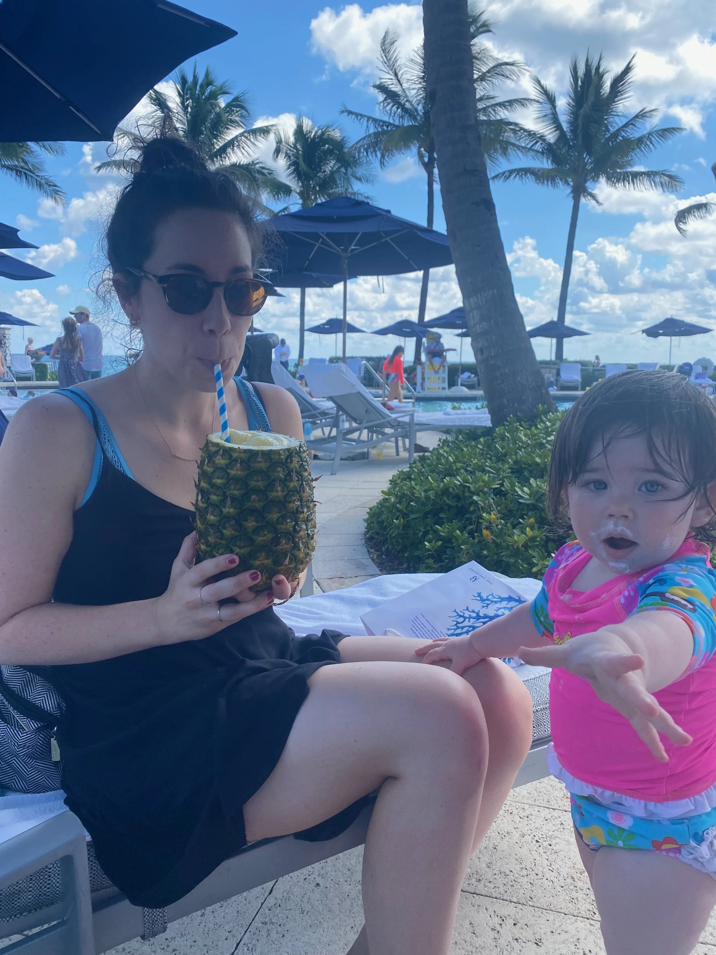 Lunch was a bit of a mess between timing, naps, and food. I think we were also full from breakfast. We got seats at the Ocean House, next to the pool, and tried to order the minimum we could to still get Madeleine free food, so we ordered chips and guac and a humus and crudites, except the waiter was very confused by the whole thing for some reason and we just ended up with a side of veggies and no humus. The guac was good again though, as were the plantain chips. We tried to feed Madeleine mac and cheese, but she wouldn’t eat it; I think we just finally have to accept that the only Mac and Cheese she eats is Toddys.
