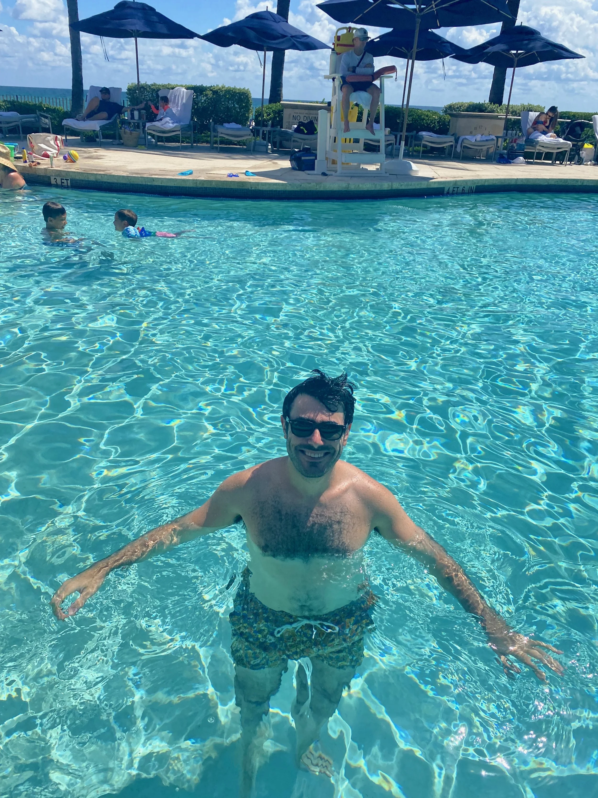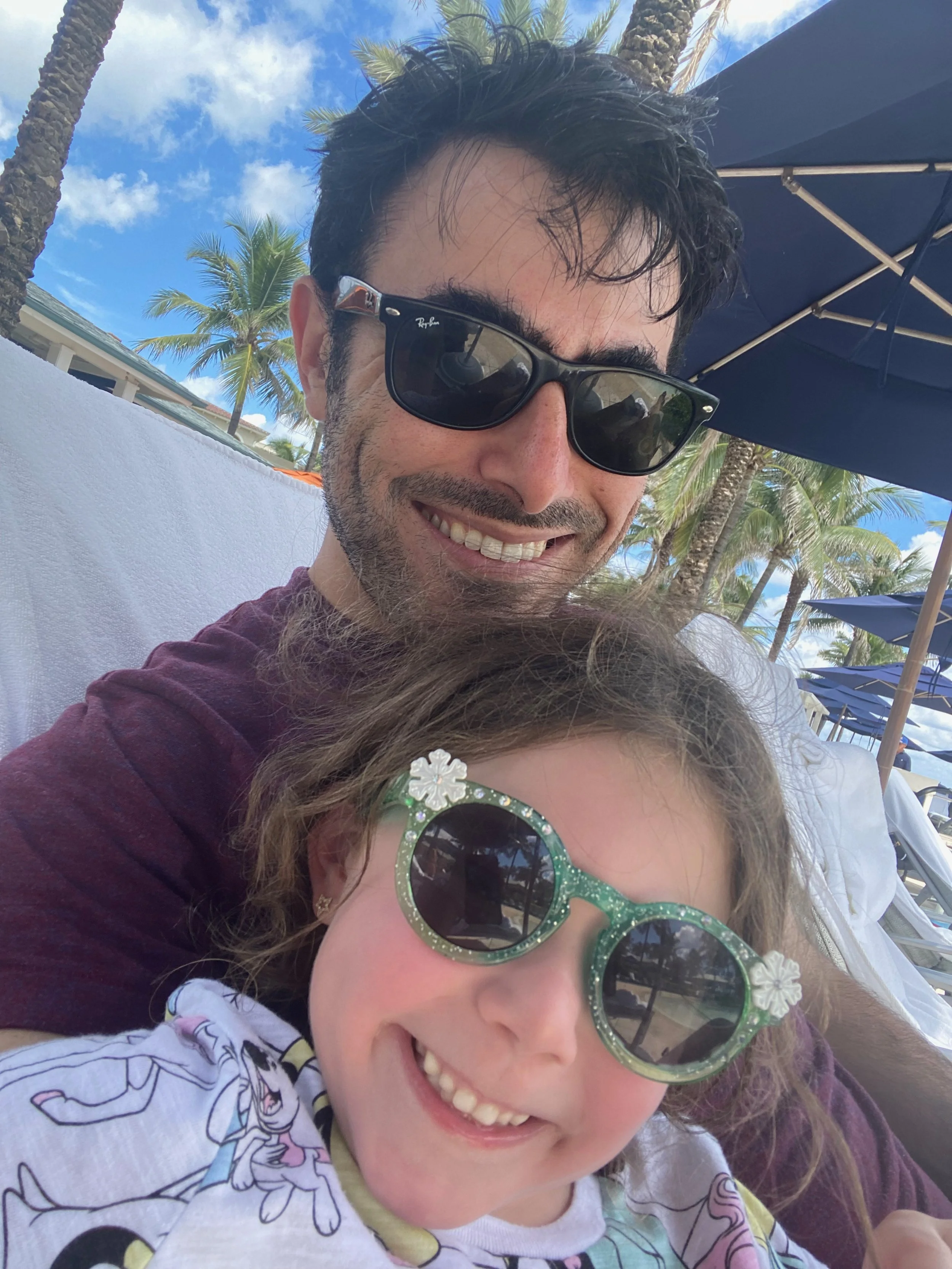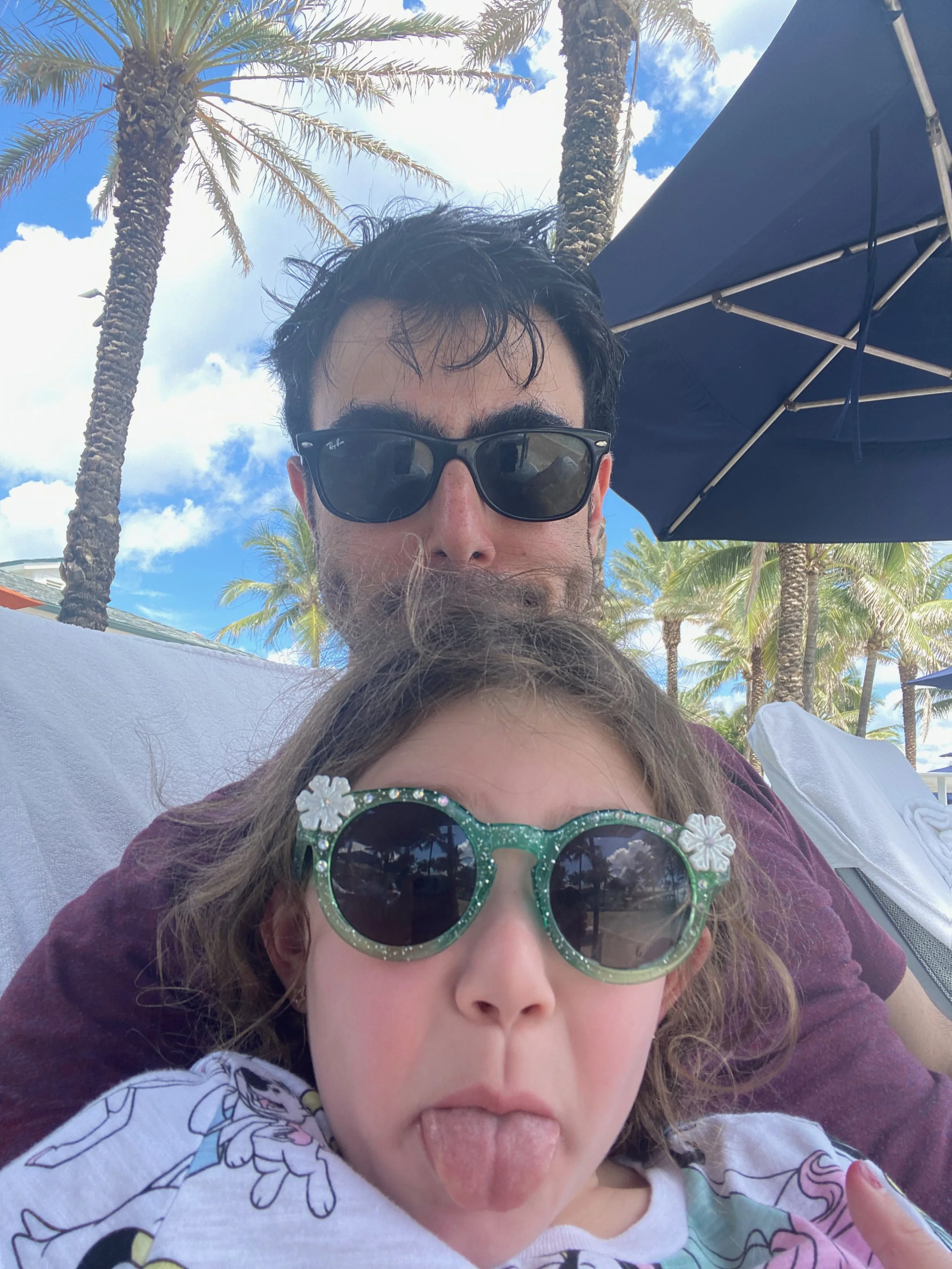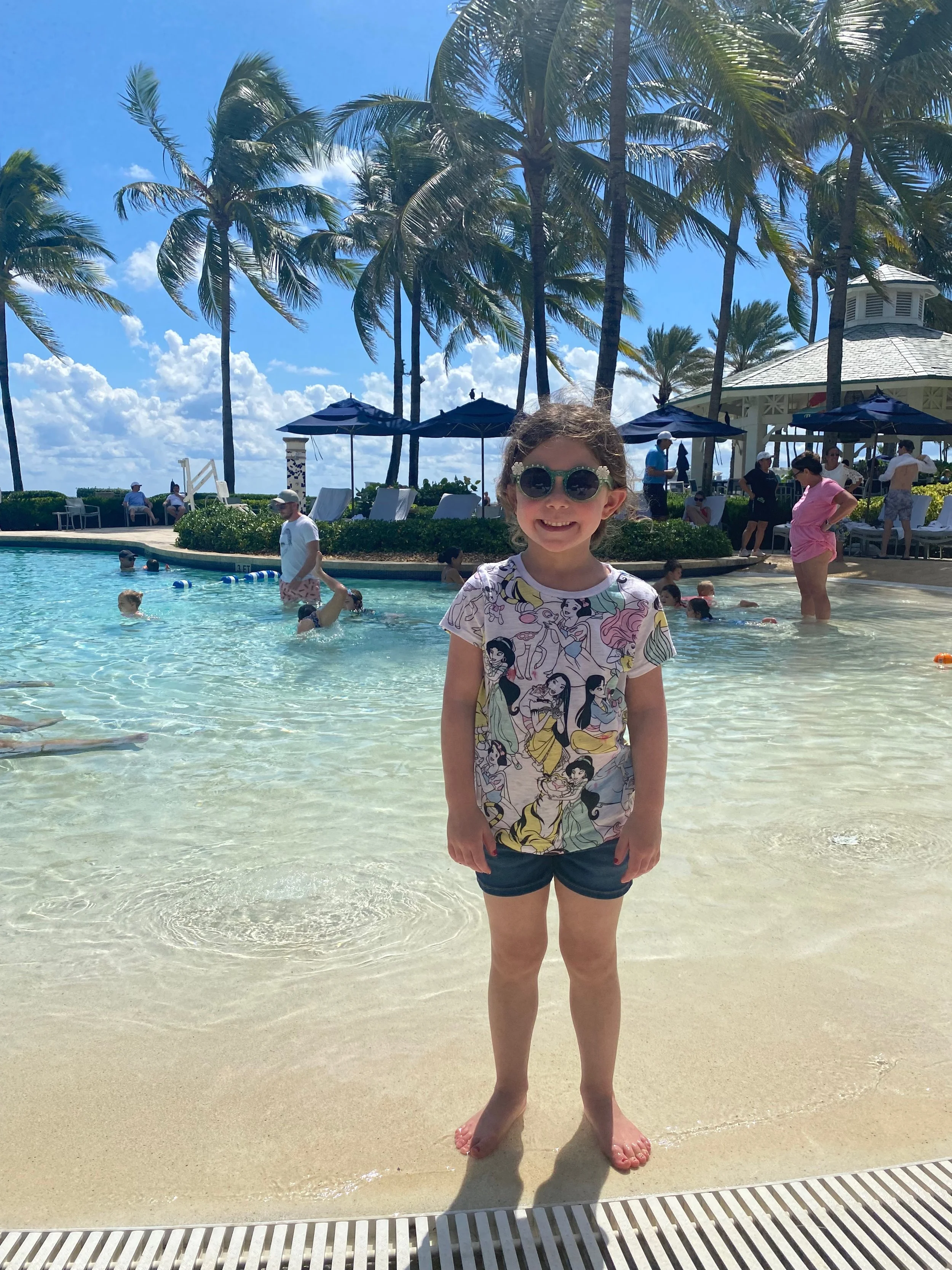 Lunch was a bit of a mess between timing, naps, and food. I think we were also full from breakfast. We got seats at the Ocean House, next to the pool, and tried to order the minimum we could to still get Madeleine free food, so we ordered chips and guac and a humus and crudites, except the waiter was very confused by the whole thing for some reason and we just ended up with a side of veggies and no humus. The guac was good again though, as were the plantain chips. We tried to feed Madeleine mac and cheese, but she wouldn’t eat it; I think we just finally have to accept that the only Mac and Cheese she eats is Toddys.