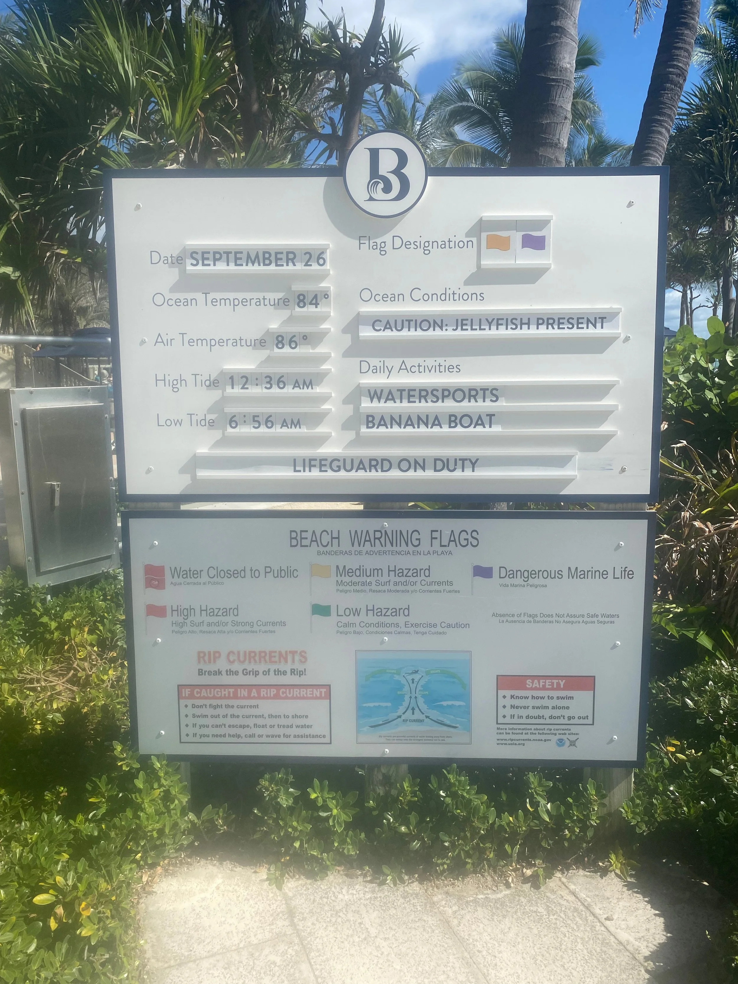 After breakfast we got the same chairs at the pool and hung around there for about two hours. We also went to the beach but the water had a jellyfish warning and it was very sea-weedy, which it hadn’t been the previous two days. It was also a bit rougher than the last couple of days.