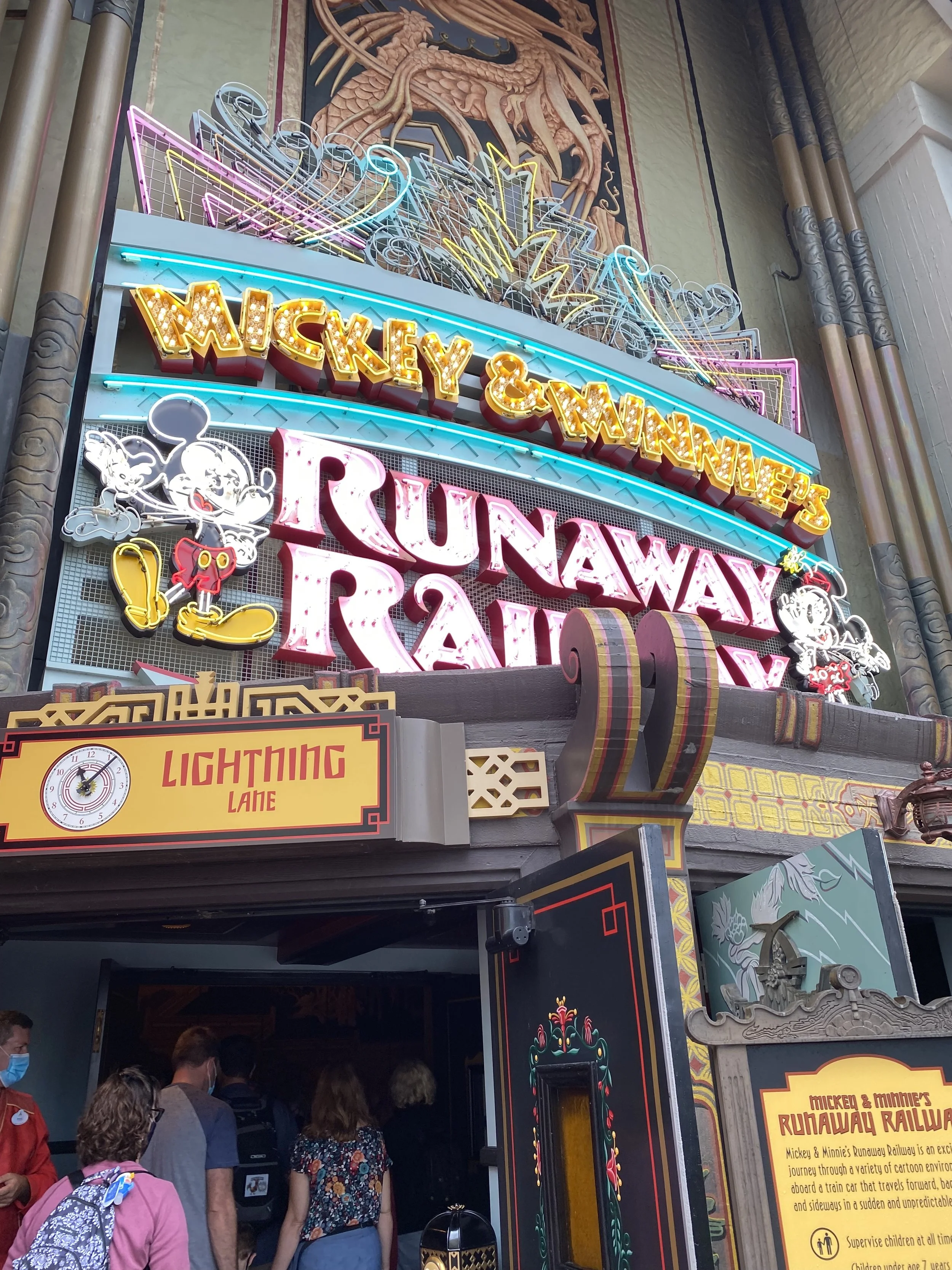 Our next ride was the new Mickey and Minnie’s Runaway Railway, which is in the Chinese Theater where the Great Movie Ride used to be. The ride is totally redone and really great, I wasn’t expecting it at all. Madeleine was pretty scared, which took away some of the enjoyment, but we all survived. Like the new Ratatouille ride, this one is a “trackless ride” – it uses automated guided vehicles without any guide rails and are guided by wifi and GPS. It’s pretty different from the classic Disney rides that just roll along on a track. The ride also had portions where you enter a room and are in front of a massive screen that basically makes you feel like you’re in the scene you’re watching. It’s kind of hard to explain, but it’s sort of like Soaring (the Ratatouille ride had the same thing too).