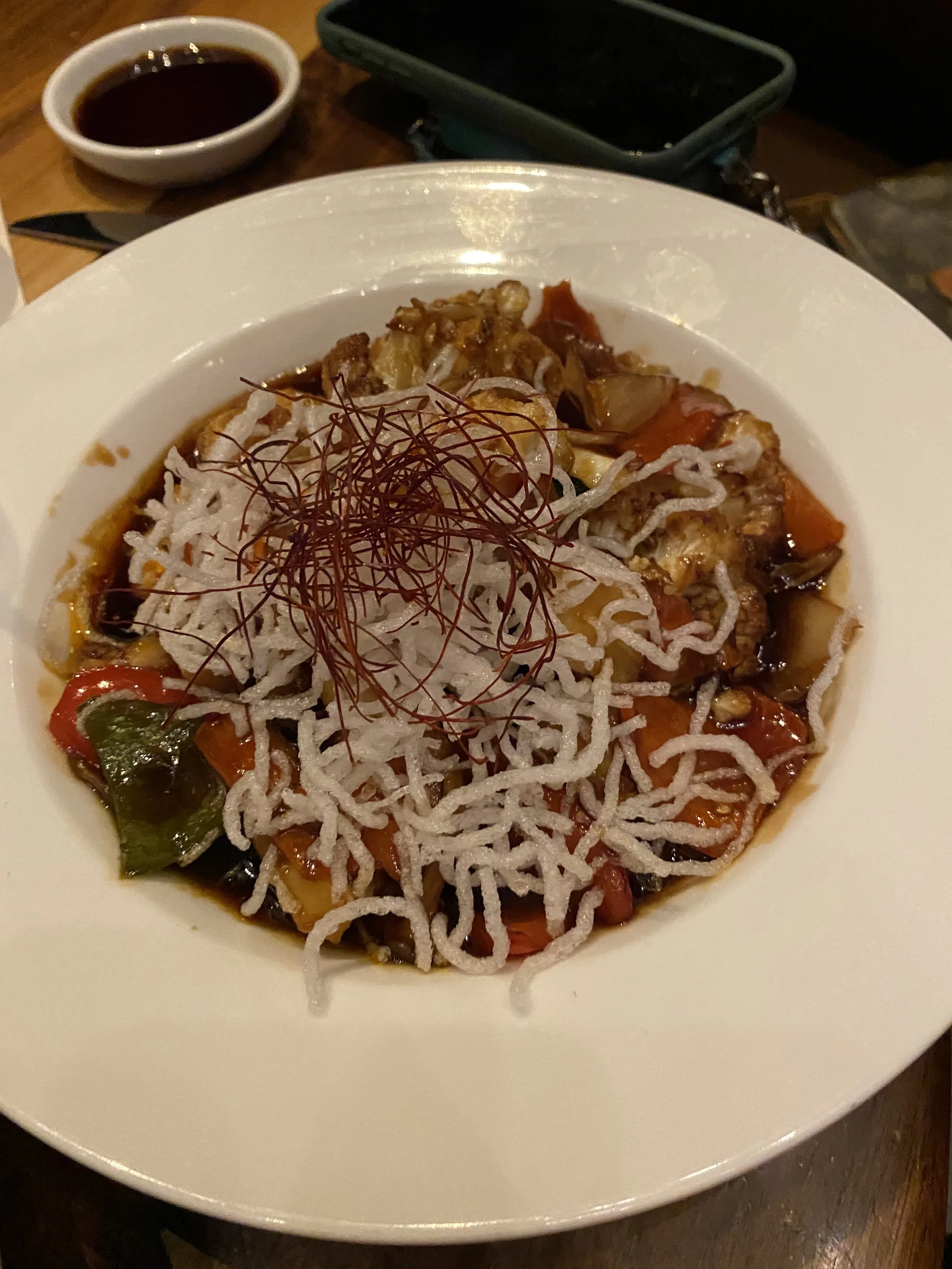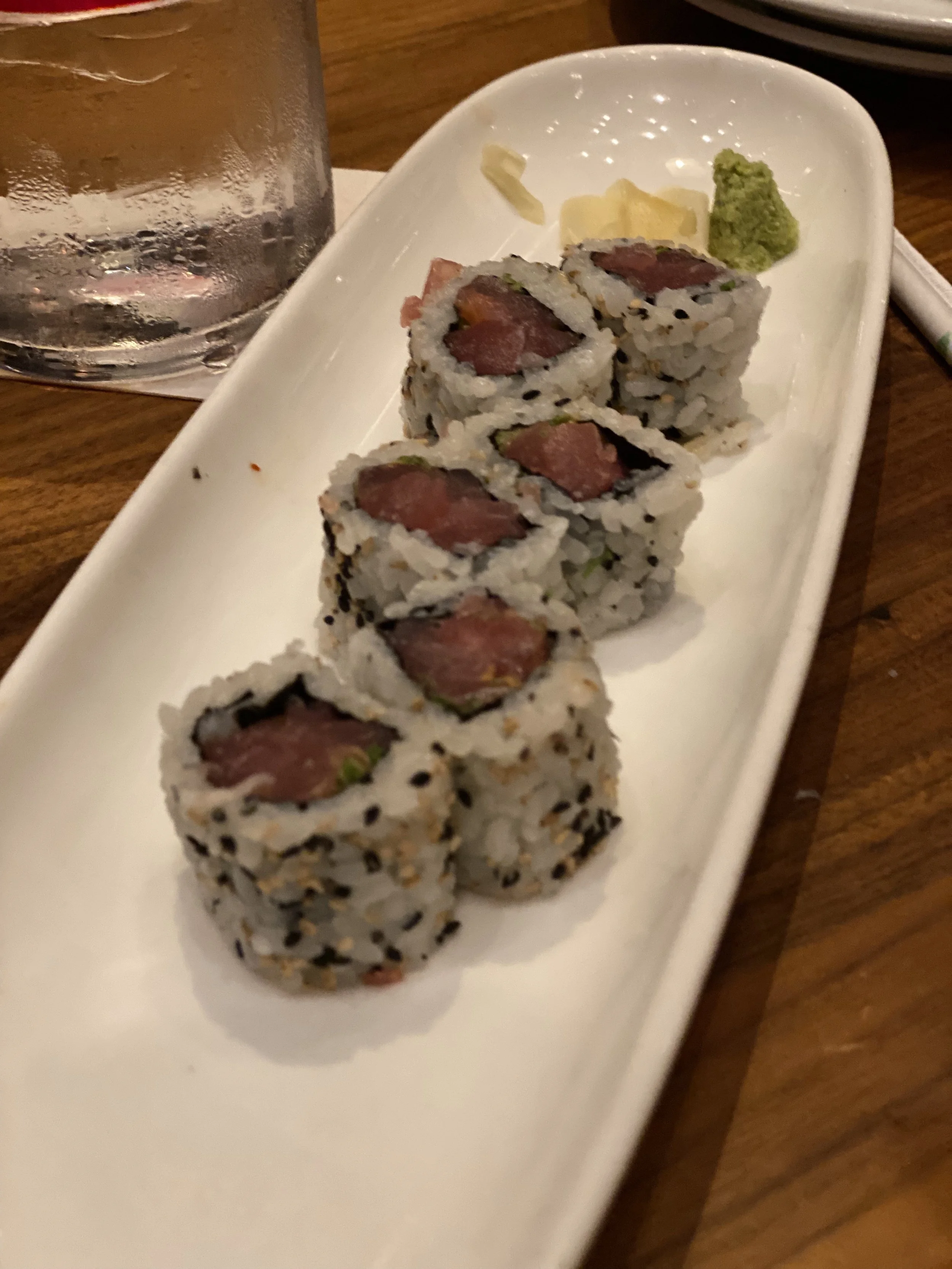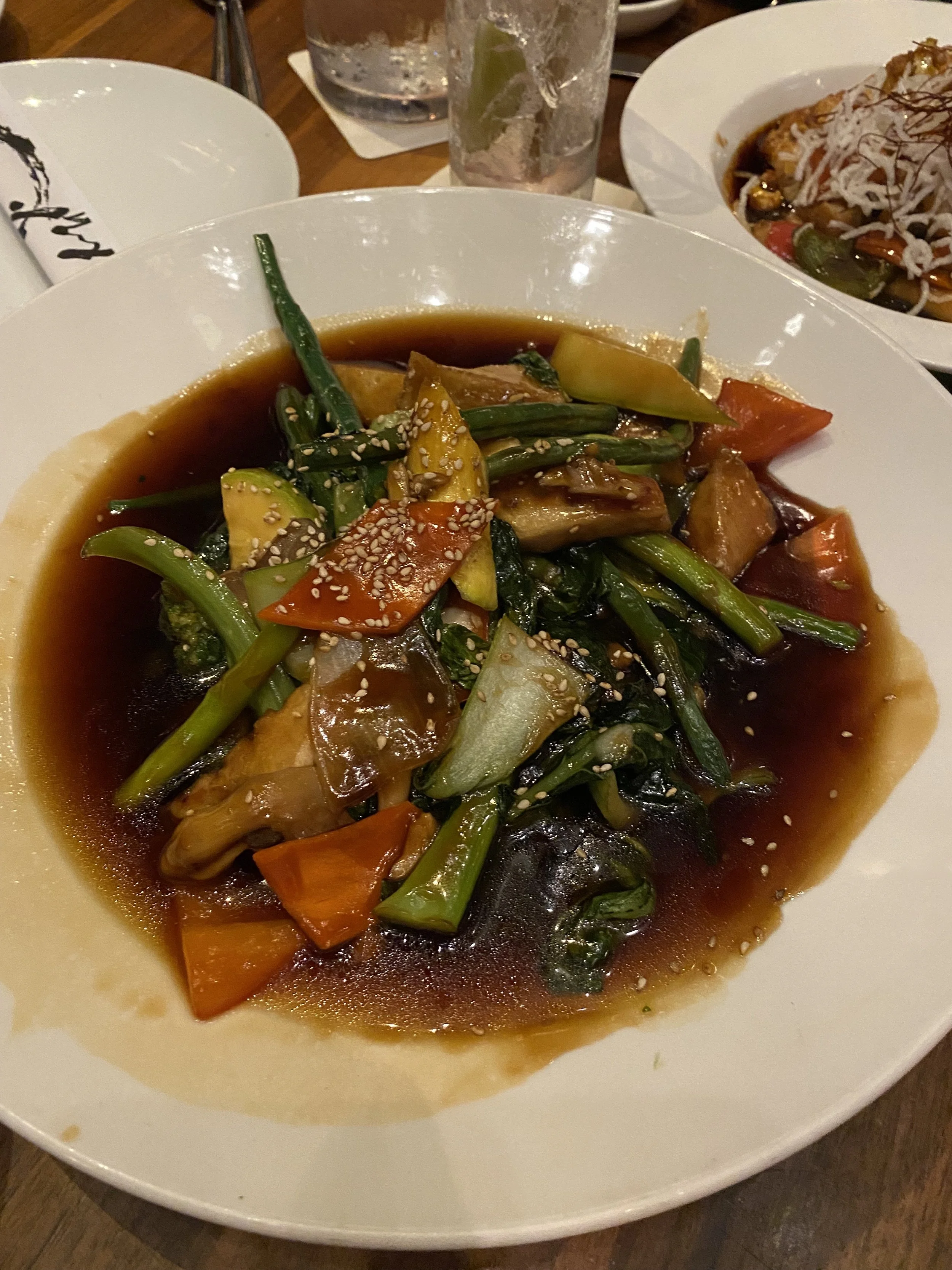 For dinner we shared edamame, a miso soup, a stir fried tofu medley and a kung pao cauliflower. Tzvi also had the Morimoto “buri-bop” (Korean-style yellowtail rice bowl served in a hot clay pot, finished with egg yolk) and a spicy tuna roll. So yeah, we had way too much food as usual.