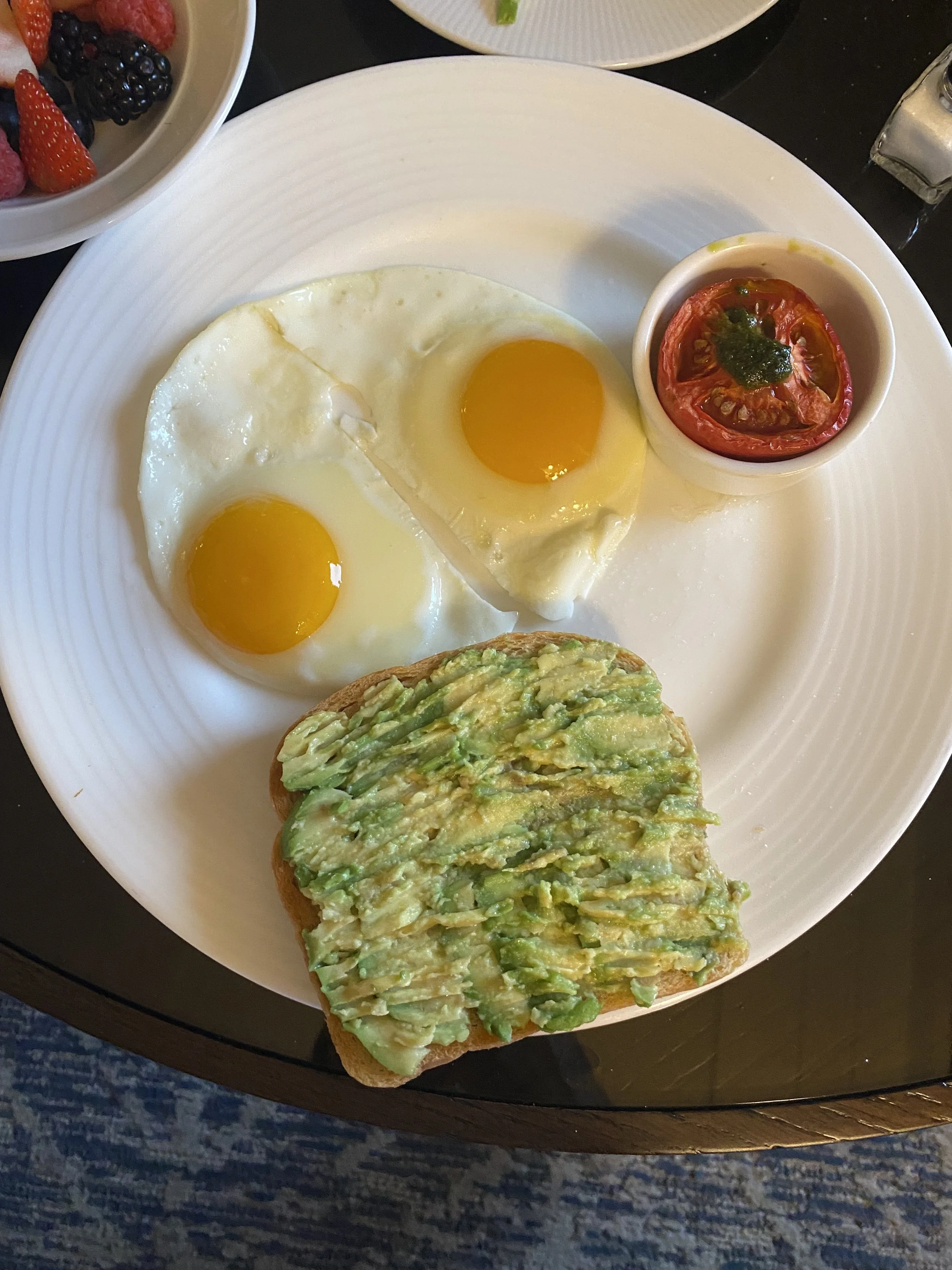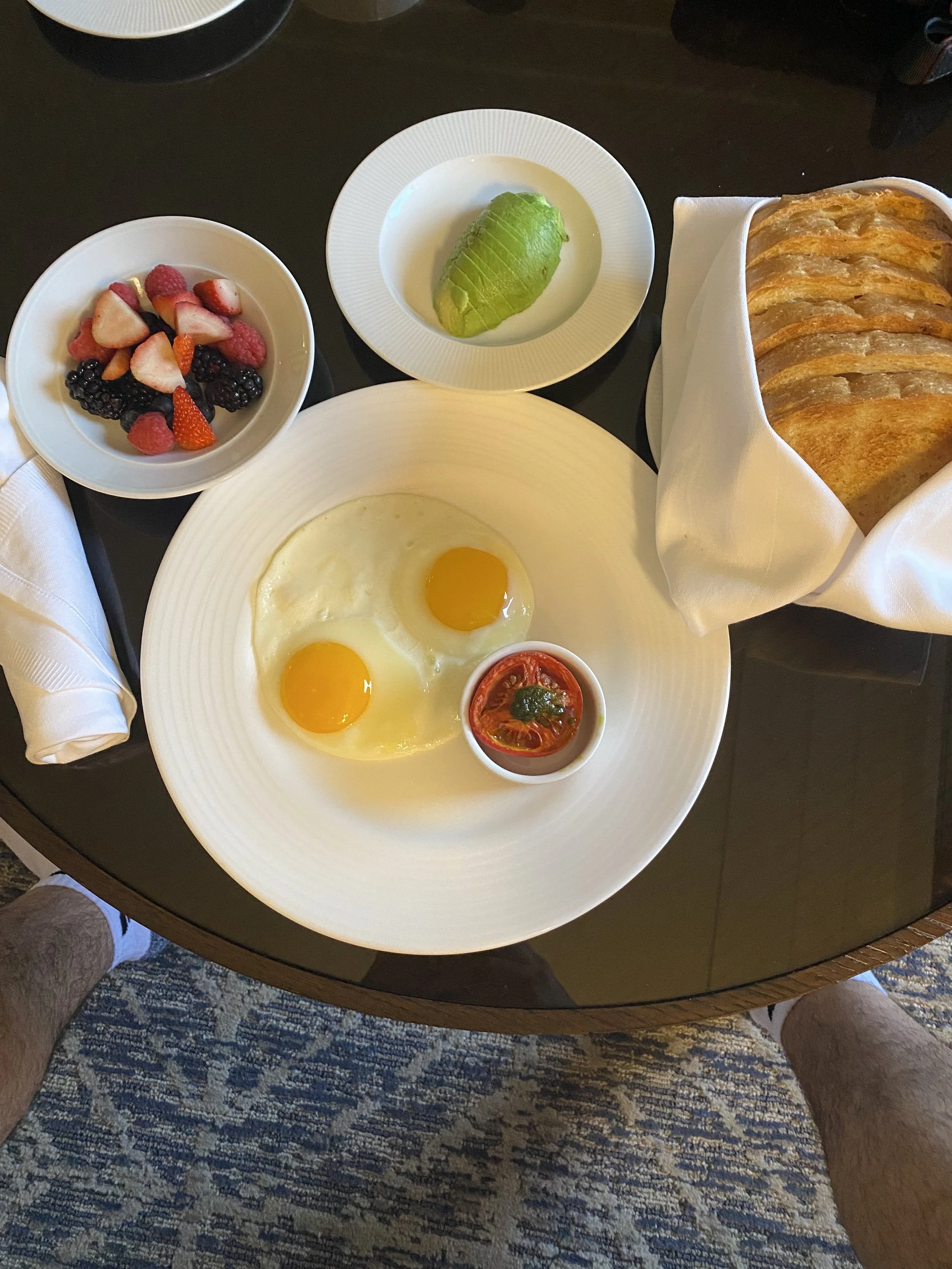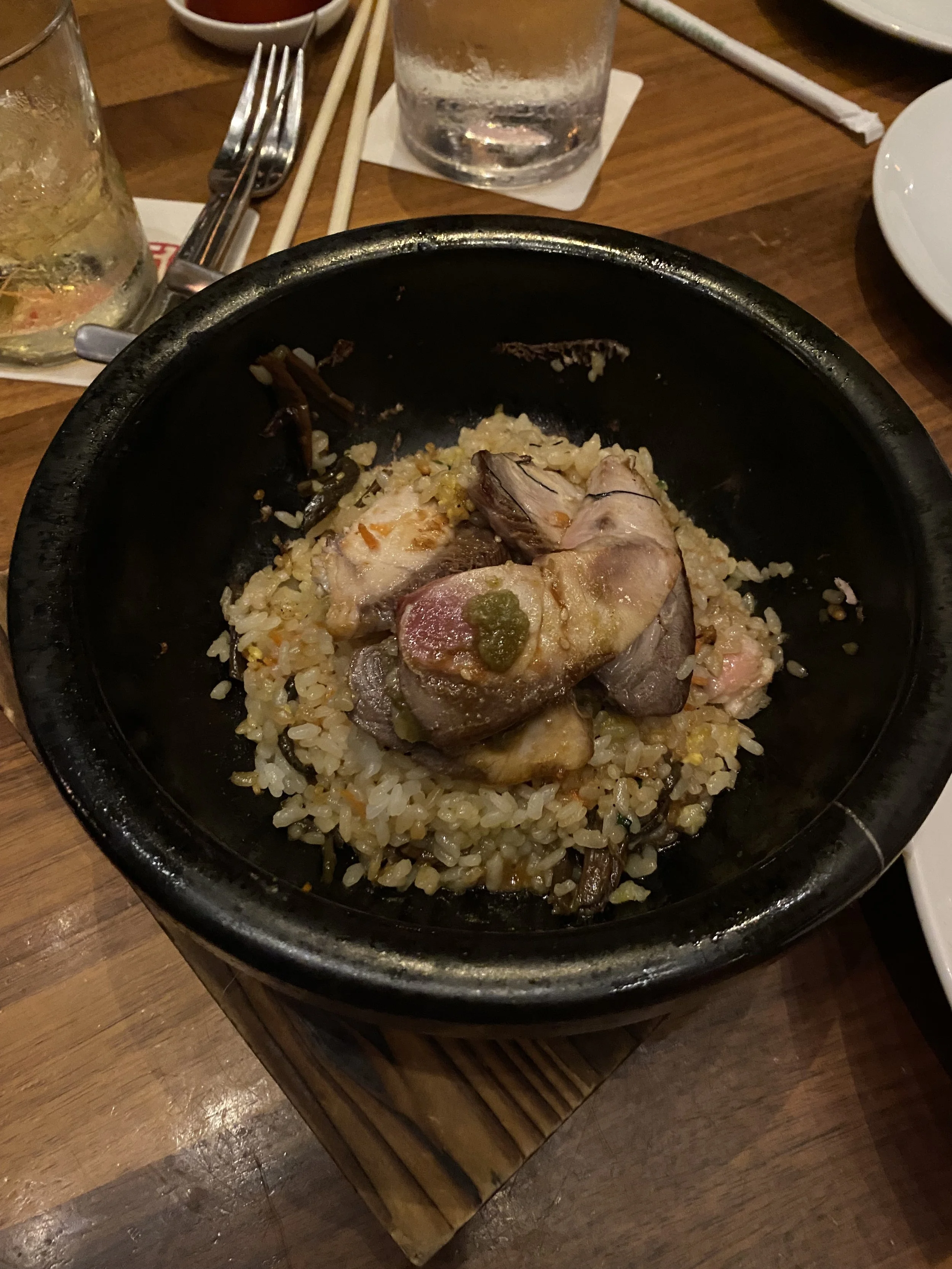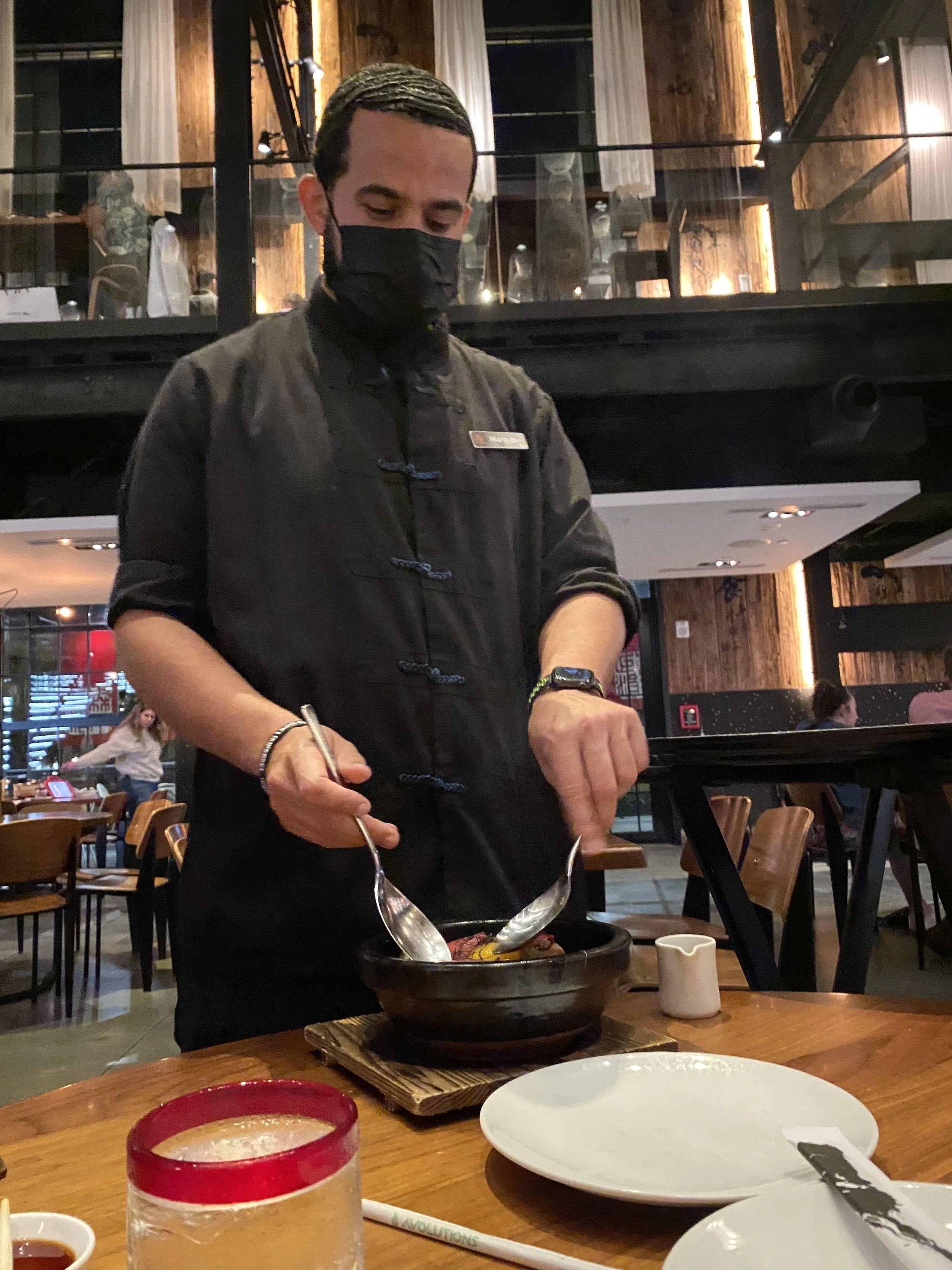 For dinner we shared edamame, a miso soup, a stir fried tofu medley and a kung pao cauliflower. Tzvi also had the Morimoto “buri-bop” (Korean-style yellowtail rice bowl served in a hot clay pot, finished with egg yolk) and a spicy tuna roll. So yeah, we had way too much food as usual.