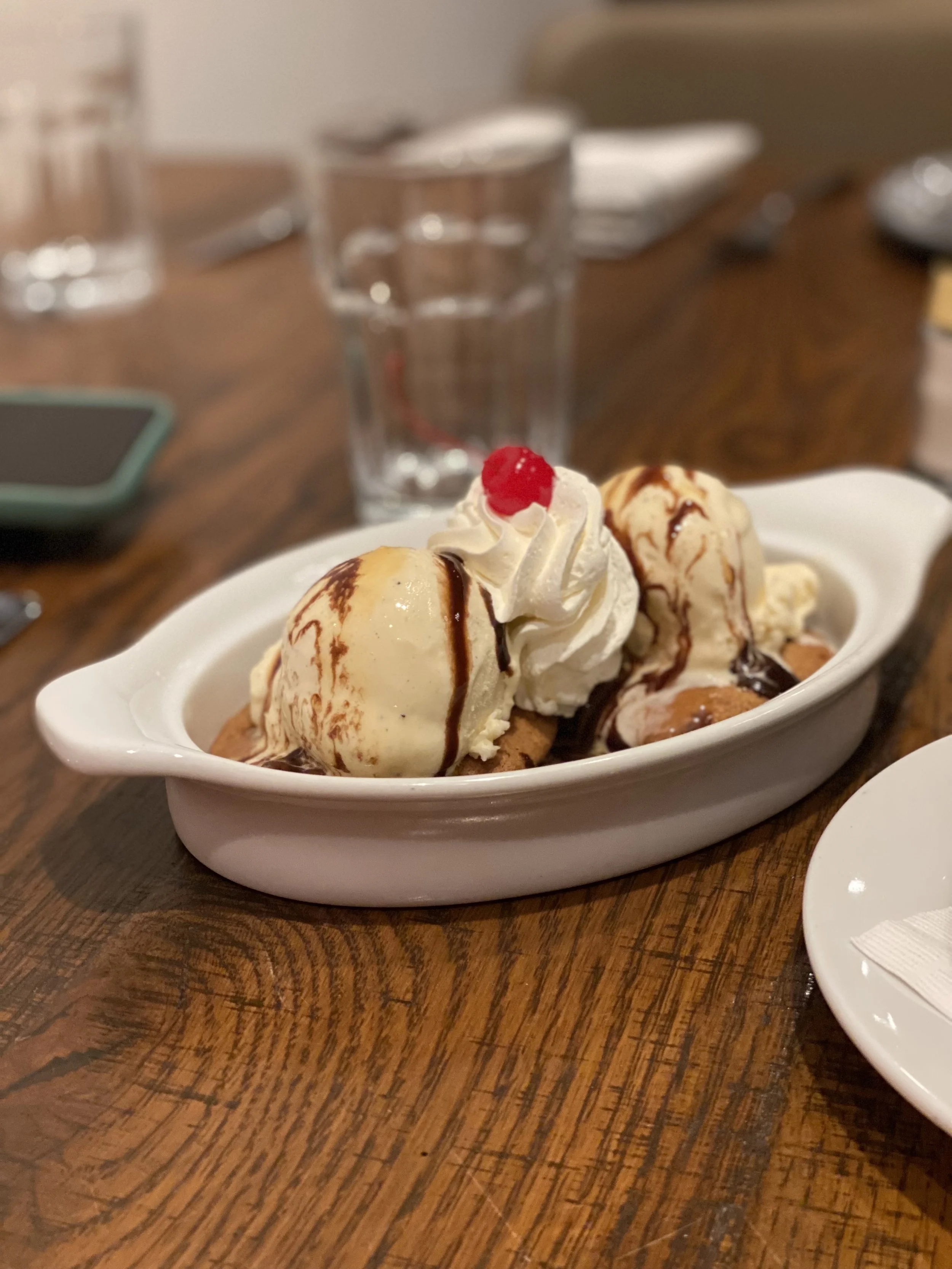 I was so nauseous after dinner. Maybe it was all the salt? There was nothing we wanted on the dessert menu, so we decided to leave. We had originally planned to go the tiki bar at the Polynesia hotel, but when we called the Polynesian to try to find out about the wait, we were told that the only way into the Polynesian is with a dining reservation and the bar doesn’t take reservations, so basically the only way we could get there would be to take an Uber to the transportation and ticket center and then take a monorail over, and then there was no way to know if there was a two hour long wait for the bar or not. So we decided to forgo that and instead went to Paddlefish, another Disney Springs restaurant which is on a huge boat. We’ve never been there so it was cool to see. They seemed to be closing up, but still sat us for dessert. Our waiter seemed like a freshman in college and didn’t know much about the menu, but he was nice. We got a key lime pie and a cookie Sundae. Both were pretty good. Things were closing up after that so we went back to the hotel and went to bed.