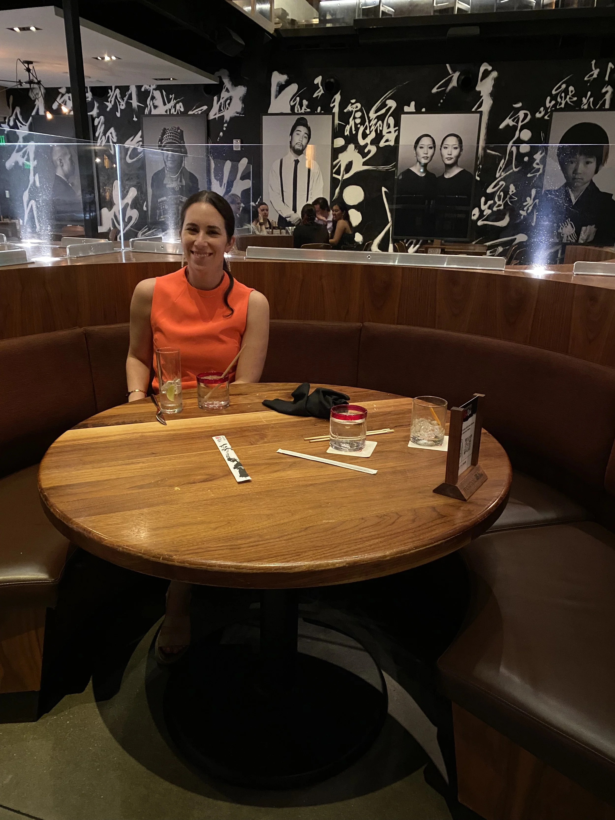 Tonight’s dinner was at Morimoto. When we got to Disney Springs we had some time to spare so we walked around and shopped a little. Then we made it for our reservation. When we got in I requested a table upstairs and they said they were full. I asked if that was something I could have requested earlier and they didn’t really give me an answer. Then they brought us to a table that Tzvi didn’t like (it wasn’t a great table) and we asked if we could have a booth instead. Thankfully they said yes and that was actually very nice. It was weird – we had this reservation for months and they were almost acting like we were walk ins.