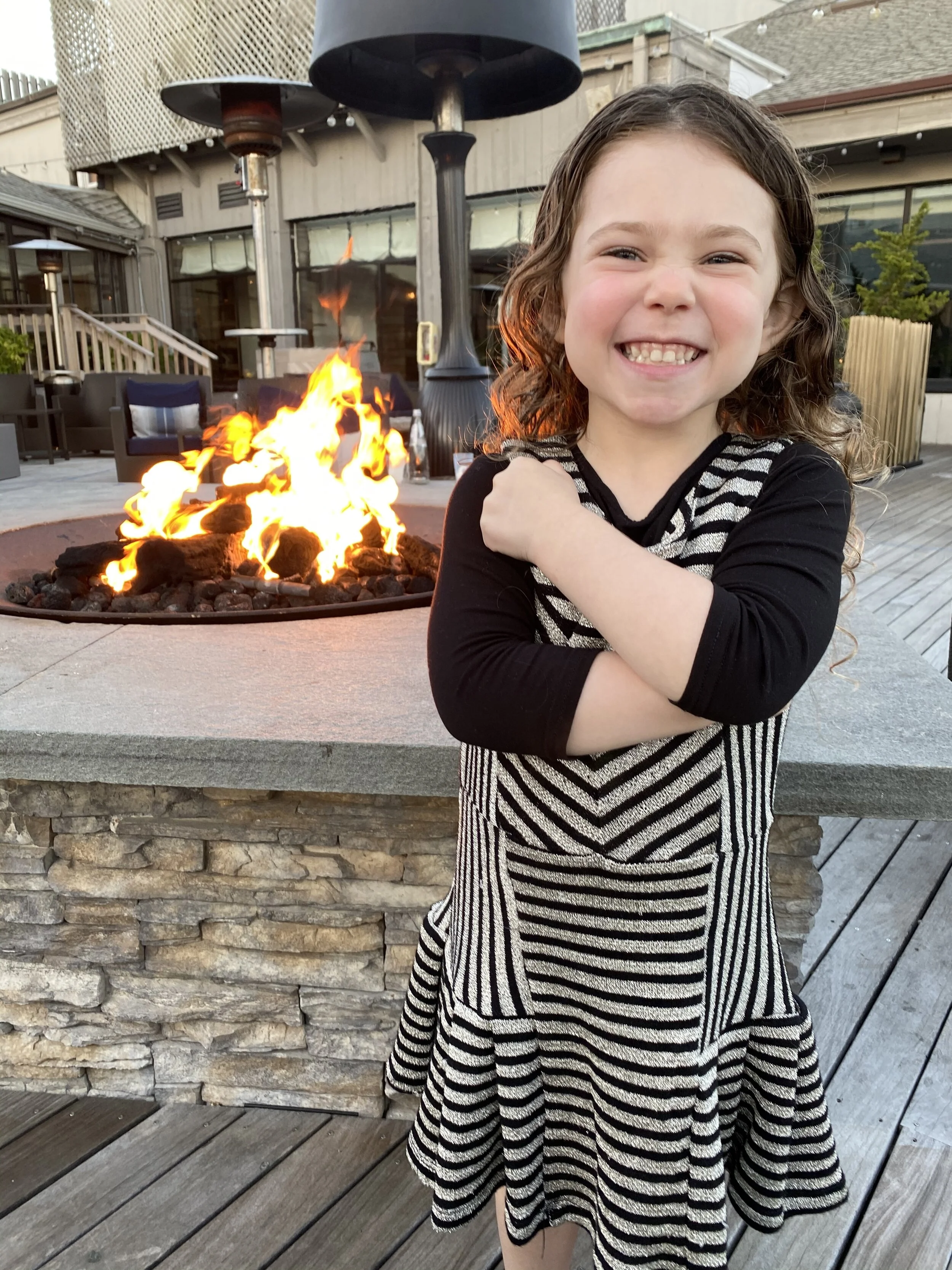 Dinner was a little complicated. Gurney’s has a branch of Scarpetta (with outdoor seating), and even though it’s an Italian restaurant, they don’t have pizza. However, the hotel bar does have pizza, but you can’t get that pizza at Scarpetta. So, since Hallie won’t really eat anything other than pizza, Tzvi took Hallie down to the bar early and got her a pizza, which she ate next to the outdoor fire pit.
