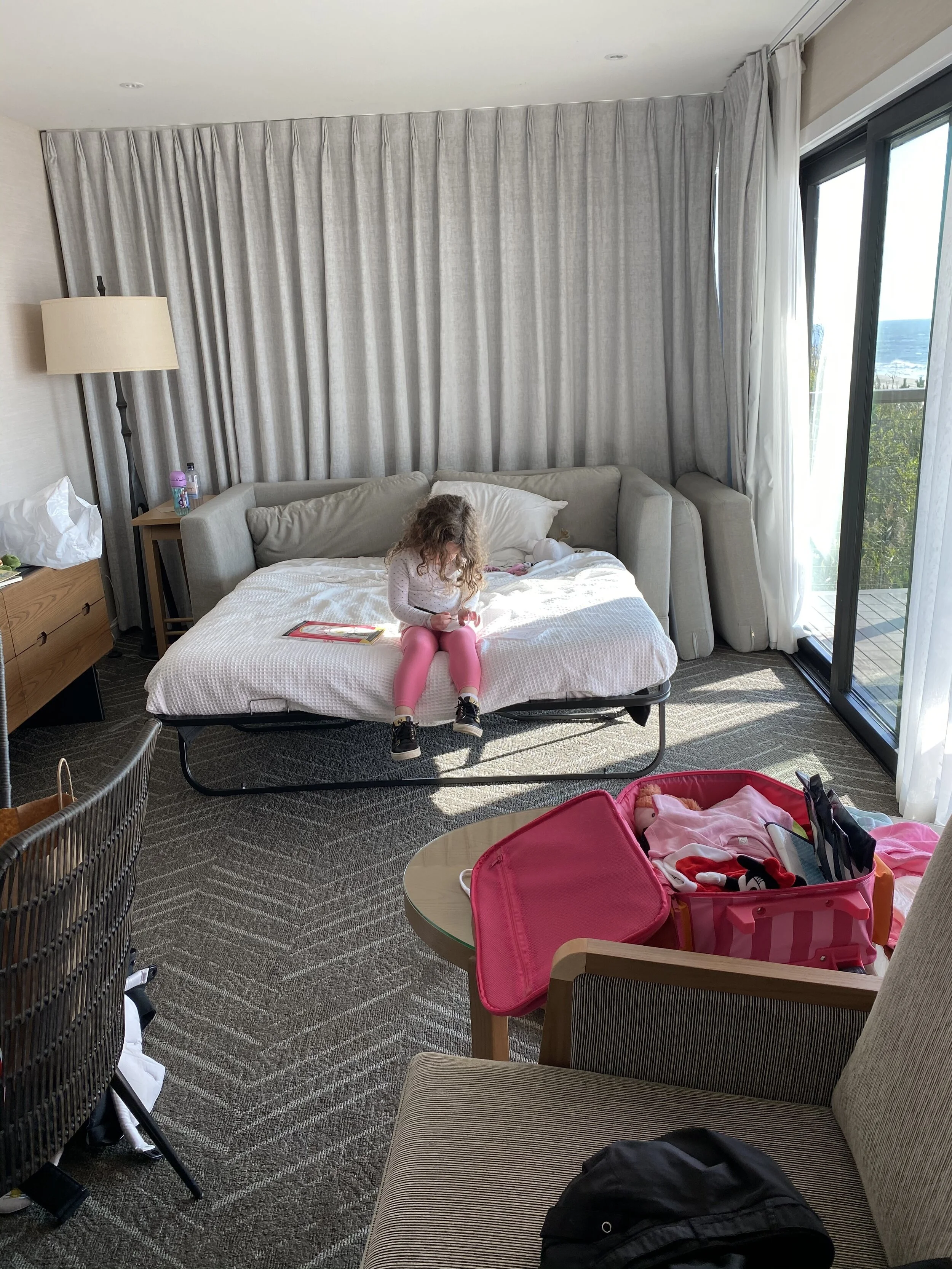 We set up breakfast on the terrace. It was really nice. Hallie had pancakes and Tzvi and I both had avocado toast. It was really good, but after a few bites Tzvi found something in his container that we determined was definitely a peanut. We called room service and they apologized for almost killing my husband and said they would take it off the bill. Tzvi was freaking out a little but he was fine (I don’t think he actually ate anything he shouldn’t have).