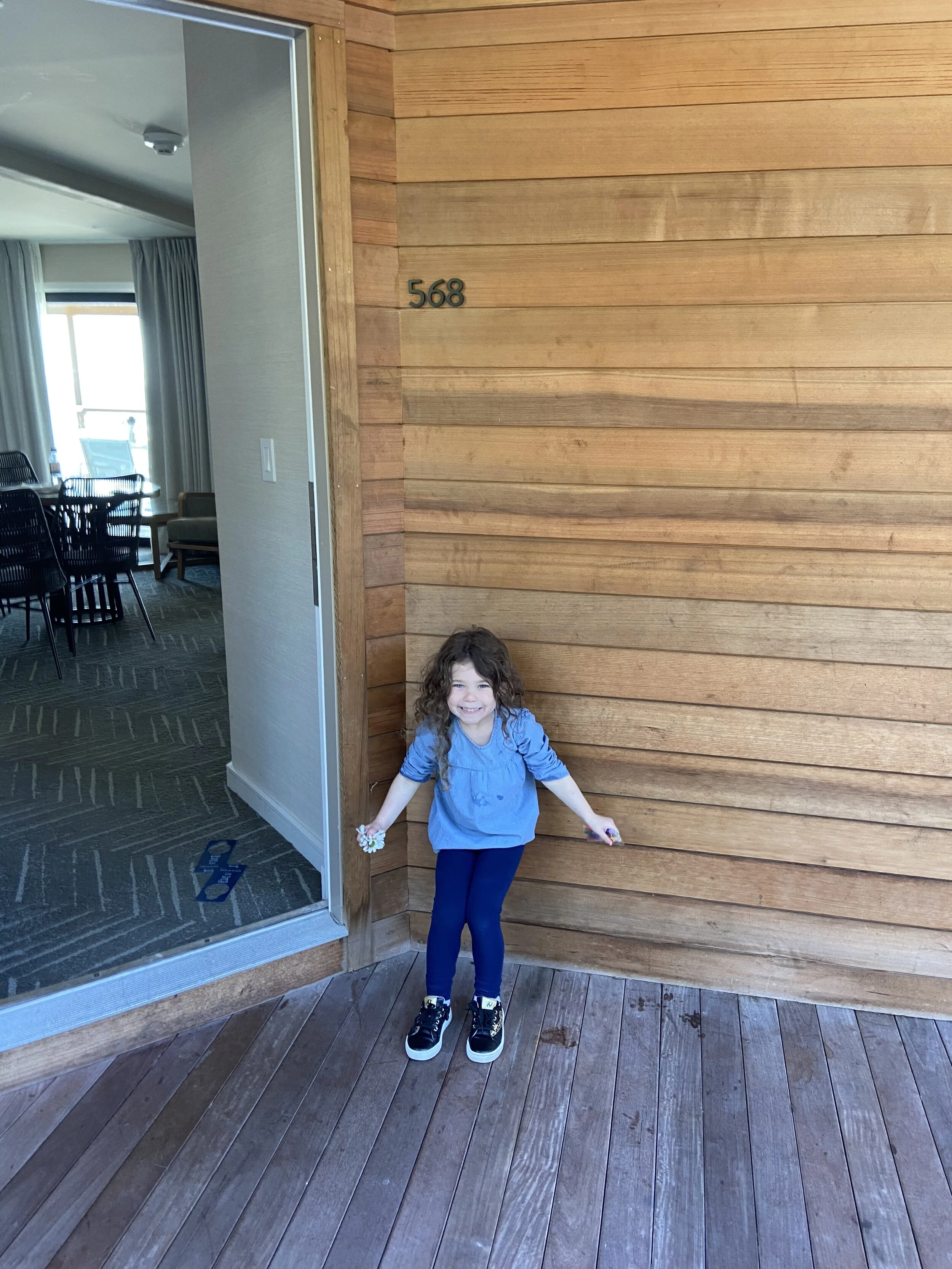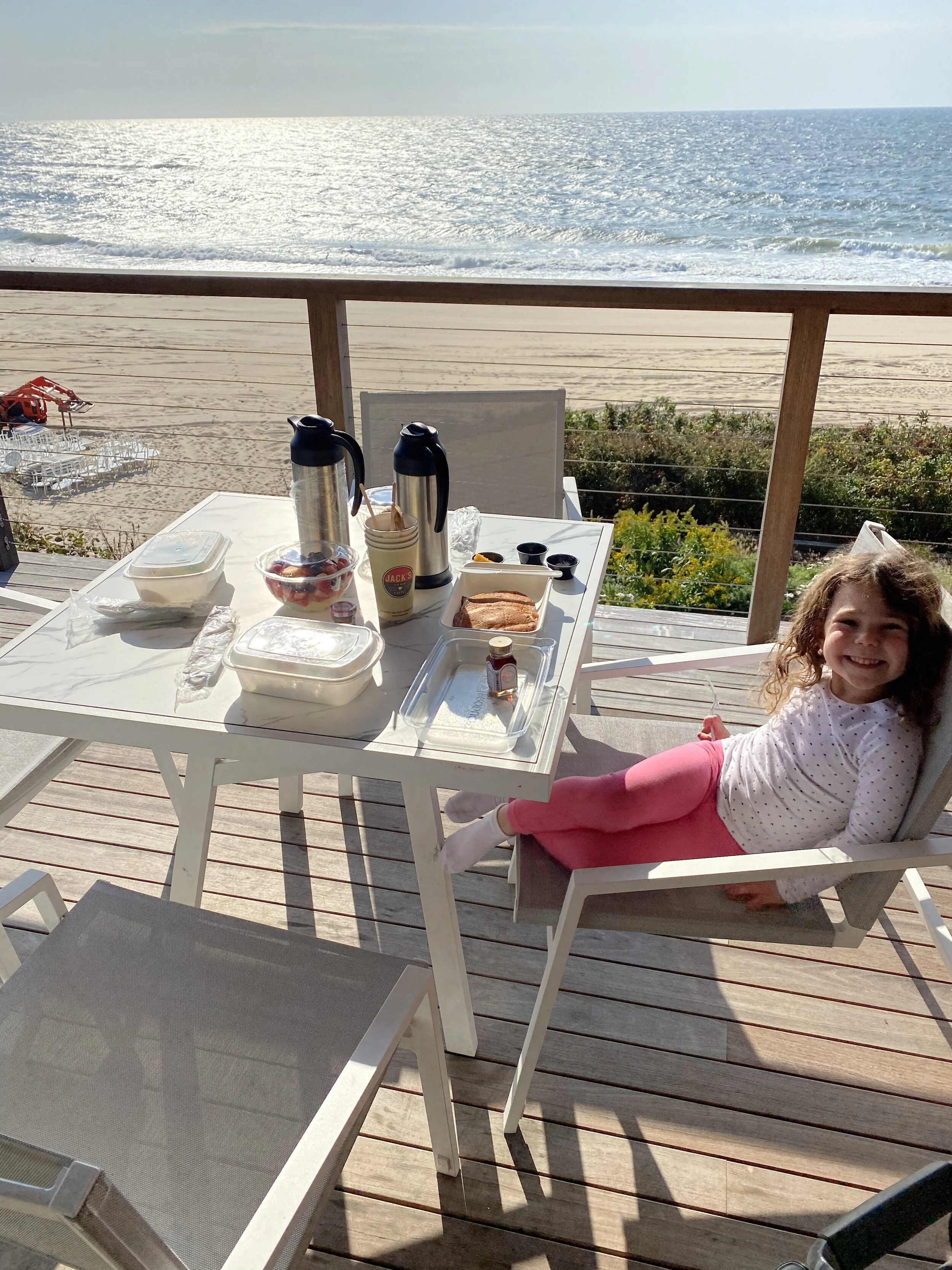 From there we drove about a half hour to Montauk (which is basically the end of Long Island) and finally arrived at Gurney’s. We chose Gurney’s because it seemed like they were doing things well and it was all pretty Covid safe. We checked in and then went to our room, which was accessed from outside. Our room was a two-bedroom suite with a balcony overlooking the ocean. We took the master suite, Malka got the second bedroom, and Hallie and Madeleine shared the living room. The room was beautiful and the view was great.