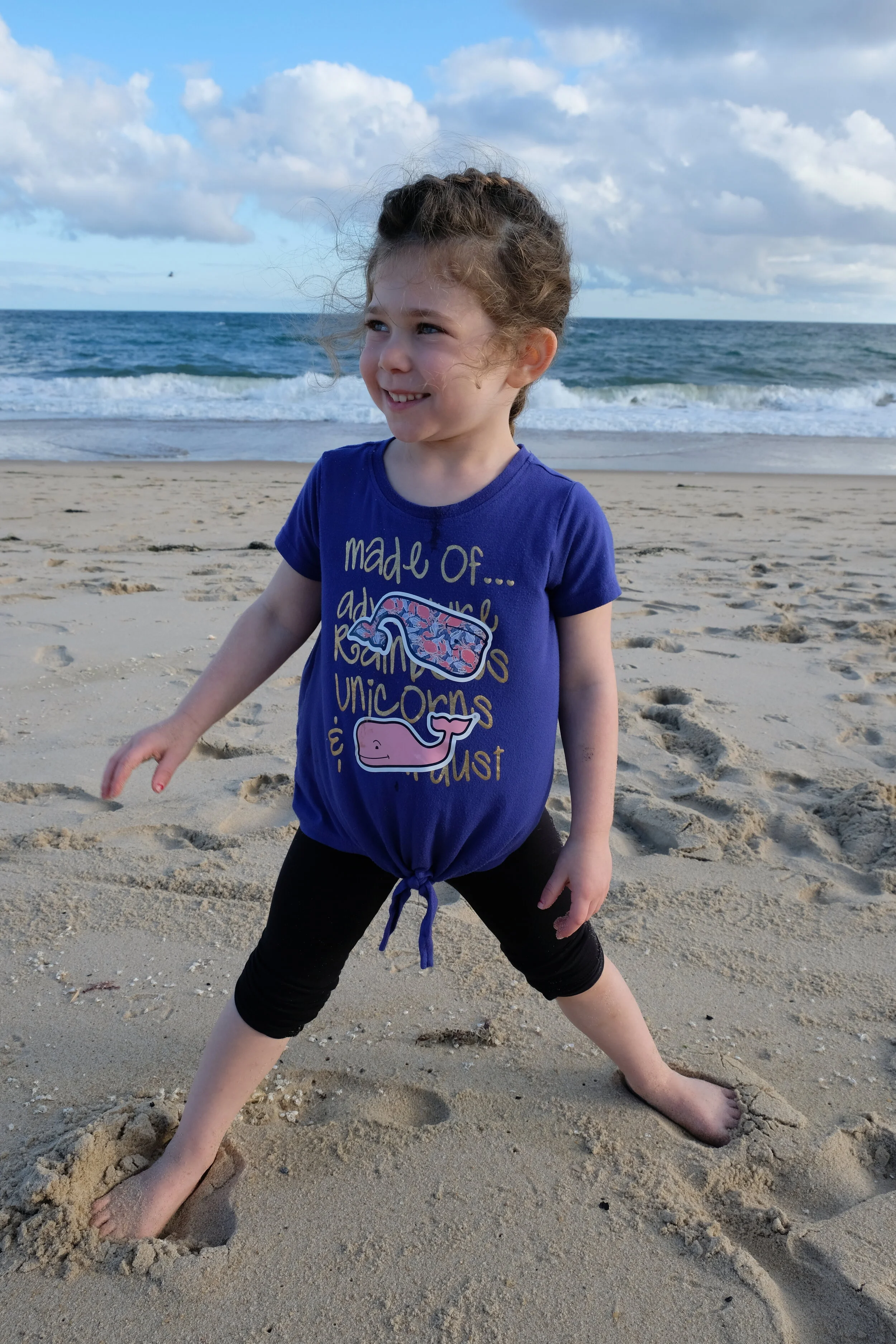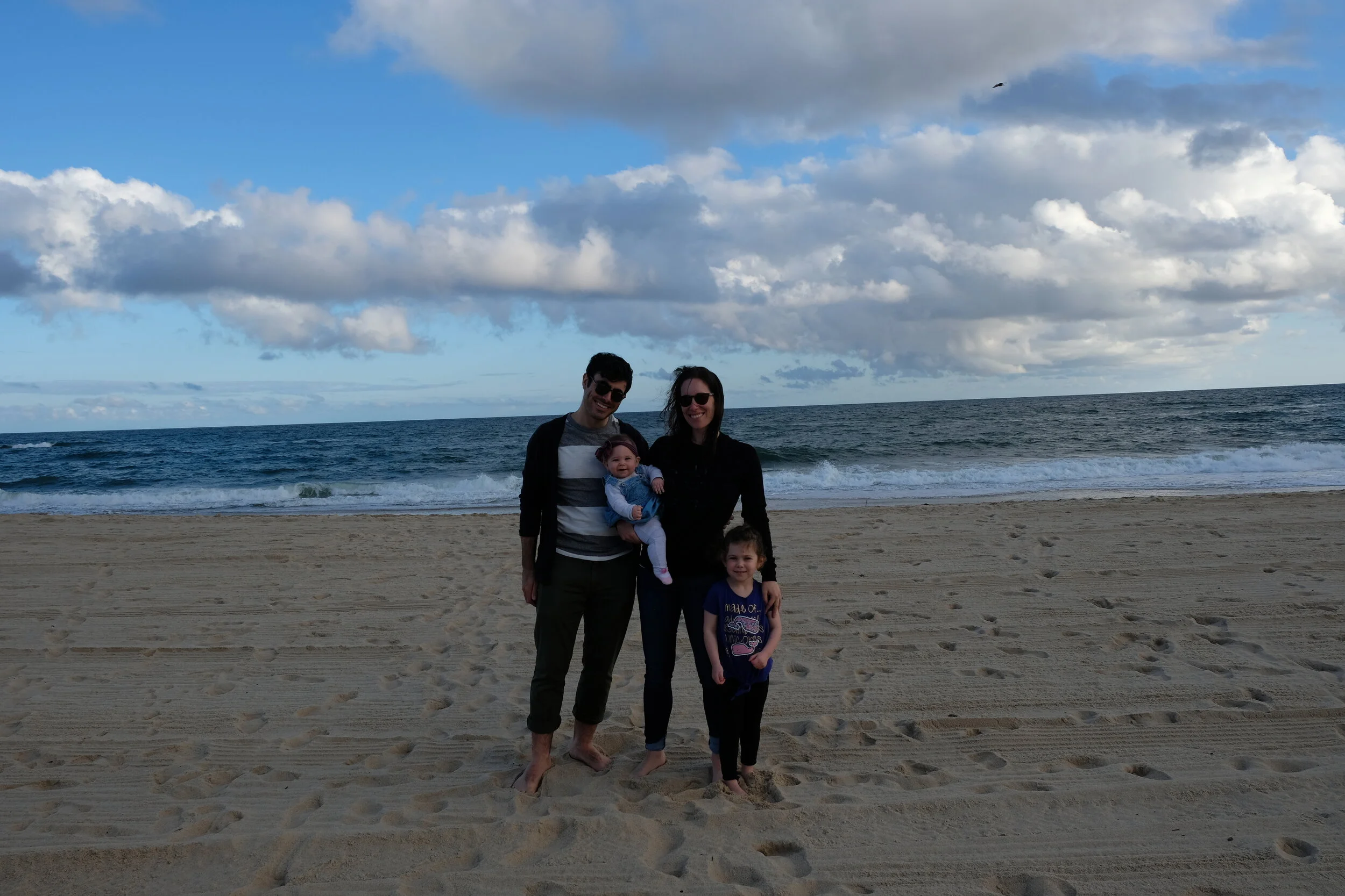 We walked down to the beach and Hallie ran barefoot in the sand, but it was pretty cold and windy. After Hallie tired out we went back to the room and changed for dinner. We bathed Madeleine in the sink (because it was just easier). I think she was just happy to be away in a new place.
