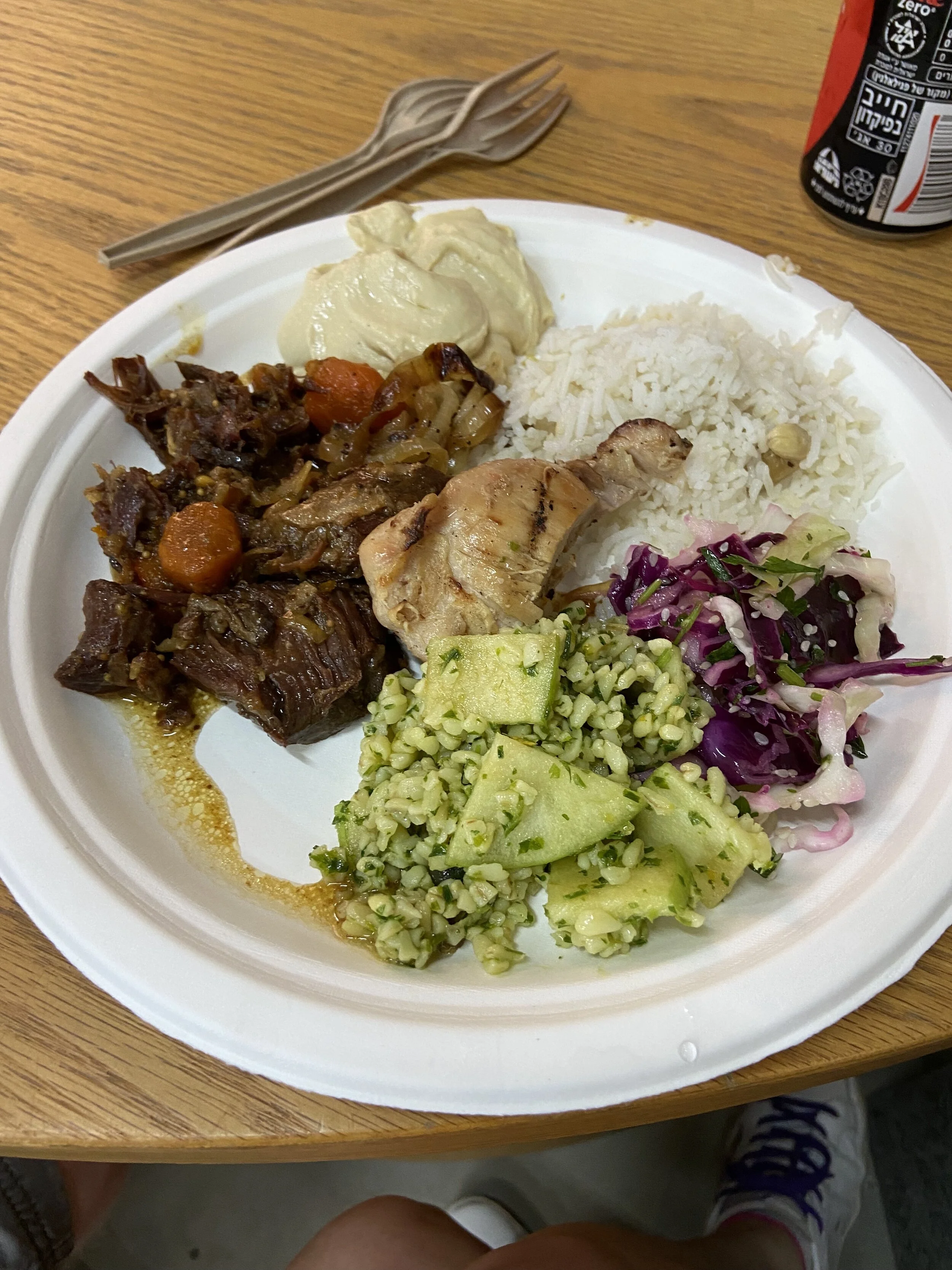 Our first stop was the Alexander Muss High School in Israel (AMHSI). When we got there they had a bagel spread, which was nice. We started out with an ice breaker and then Orit Rome, the CFO of AMHSI, gave an introduction about the school. We got a tour, some time to sit in classrooms, and then heard from a few select kids. One of them was a boy from Florida who said that he came to AMHSI because he didn’t believe in God and wanted to find his connection to Judaism. He said he found it when he learned about the sheva Mitzvot Bnai Noach (the seven laws of Noah) and found the values within the laws align with his own values. We left the school, but not without taking a group picture, and headed to our next stop, Shuni.