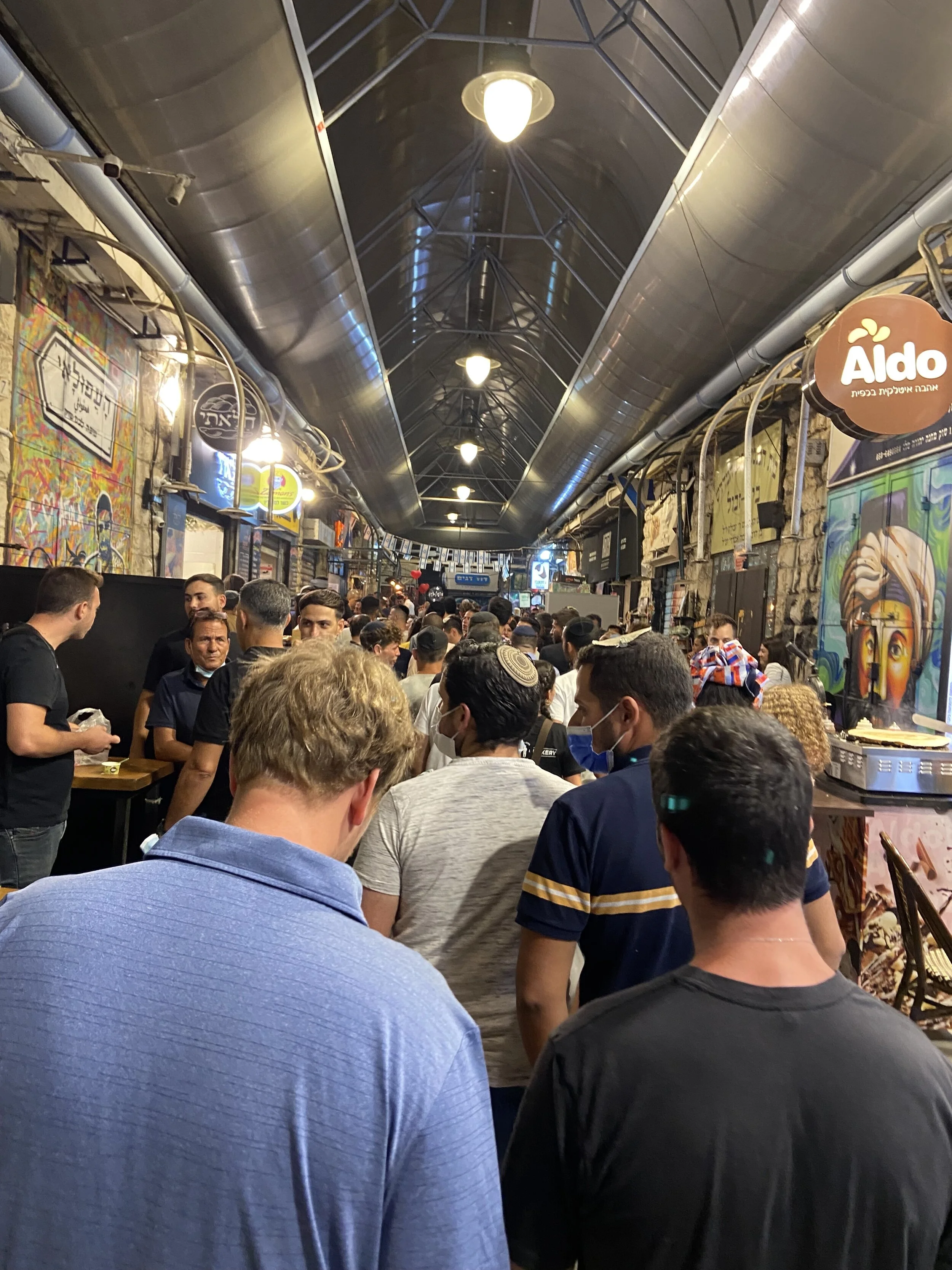 As I got back, around 11:30, Zohar texted asking if I wanted to go to Machane Yehuda, because it was “important to see the nightlife.” Well, I’ve only got one real free night in Jerusalem, so off I went. We ended up at Hatch bar where we got beers and wings, and then at Marzipan for dessert.