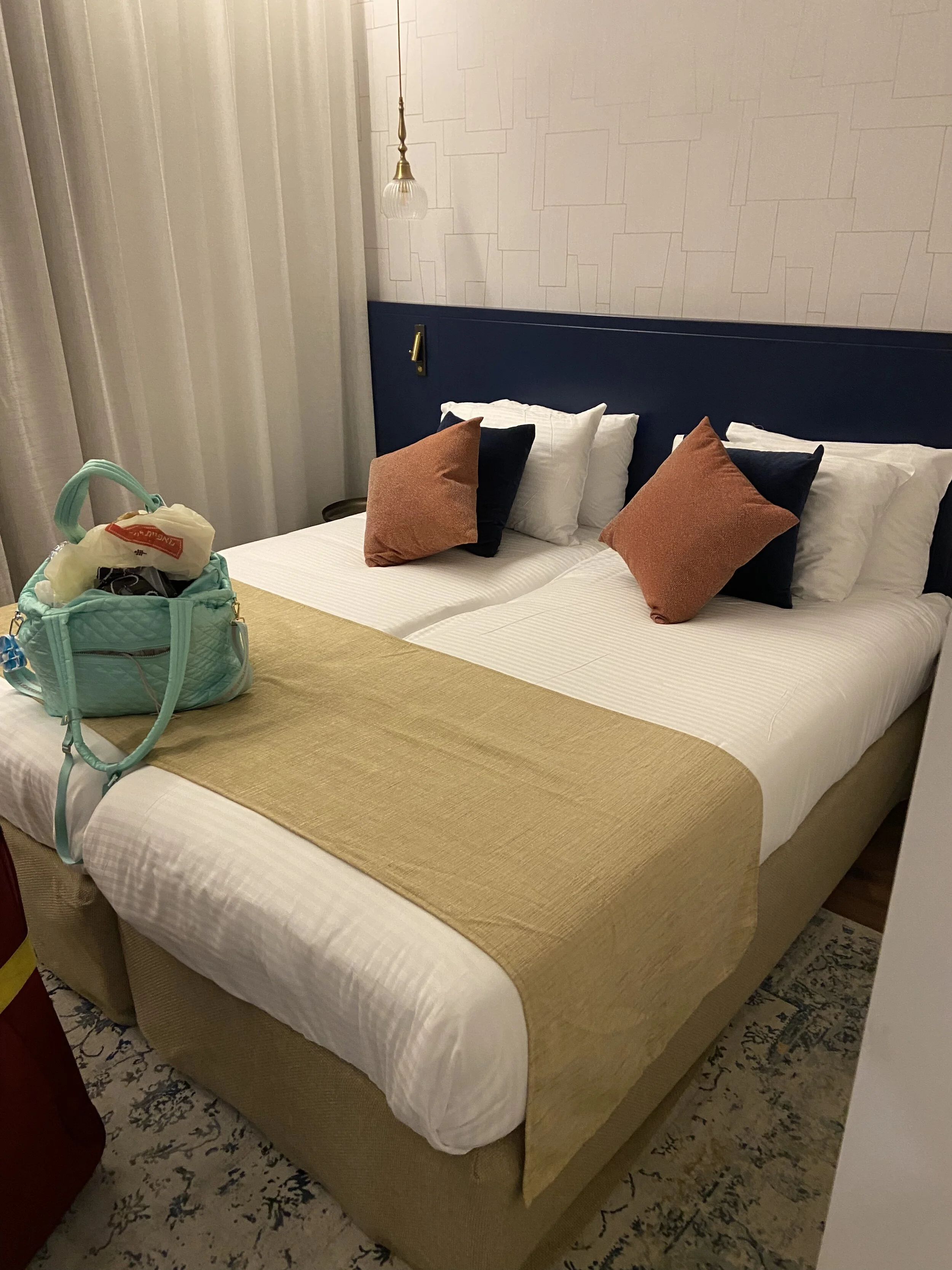We finally got to the Prima Kings, our Jerusalem hotel. This was supposed to be a free night, but it was already after 9 by the time we arrived. I decided to skip the group dinner at the hotel and venture out, so I walked from the hotel to Ben Yehuda. I stopped at Ann for kippahs, and then made my way to Mamilla. I bought Tzvi some vermouth on the way, because you can only buy it kosher in Israel. At Mamilla I tried to get a salad at Roladin, but they wouldn’t make me what I wanted. Café Rimon said they were too busy to do takeout, so I went to Arccaffee and got a salad to go. Then I walked back to the hotel.