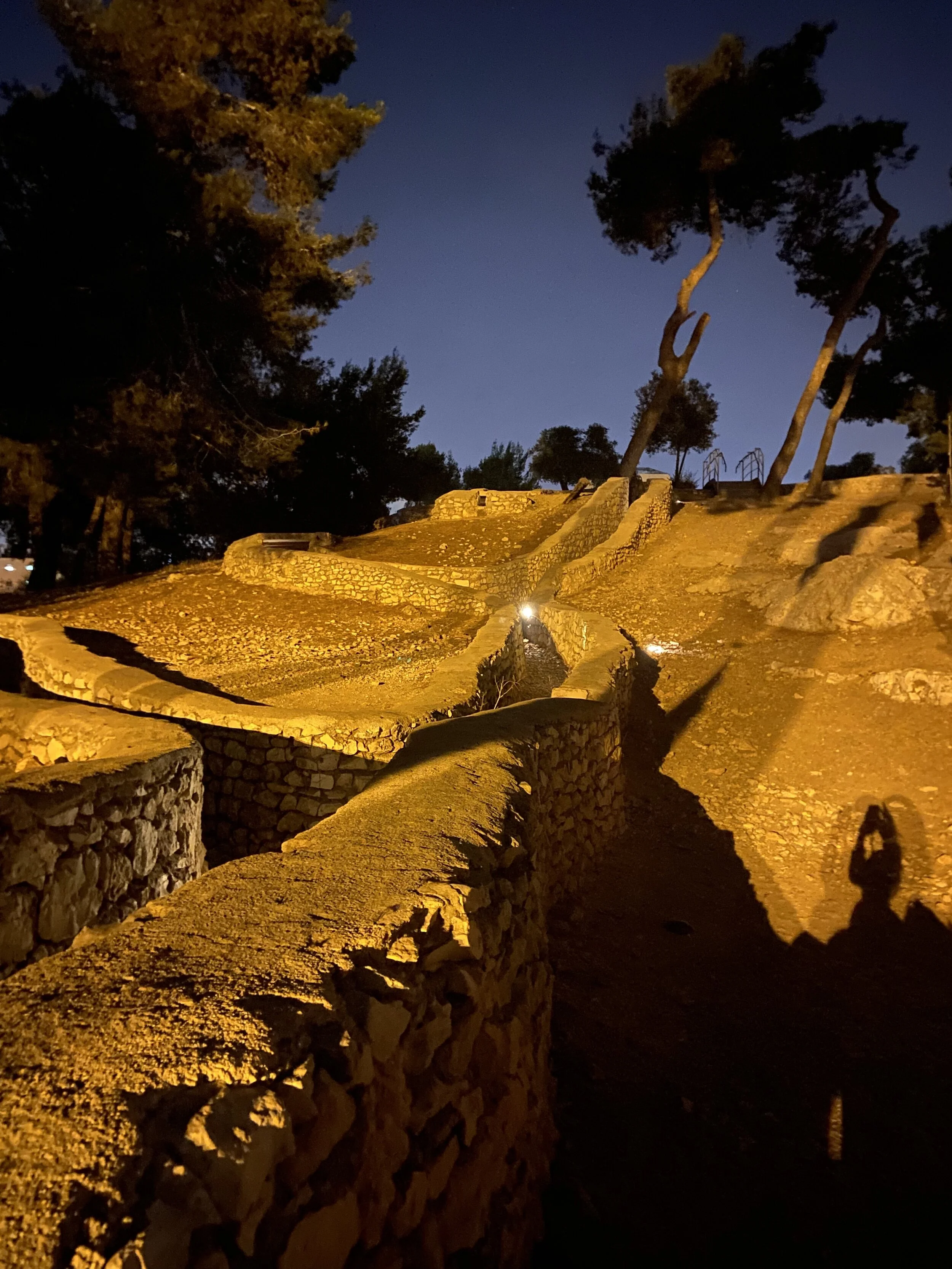 Abby and Ronnie walked me back, and then I napped a little. We had to meet as a group at 8:20 for Havdalah and then we boarded the bus to Givat Hatachmoshet (ammunition hill). We were guided by Alon Wald, who has helped revamp the site. His father died there. It was a great tour, but too long. We didn’t get back to the hotel until close to 12. So, here I am, at 12:22, writing this but I have to get up tomorrow for a 6am PCR test. Yay. Also, I didn’t eat dinner so im just snacking away. Should feel good tomorrow.