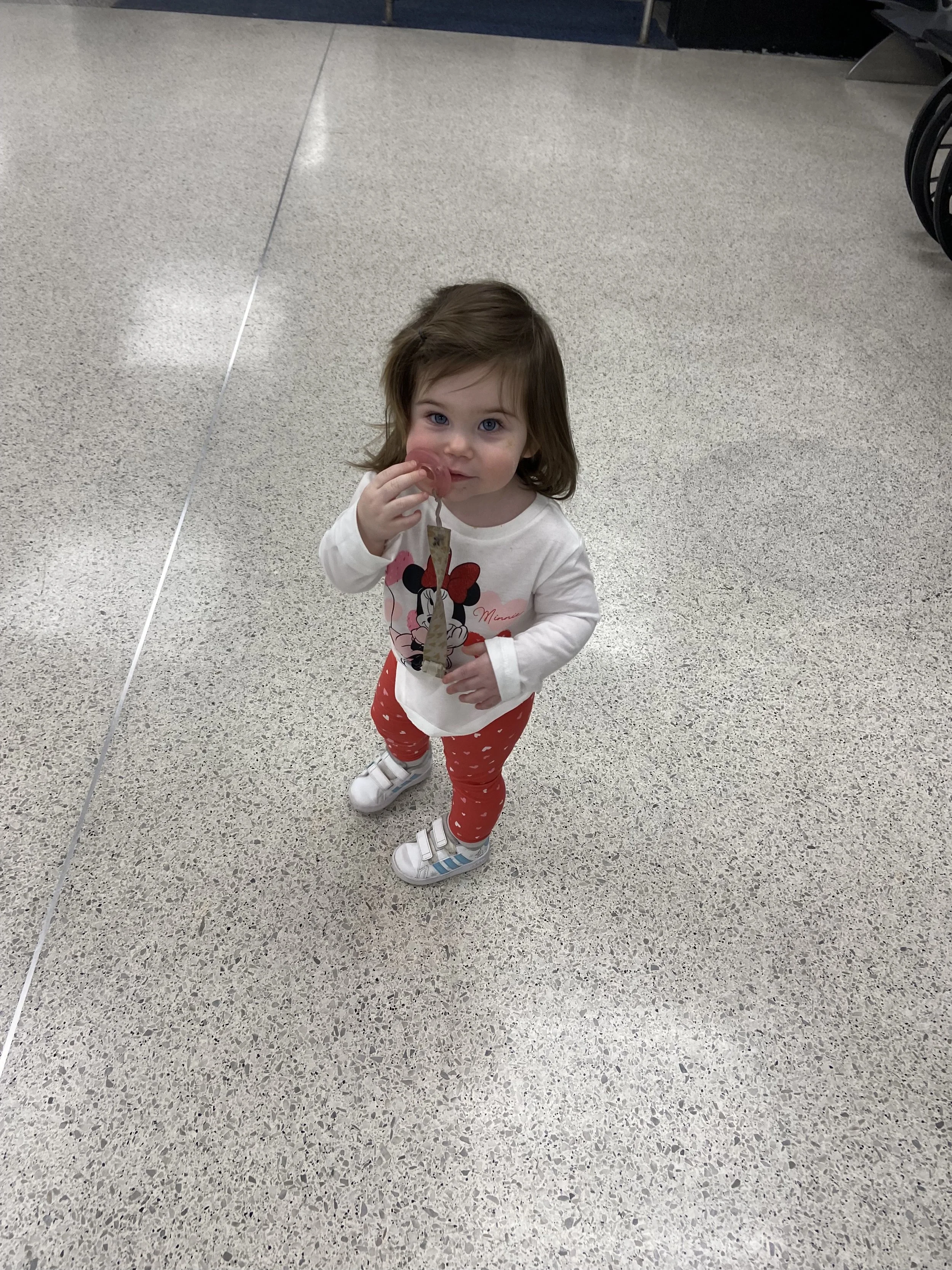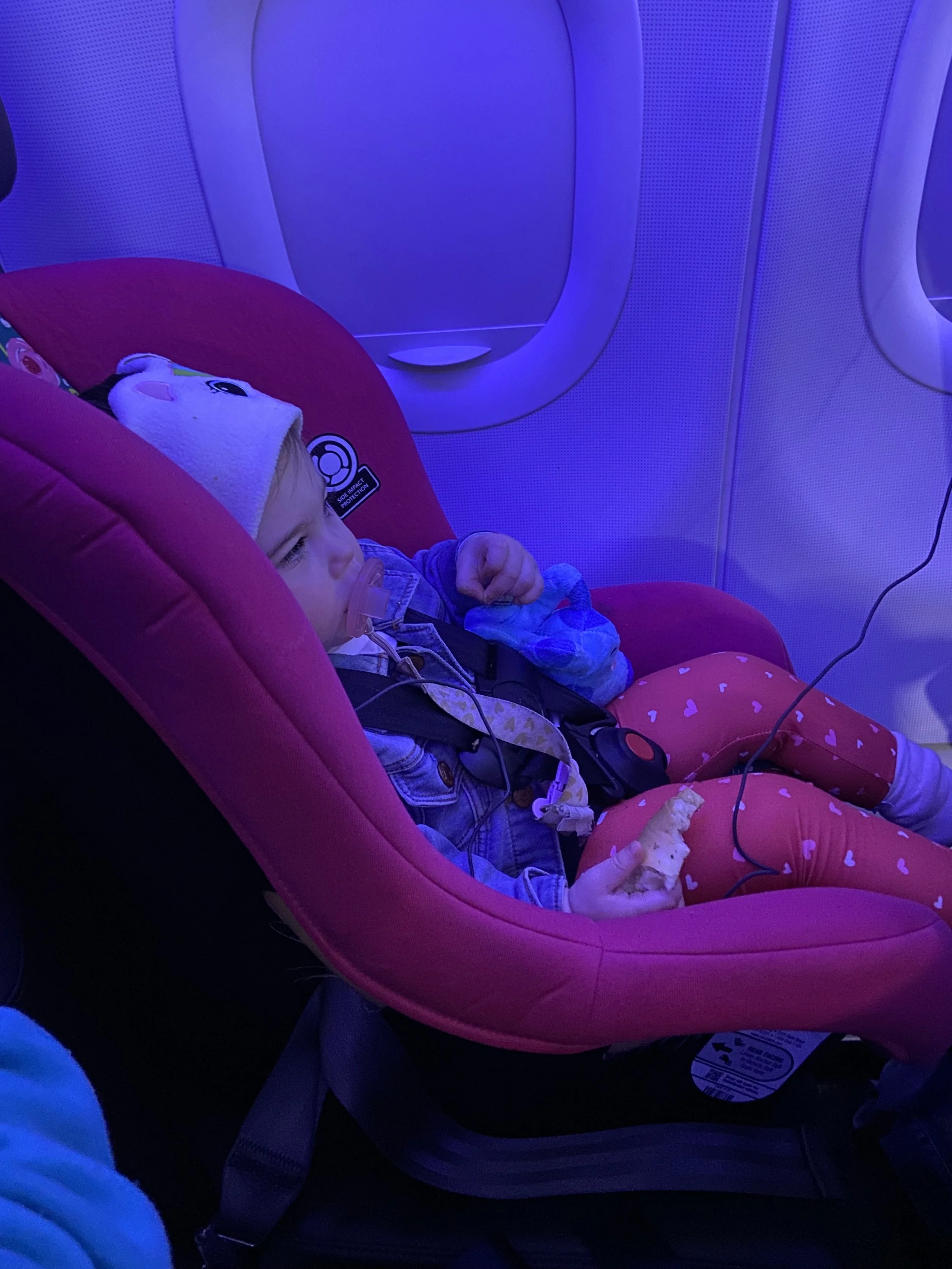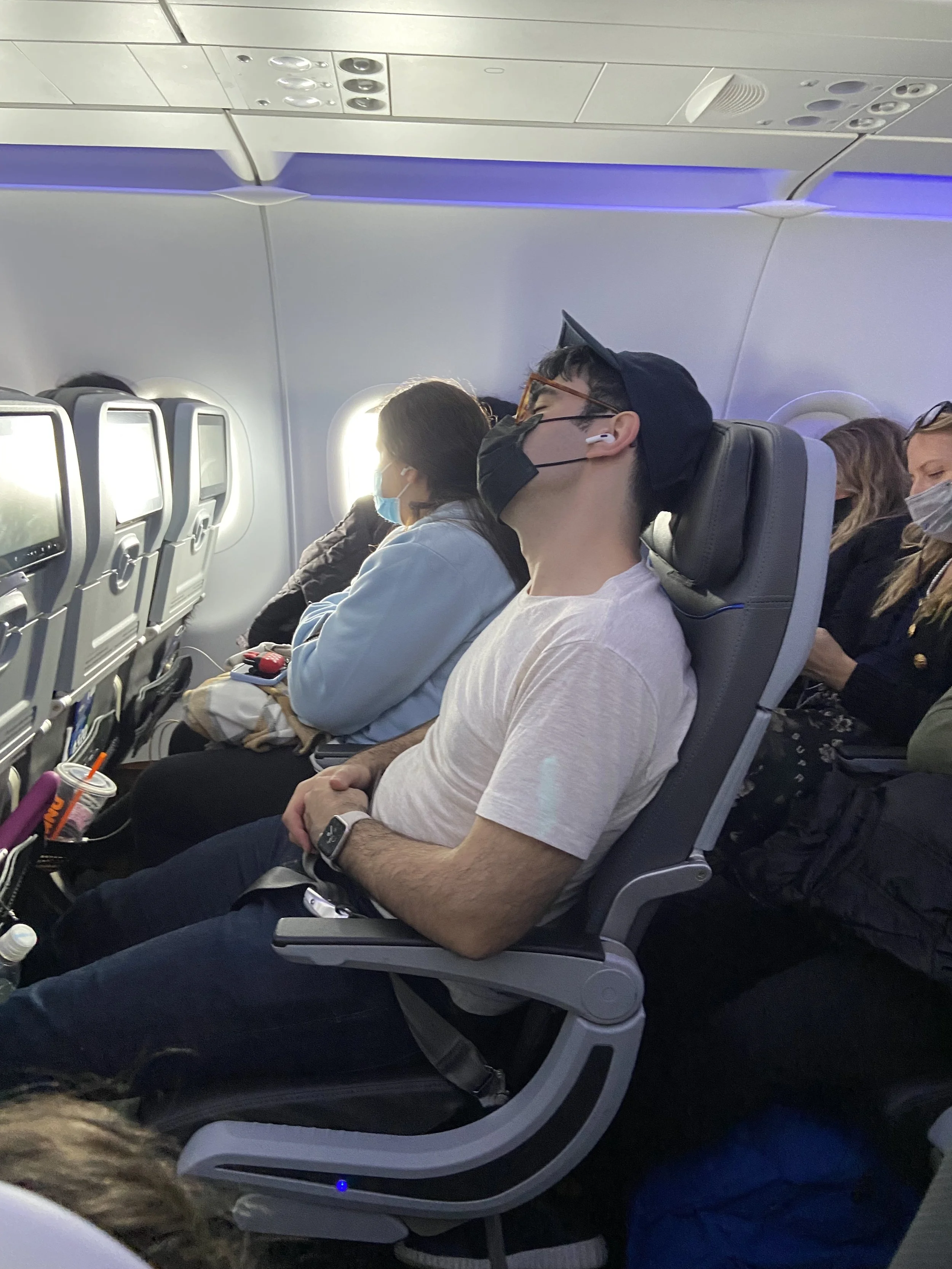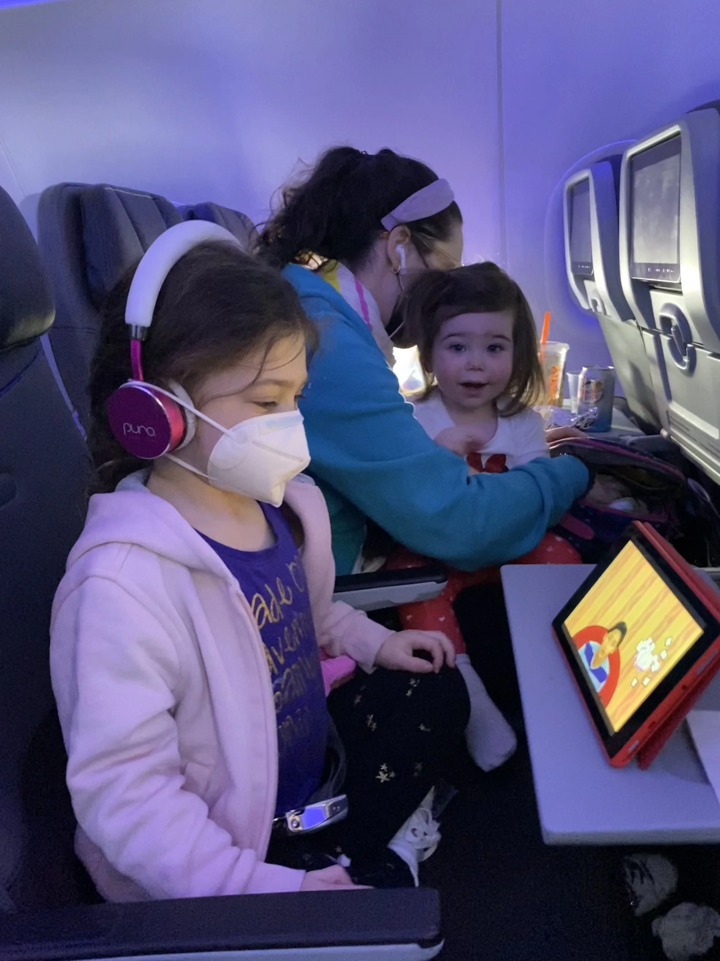 Finally we checked in and got on the precheck line where Tzvi realized he didn’t have his phone. He ran out and found it by curbside check in. That was lucky. Security was smooth and we immediately got on line for bagels and then coffee. Tzvi once again started panicking because he wasn’t going to make it to the gate in time for the start of boarding. He doesn’t even have early boarding (we actually should have Mosaic status, but that’s a story for another time). He ended up leaving me and Madeleine waiting for coffee and he, Robyn, and Hallie went to the gate. [Tzvi: By the time we got there they were boarding all rows. We had completely missed families with small children, although the entire plane was families with small children. I’ve never gotten there that late. I wonder if they just decided the Jews were all going to try to get on no matter which rows were being called, so just said screw it and said anyone could go.] Well, I finally got my coffee and as I was walking to the gate I heard “final boarding call.” Tzvi never actually told me he got on the plane, but as there was no one left, I assumed he did. I think I was the 2nd to last one to get on the plane. Not bad, not bad at all.