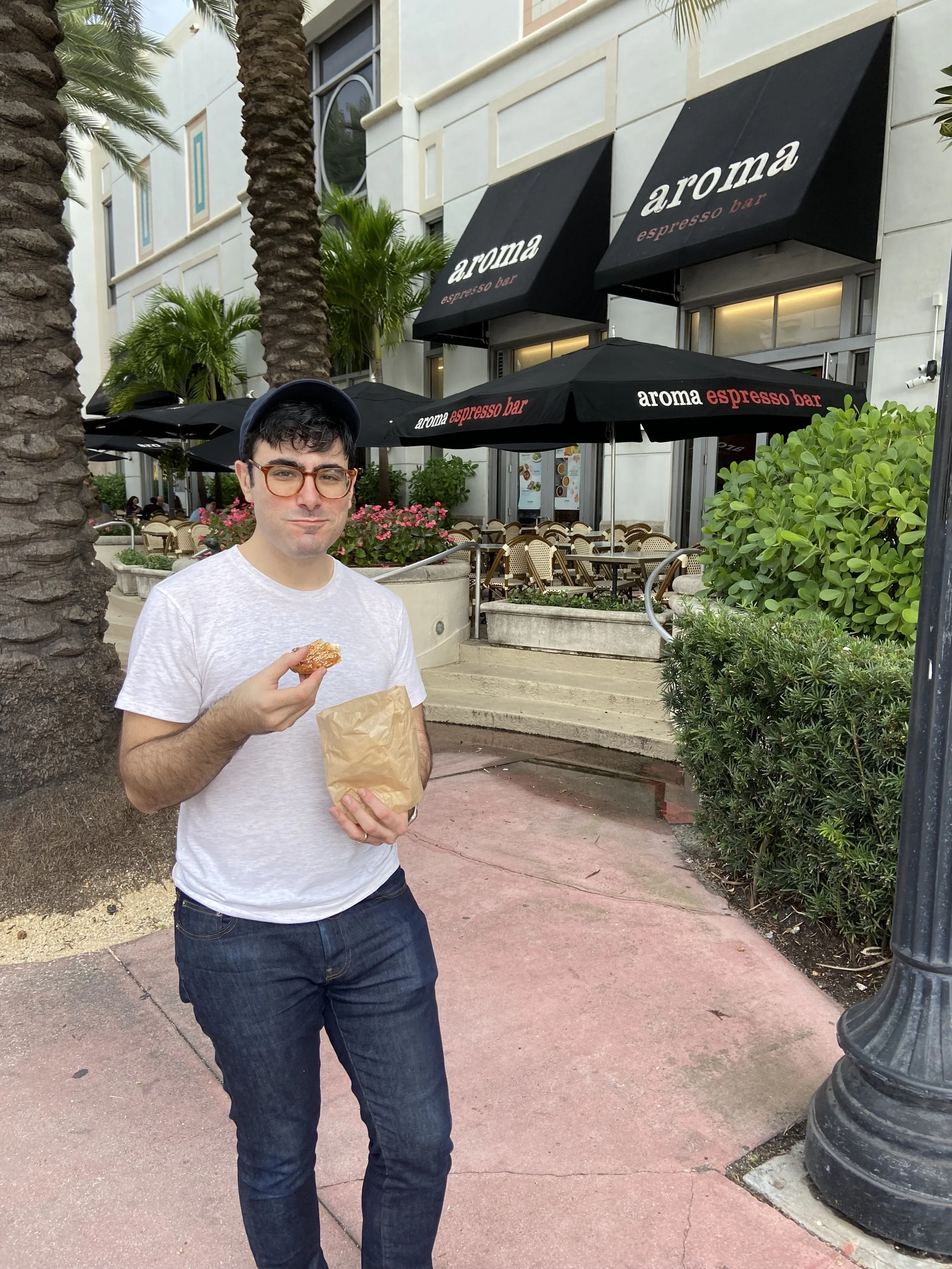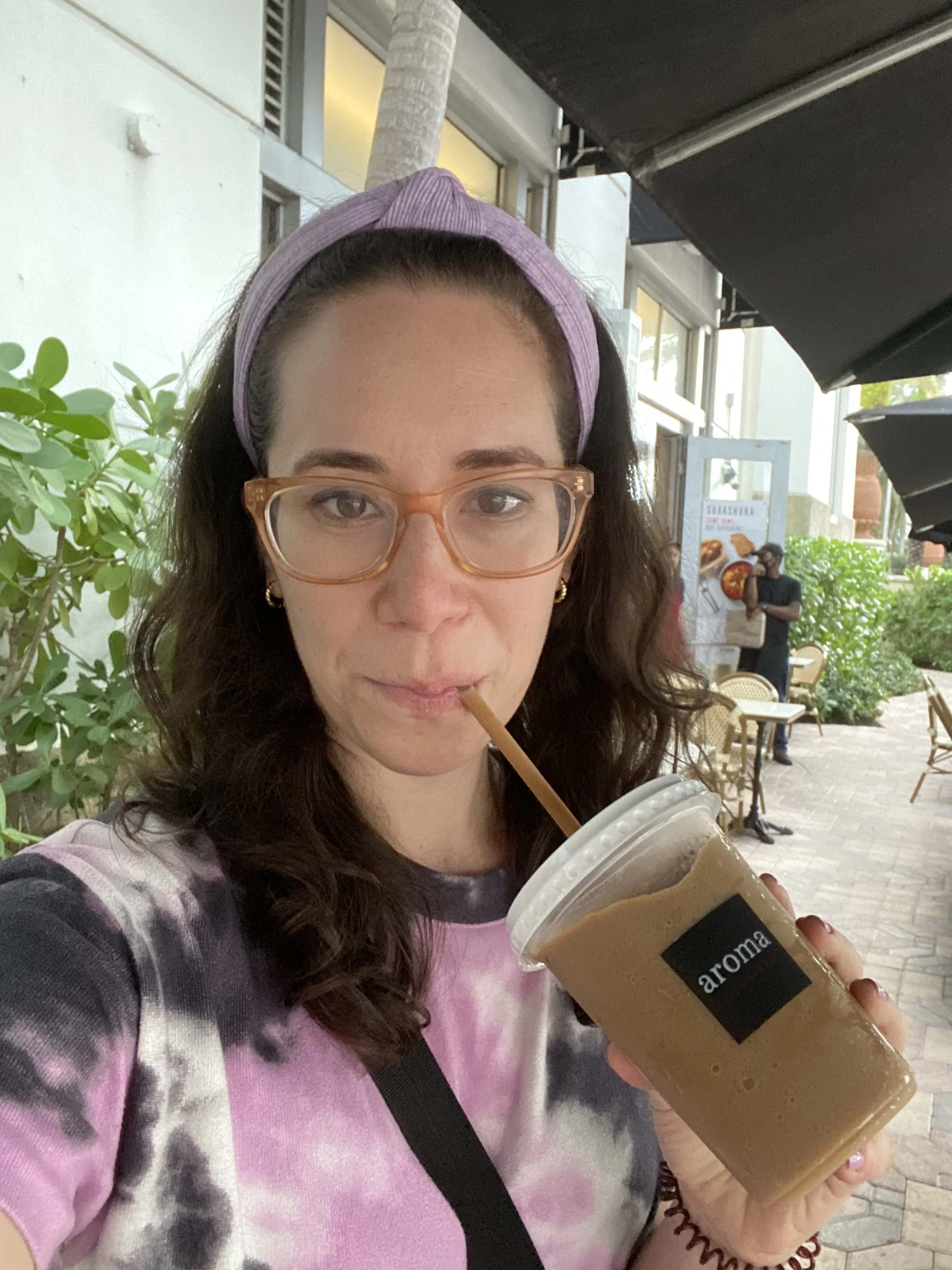 We arrived, checked in, and went to the room. Our hotel is the Loews Miami Beach hotel in South Beach, but we’ll get into more on that tomorrow. Only one room was ready so we dropped some stuff and walked to Aroma, which is basically right next to the hotel. Came to Miami for an Iced Aroma. We left Robyn and Hallie at Aroma and we walked Madeleine to try to get her to sleep. It worked.