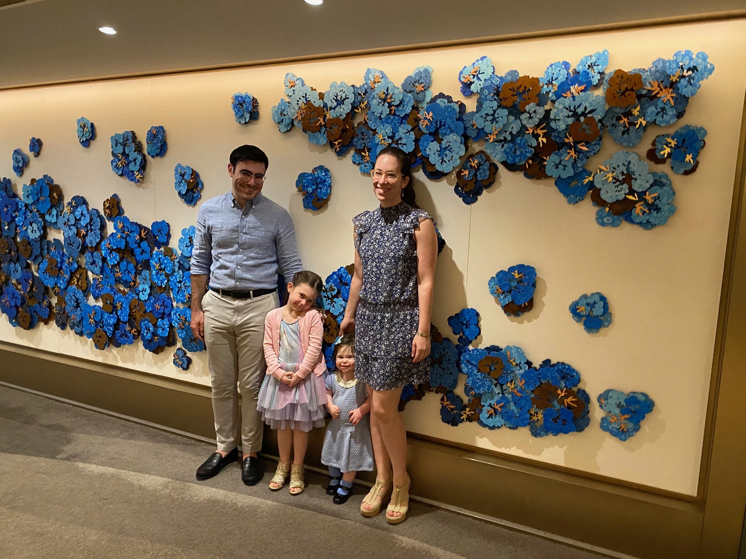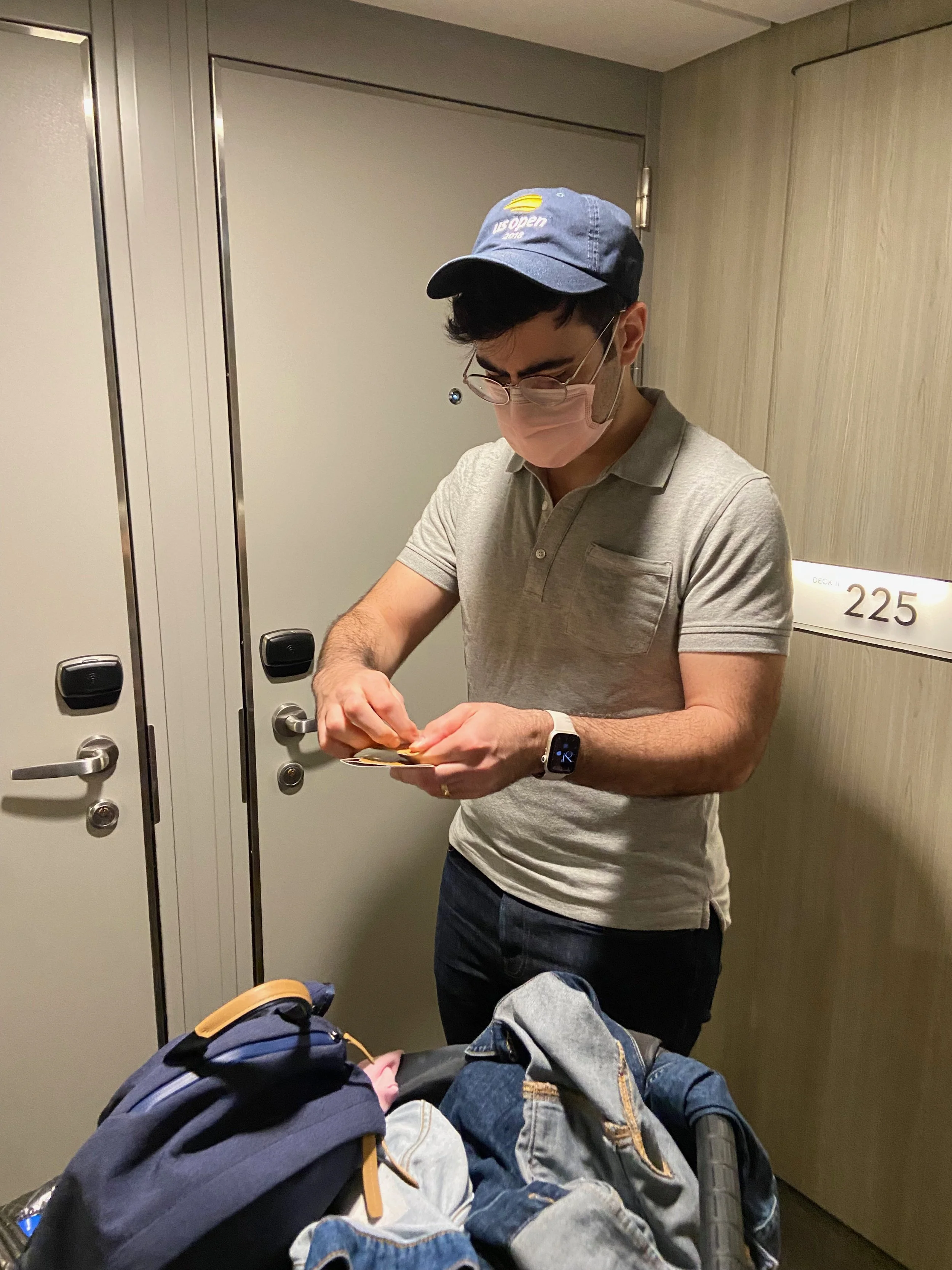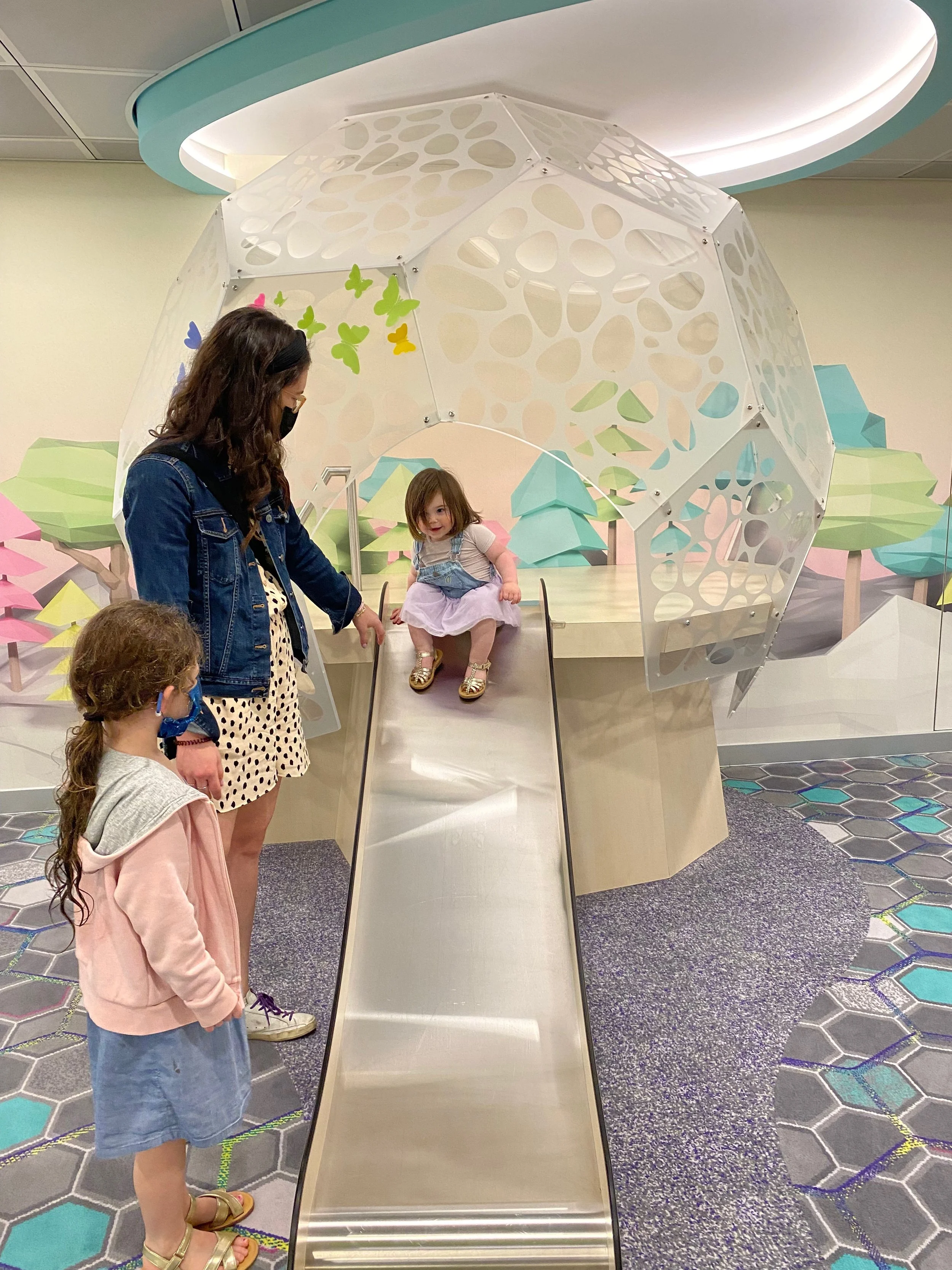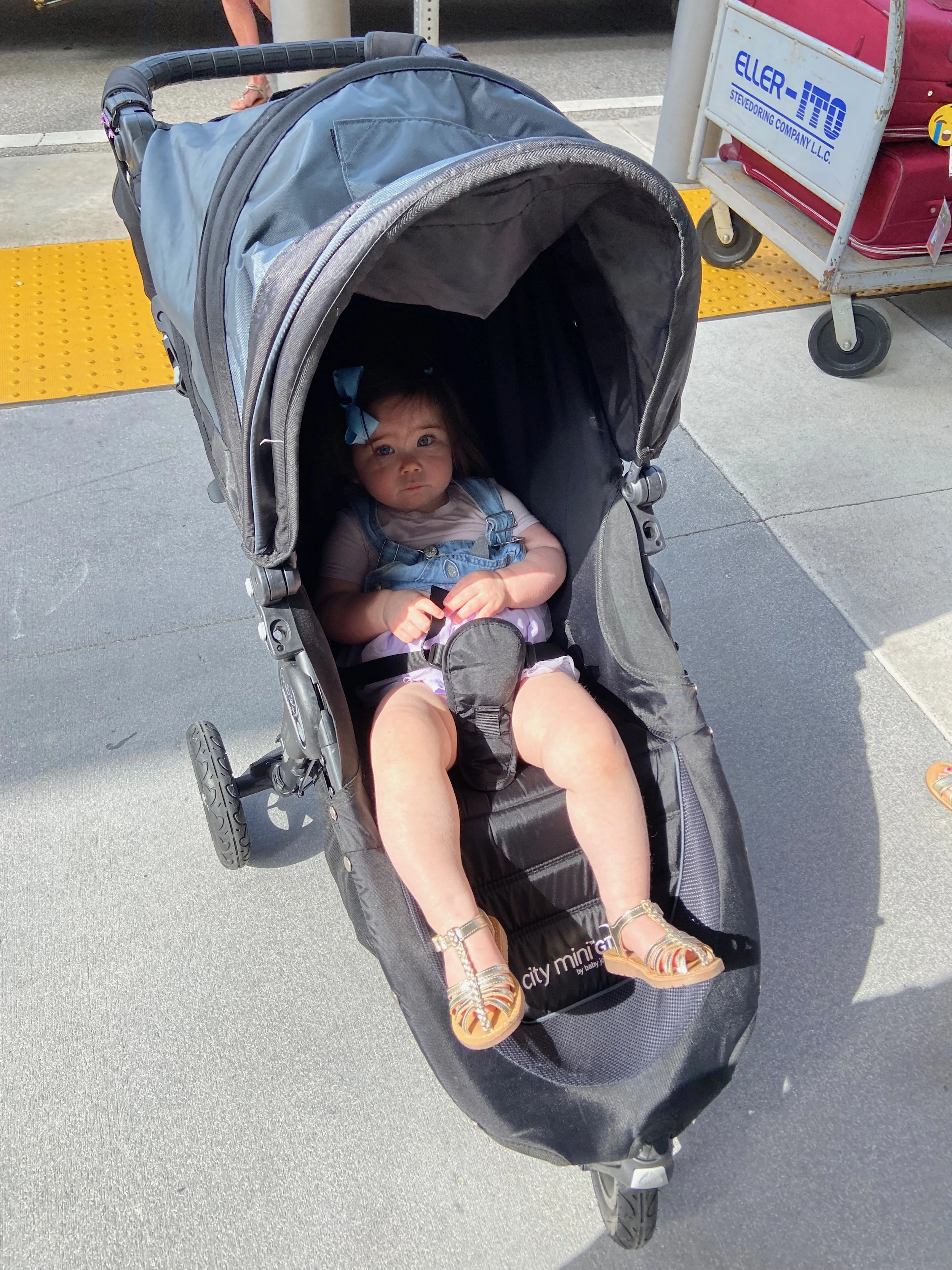 We wanted to get out of the hotel around 10, but I don’t think we left until 10:30. The Uber ride to Fort Lauderdale was about 40/45 minutes and we made it to Port Everglades in time for our 11 – 1130 check in window. Check in was extremely smooth. First, they checked the kids. Hallie got a green sticker that said VAX and Madeleine was upset she couldn’t have a sticker also. We all had to show our COVID results and vaccine cards and then went through security, check in, and another check in, walked over a long bridge, and finally, we were on the ship!
