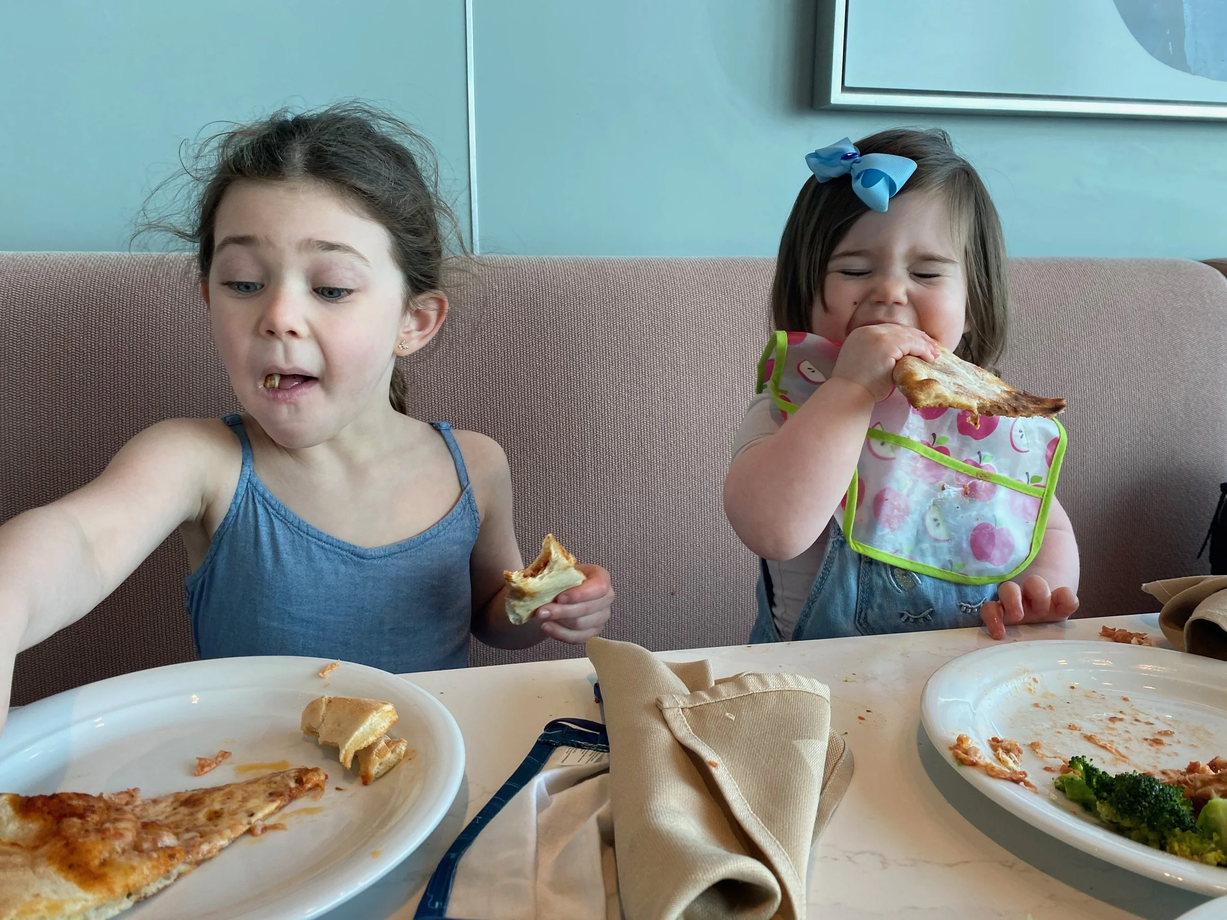 At some point, Hallie and Madeleine were excitedly jumping around the room. Then the phone rang and it was our neighbor asking us to keep it down and that he and his wife were “trying to relax.” I said, “yeah, well my kids have been locked up for the last year and a half because of Covid and now they’re just trying to enjoy themselves and have fun in their room so buzz off.” Actually I just said sorry and then hung up. These people actually had their “Deep Sleep” sign on their door by 6pm.