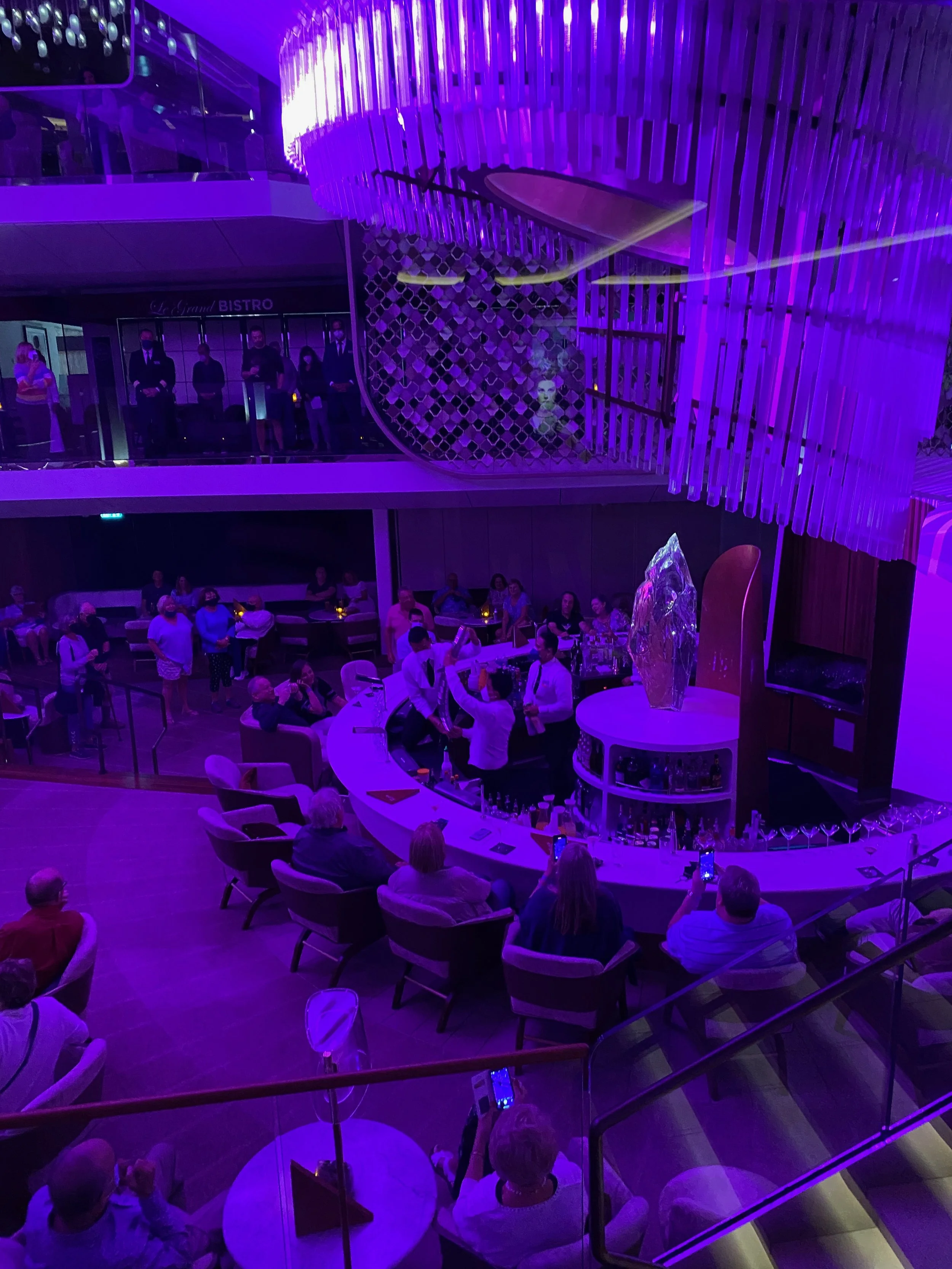Tzvi and I went to the bar at the very back of the ship, grabbed a cocktail, and watched the ship pull out of port. The cruise is officially underway! One thing to mention is that with Celebrity, basic drinks are included (you can get any cocktail up to $9, which is most drinks with non-premium alcohol).