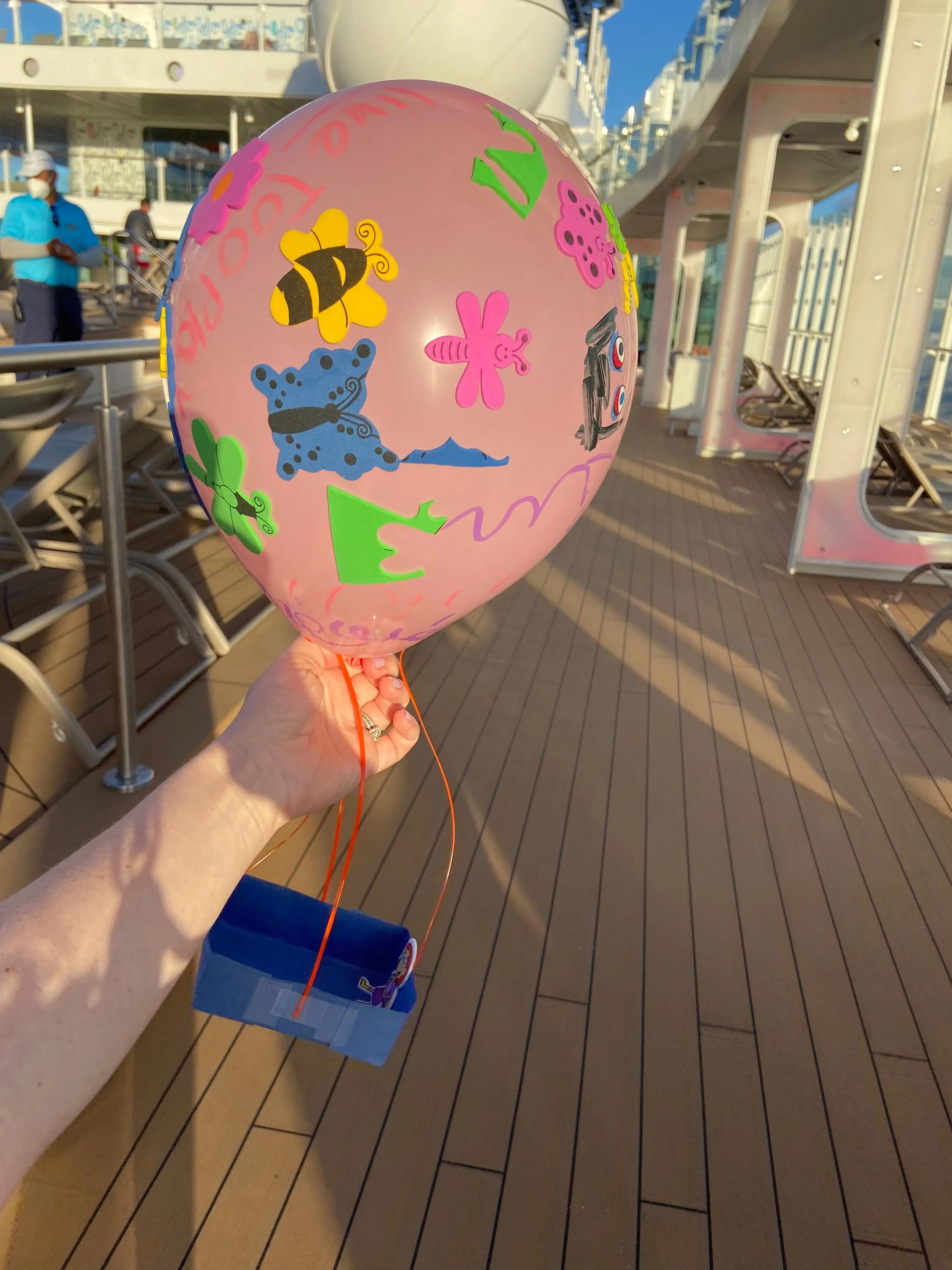 We spent the afternoon at the pool. Madeleine and I went to movie soundtrack trivia, but we were late so we didn’t get to actually play. Madeleine just jumped on all the furniture. Hallie went to camp where she made a hot air balloon.