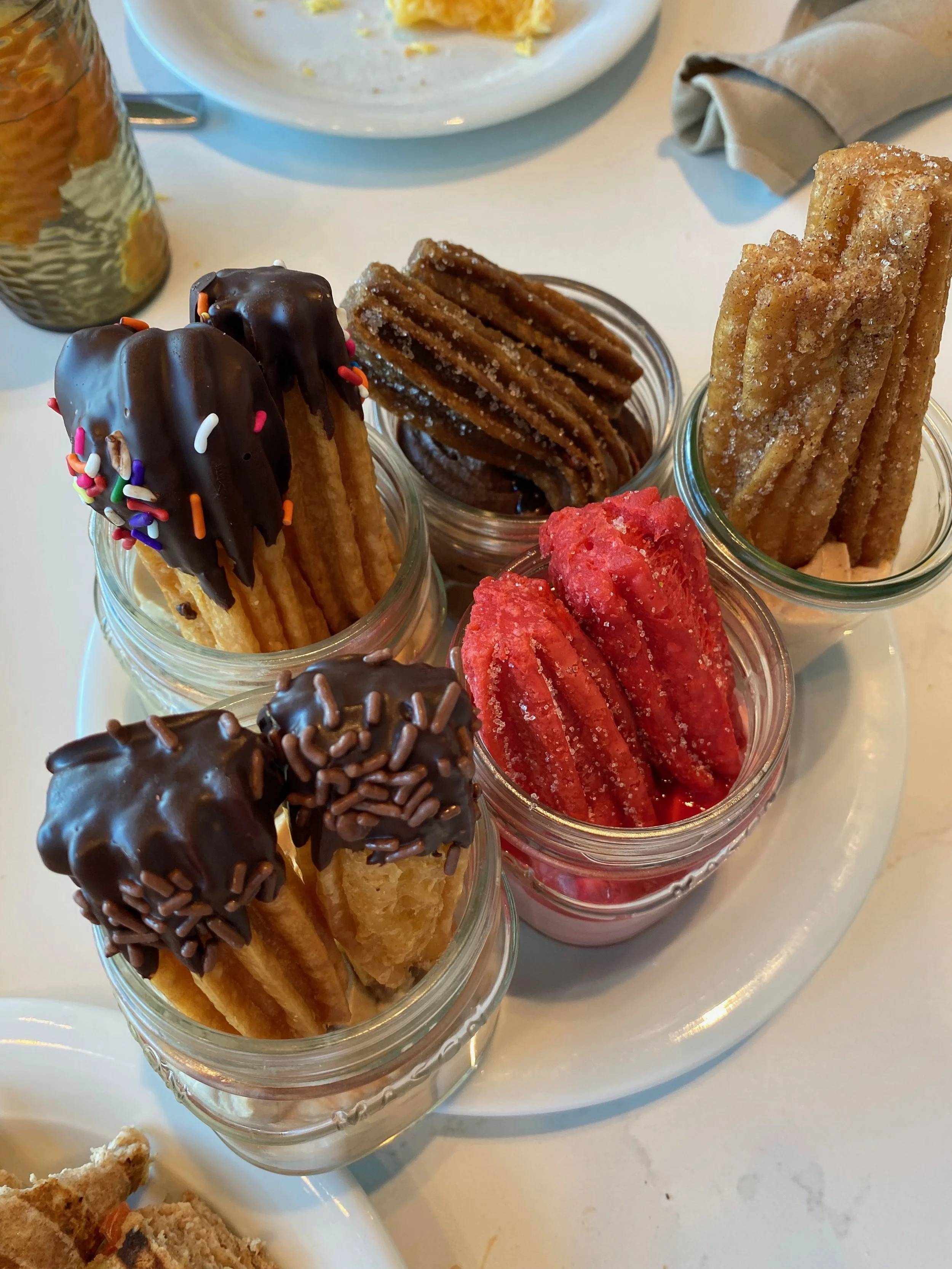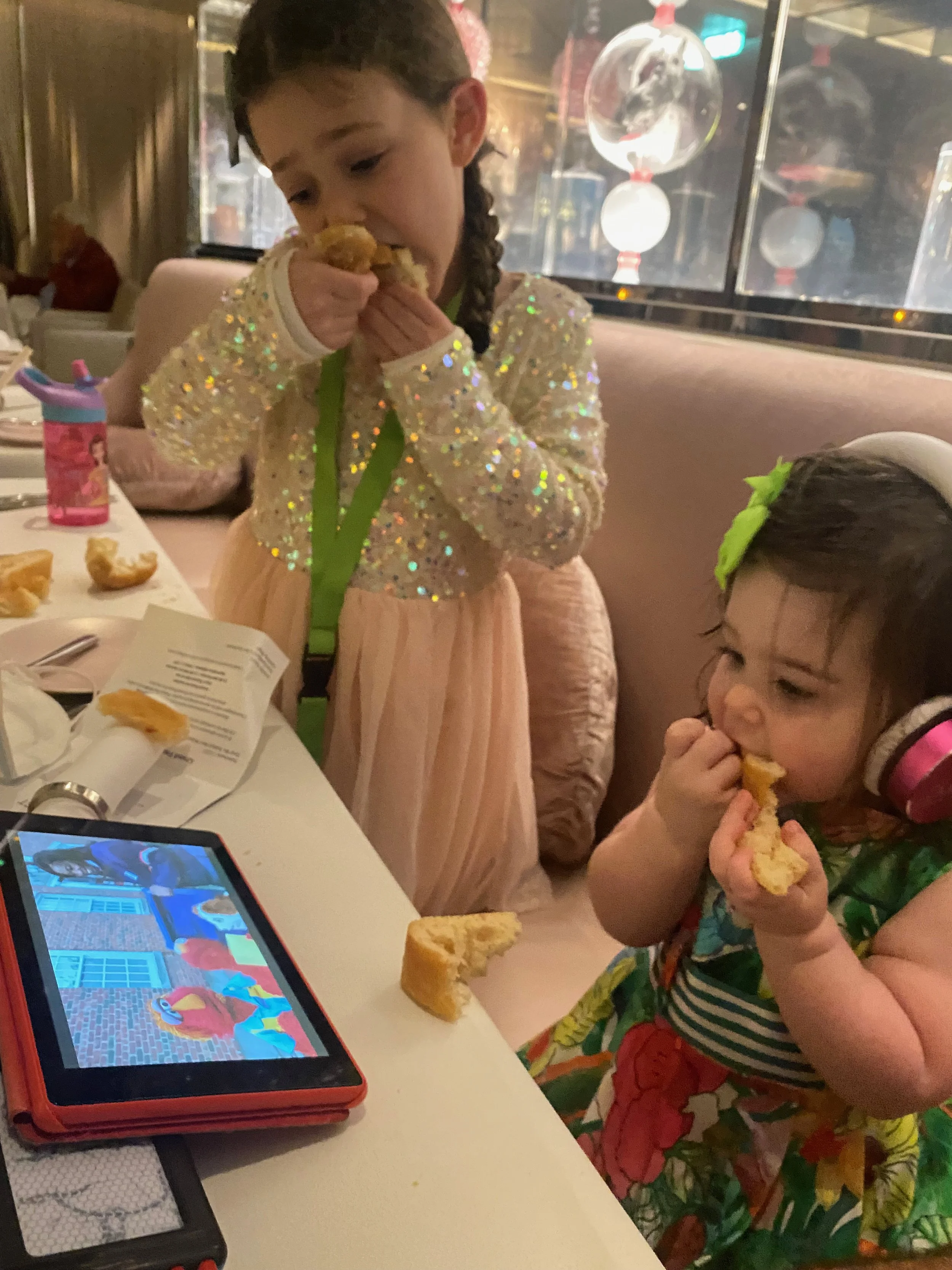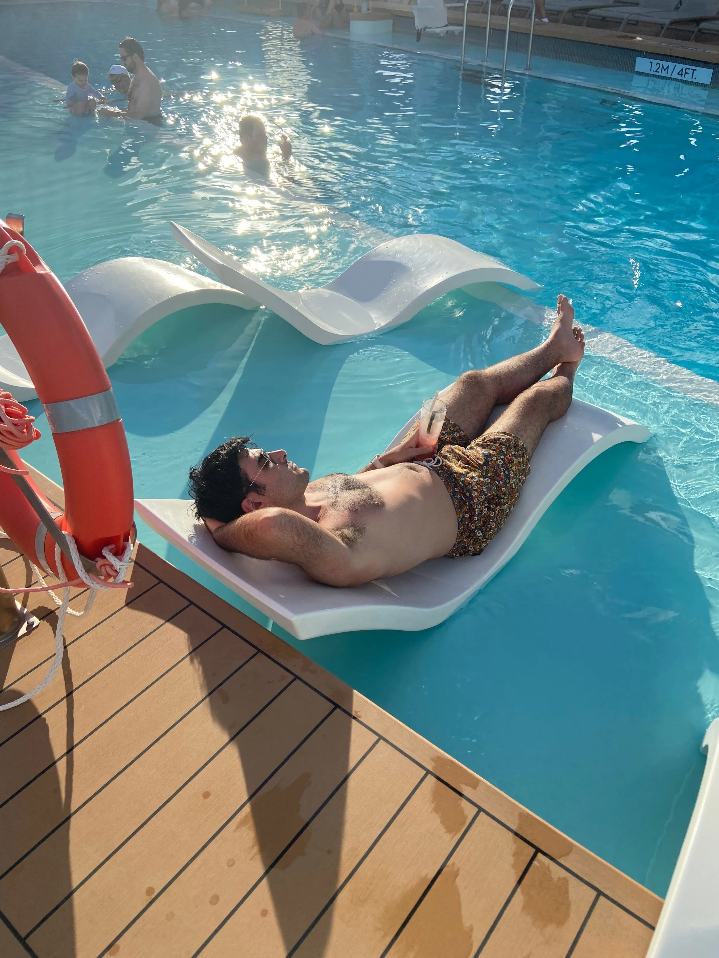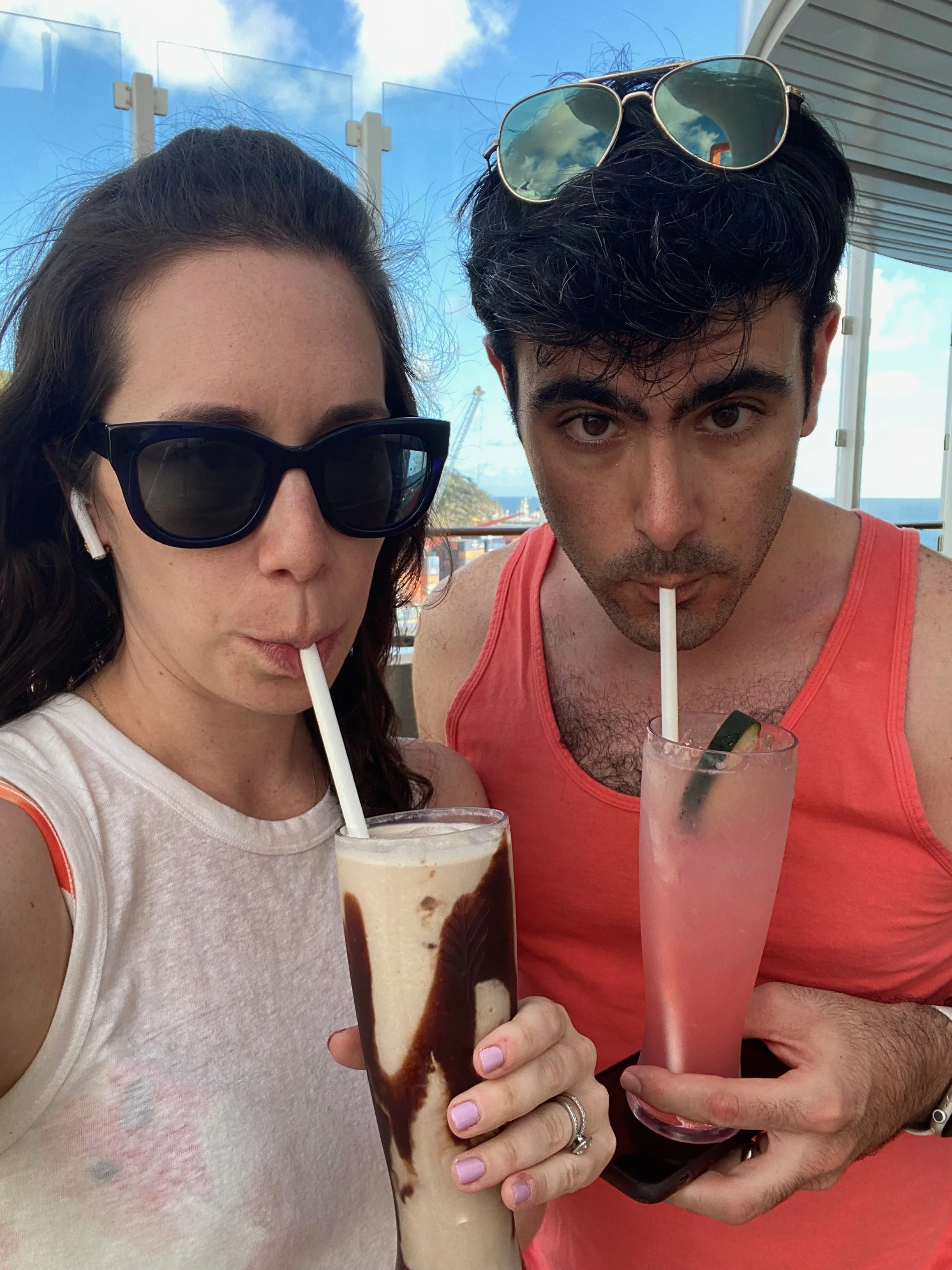 Back on board we ate lunch at the buffet. It was Mexican day and they had lots of different types of churros that came with different creams. There is an older Jewish couple that we’ve seen frequently around the ship. They’re clearly Borough Park chasidim – he has a beard and peyos tucked behind his ears, and at night we’ve seen her with tights and a sheitel. Except, during the day she’s also at the pool in a two piece bathing suit and a baseball cap. Anyway, today we saw them at the buffet eating mashed potatoes and carrying around two glasses of red wine, which is interesting because the sommeliers at the restaurant told us they only have kosher white wine on this ship. No judgement, obviously. [Tzvi: I think it’s interesting because who drinks red wine at 2 in the afternoon when it’s 80 degrees out?]