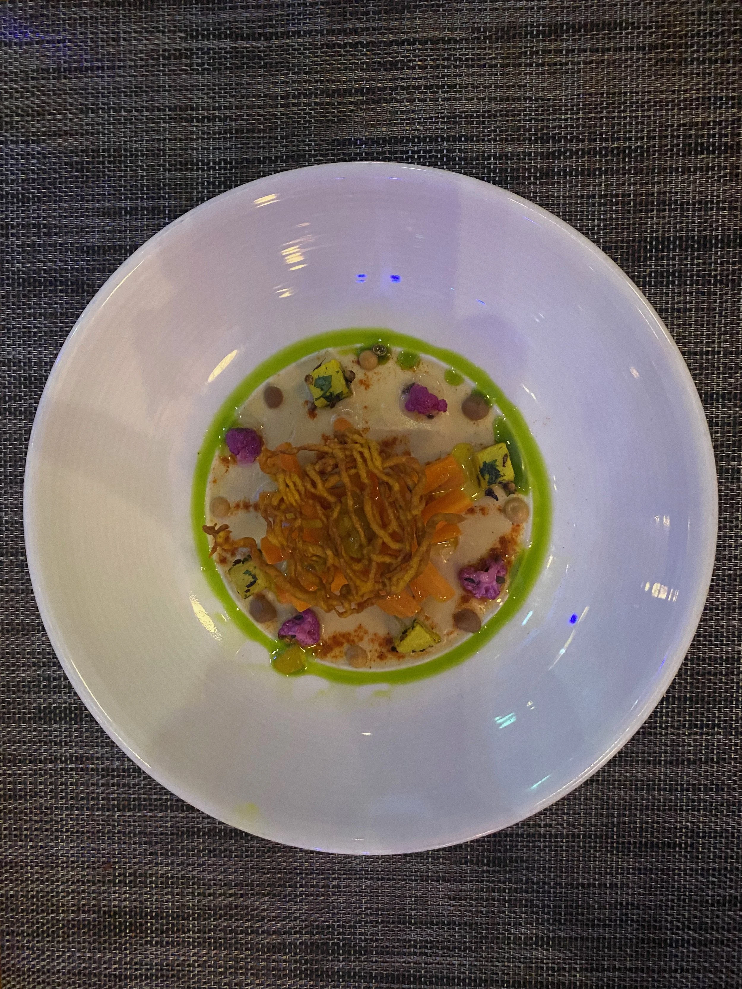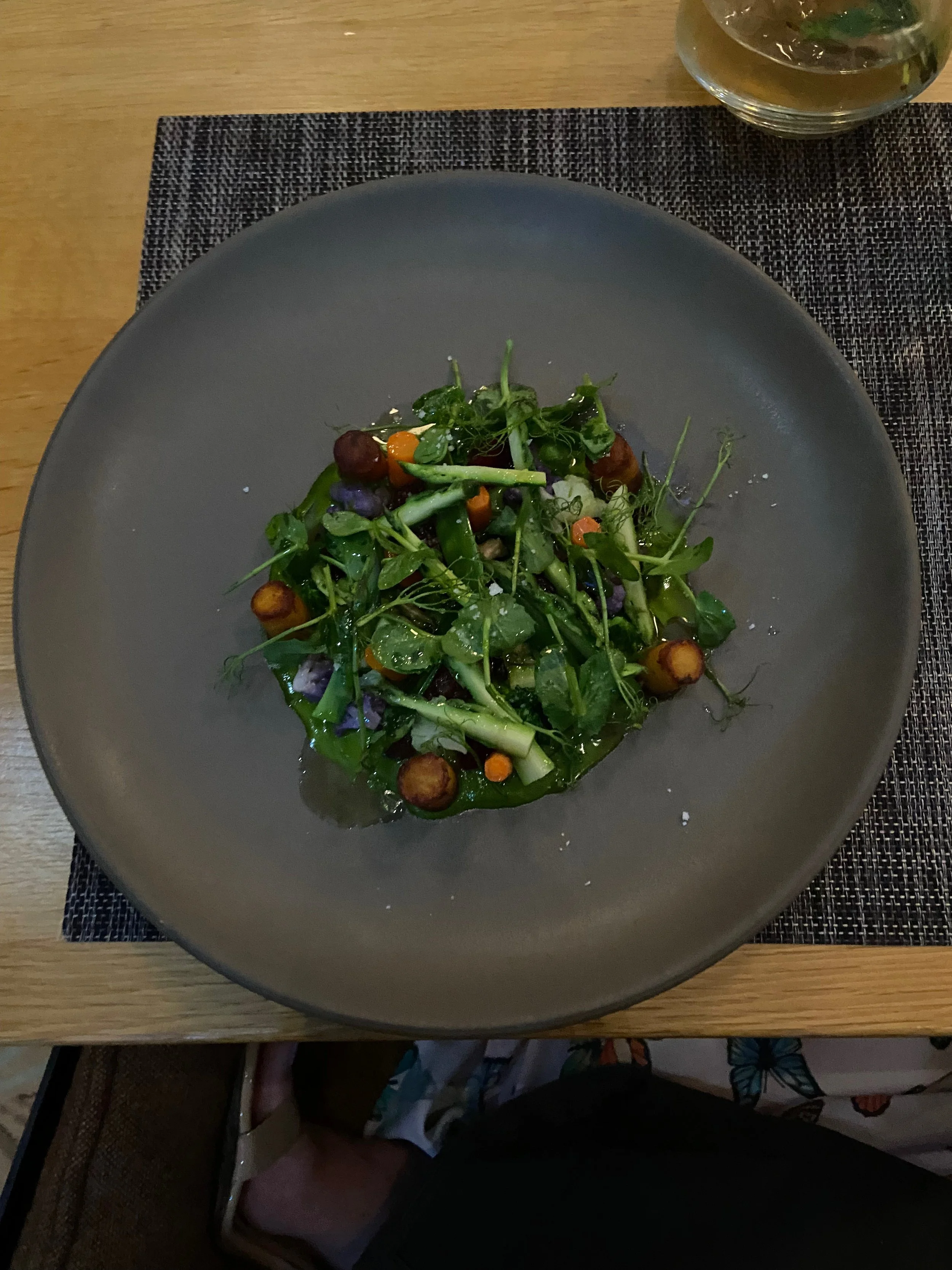 · Garden – season veggies, green asparagus, fondant potatoes, tarragon oil (Steph had this)