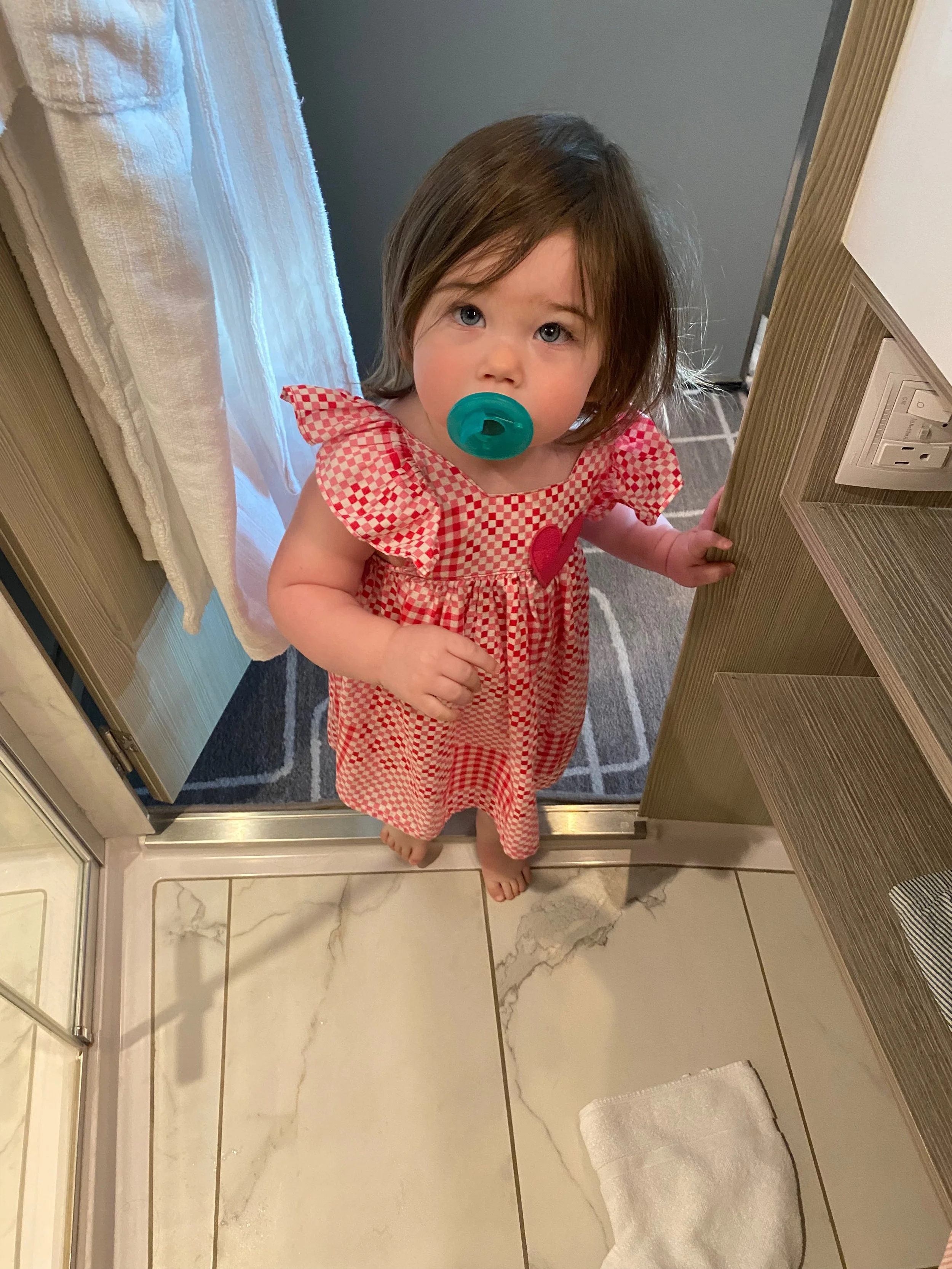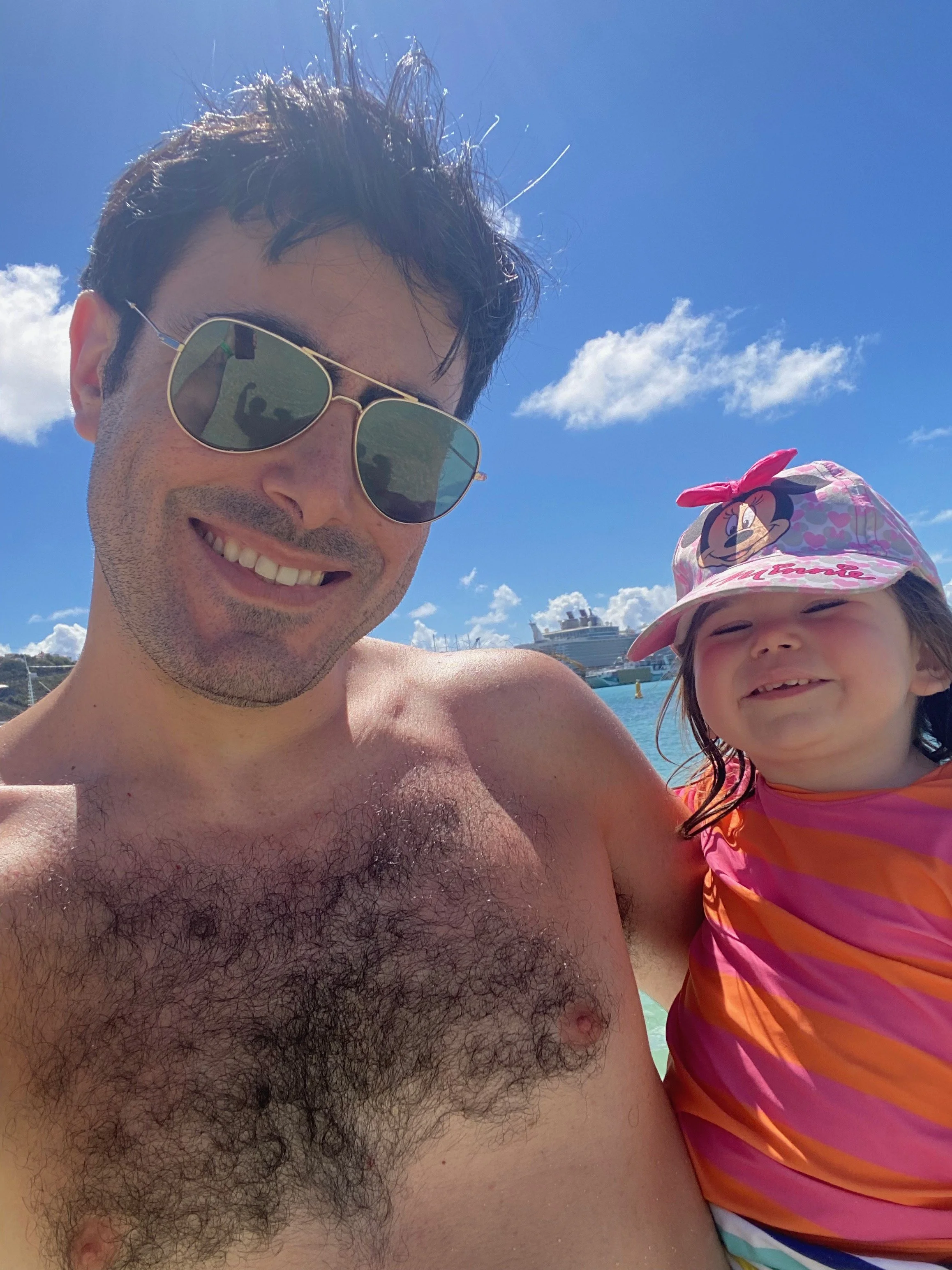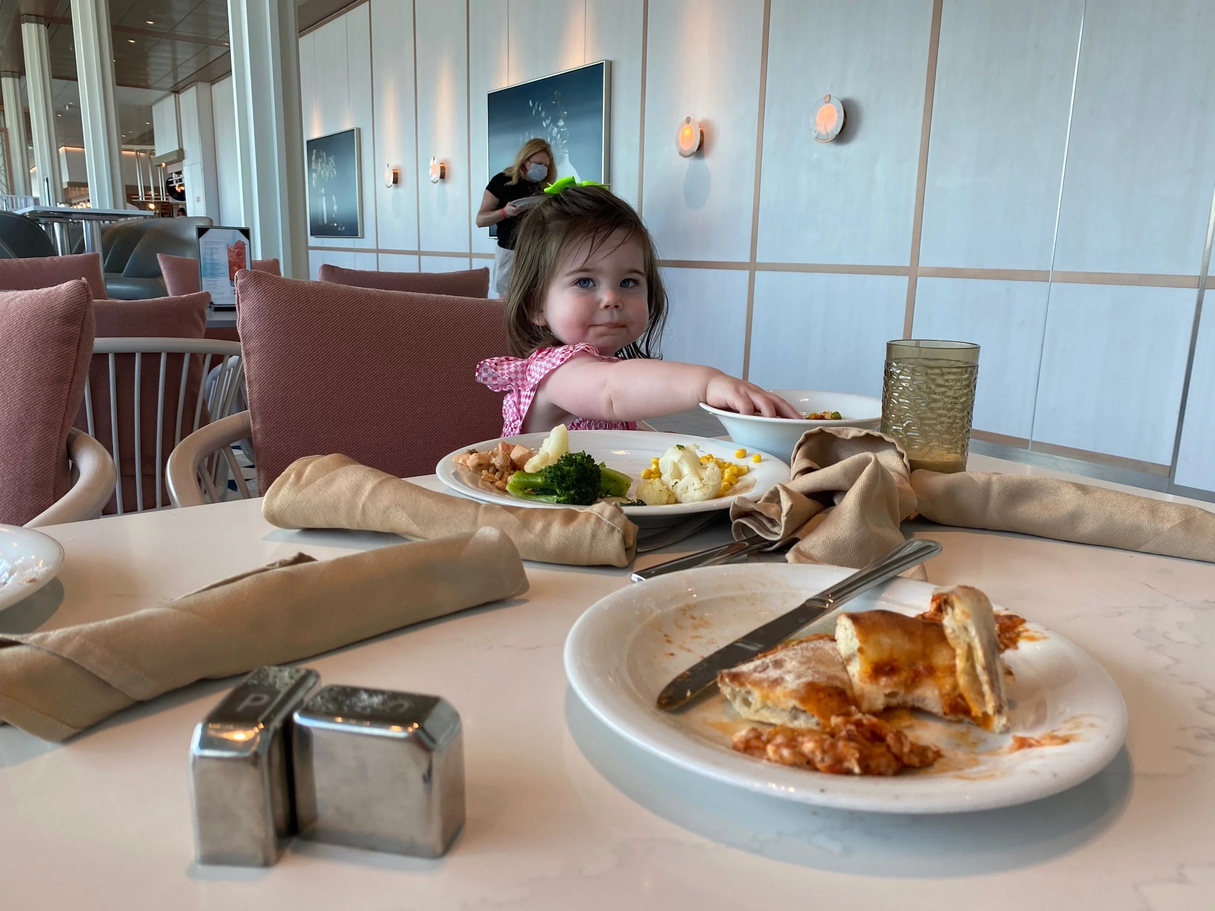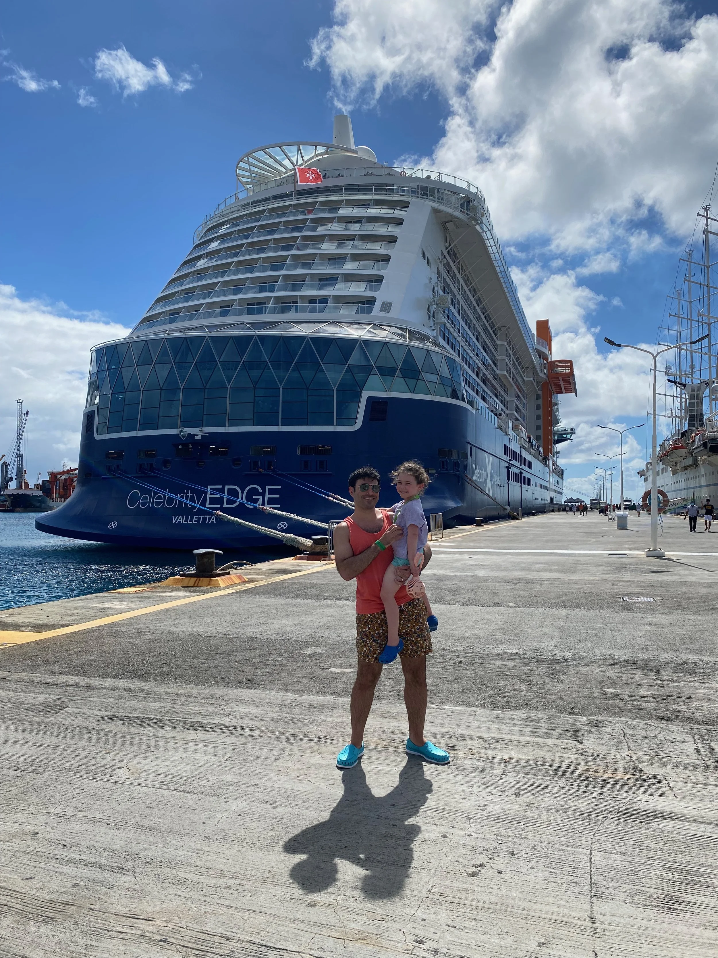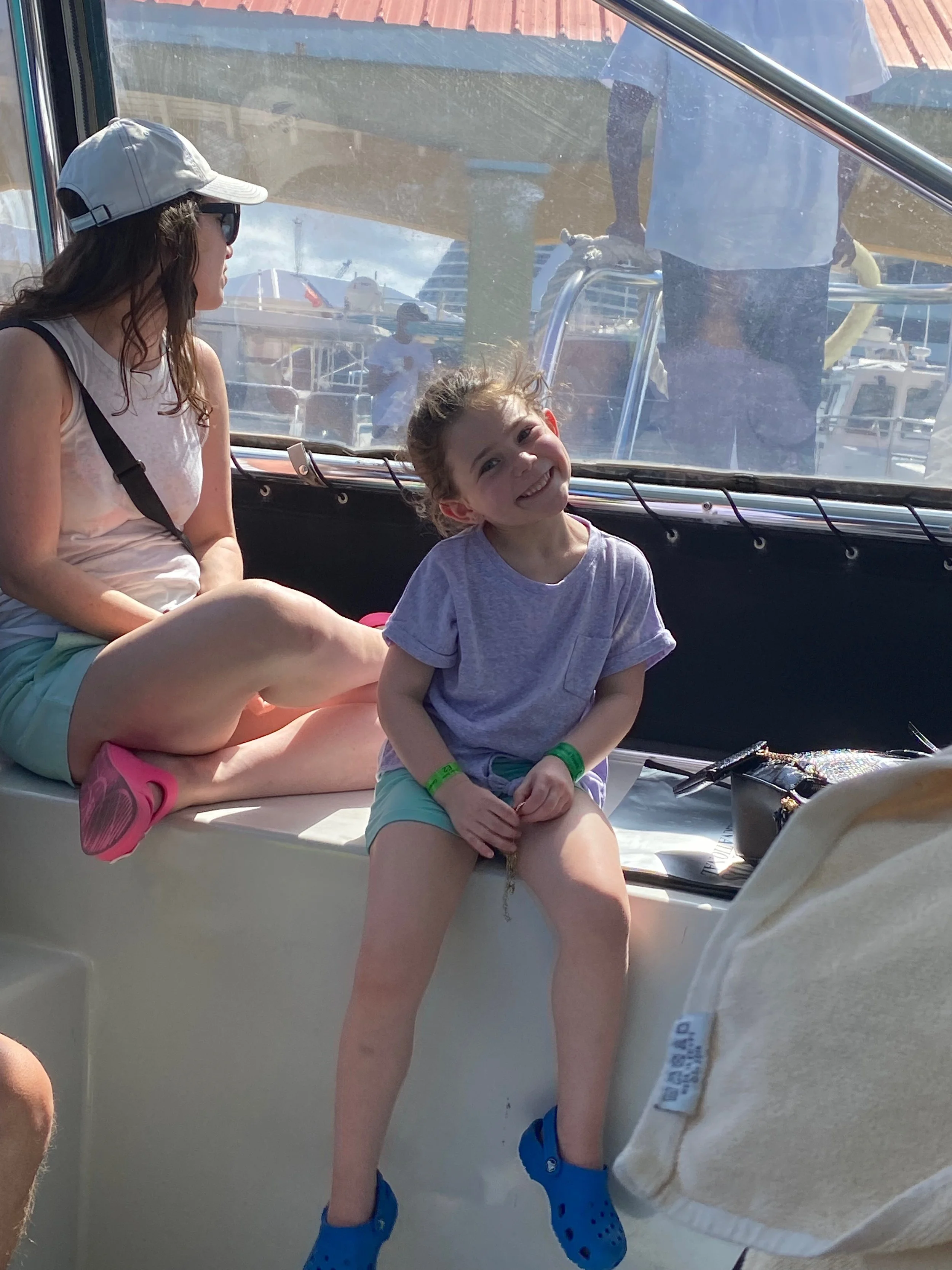The water taxi back was pretty much the same as the way there. They were blasting music, but somehow it didn’t wake Madeleine up, and she didn’t wake up until just before we got on the ship. Sadly as we went through security, they told us that you weren’t allowed to take the shells off the island and confiscated Hallie’s bag of shells. They said it was for “environmental reasons.” She was pretty sad and spent all day asking why. However, her spirits were lifted when she realized they didn’t confiscate the shells that were under the stroller. Tight security. Perhaps we brought back disease, who knows. The security officer was an Israeli named Eyal. He said that a lot of the Chief Security Officers on Celebrity ships are Israeli, and a bunch of the security officers are also. I think that’s the first time I’ve seen an Israeli working on a cruise ship. Once again Robyn had no interest in disclosing her nationality, as she avoids Israelis at all costs. I guess that’s like us and the religious Jews.