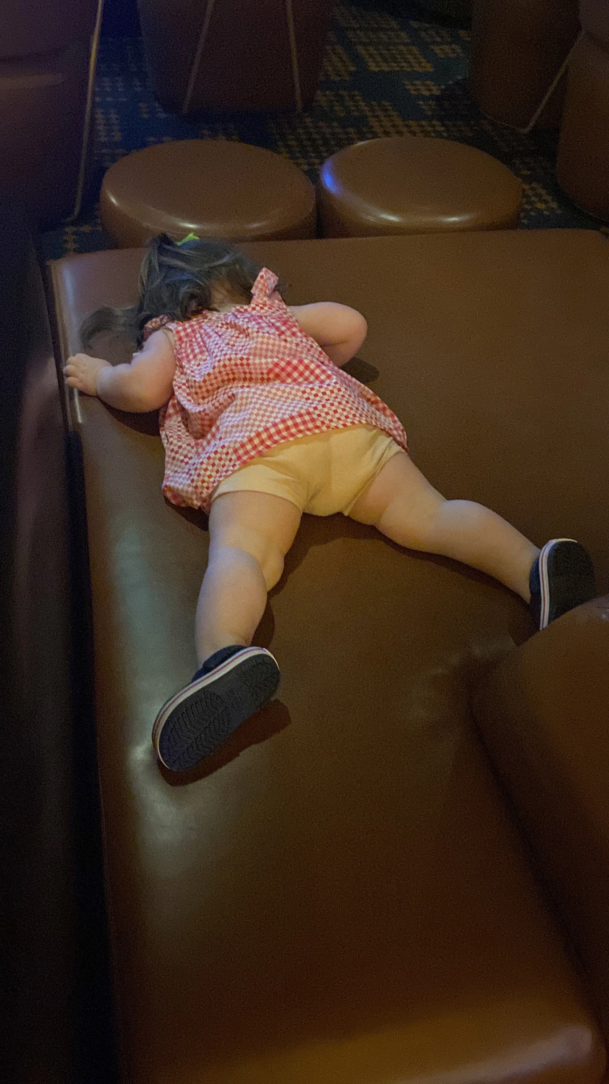 We sent Hallie to camp and Robyn walked around the ship with Madeleine, while Tzvi and I went to dinner at Eden. I’ll write about dinner in a minute, but first let me talk about Hallie’s camp experience. Tonight was spooky night. We didn’t really think about it before hand, but it probably wasn’t the best idea to send her. Apparently they were telling scary stories and Hallie got really scared and started crying and they tried to call our room but no one was there. Around 9pm, when Tzvi left our dinner (as planned) to pick her up and take her back to the room, she was a mess. He tried to tell her that the stories weren’t real and there are no monsters eating families who are camping in the mountains, but she just wouldn’t hear it and kept saying that the woman at the kids club told her it was real. Not great. Jen Bernstein also sent me photos of their family camping to show Hallie that camping isn’t scary. I also told Hallie that never will the Kaplan family actually go camping. Tzvi came back to dinner and then I had to go to Hallie and I think the waiter was getting annoyed because they didn’t know when to bring our food. Oy.