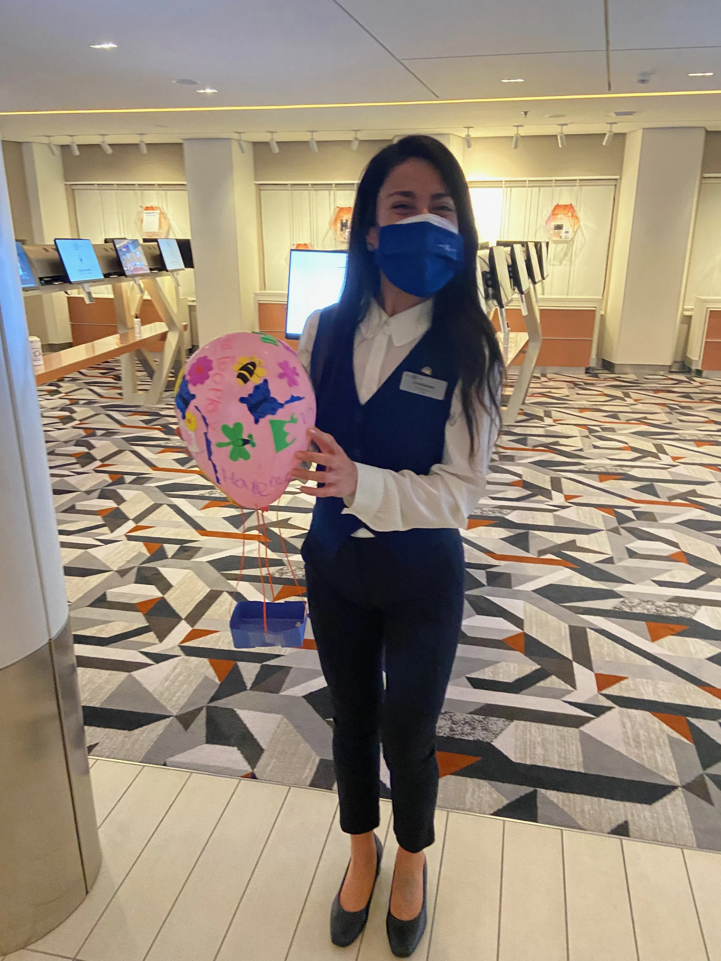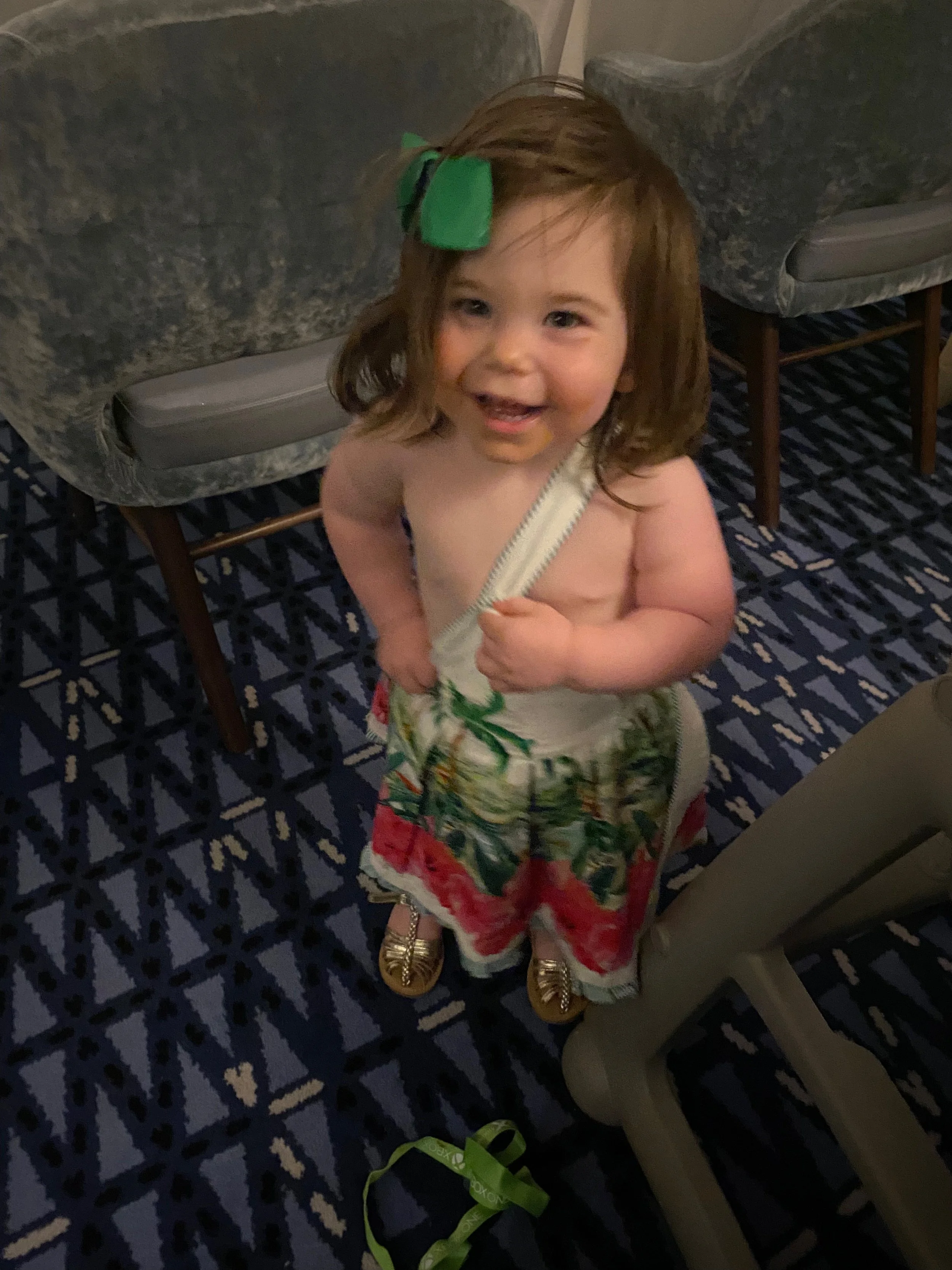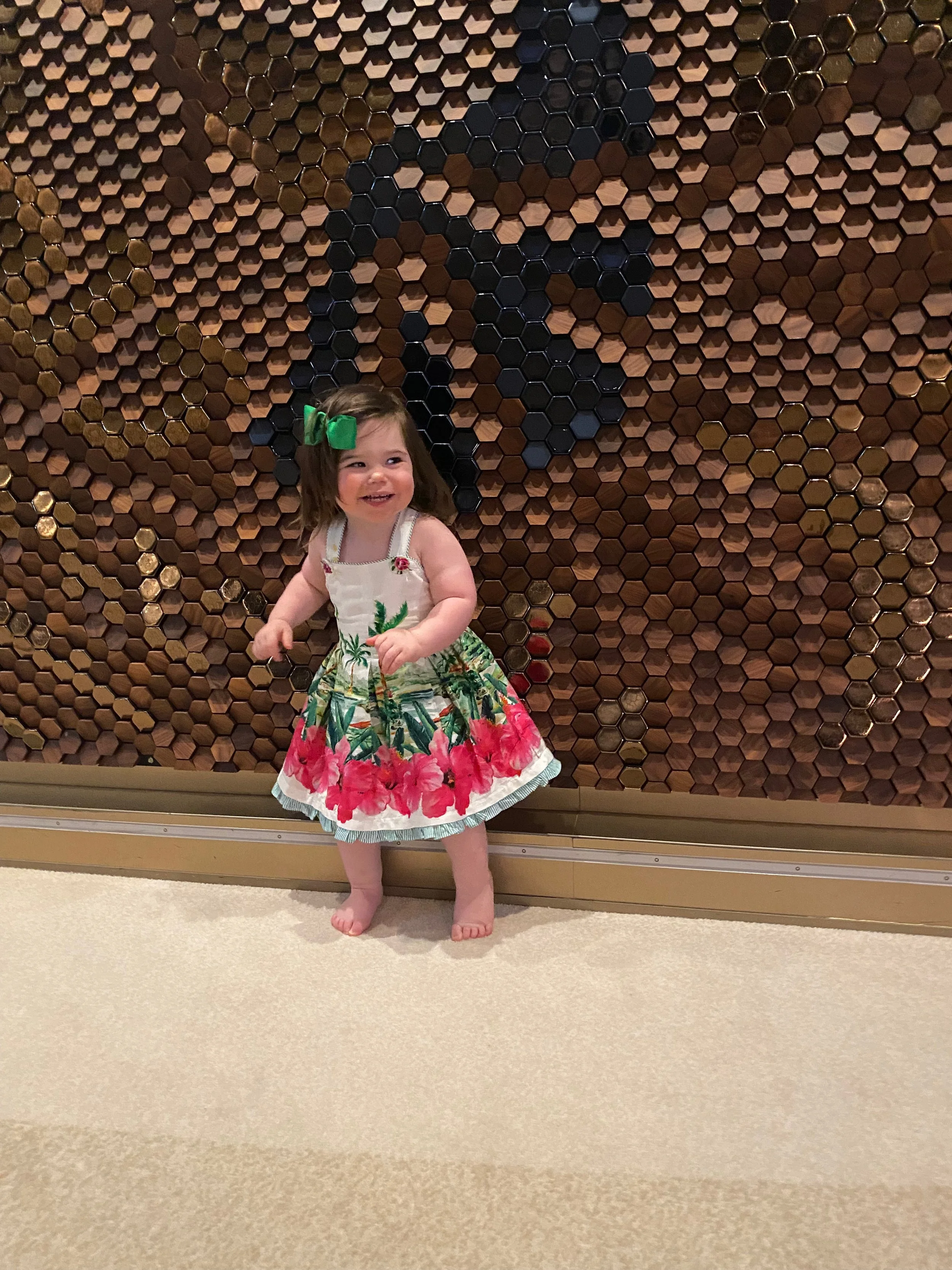 Hallie went to camp and we spent a little time in the Solarium before lunch at the buffet. After lunch Tzvi took Hallie while Madeleine napped and I was in the room packing. Always a sad activity. [Tzvi: Hallie and I first went to Café Al Baccio where we ordered hot chocolate and coffee. Then we sat near a window going through Hallie’s reading and then played war. We were sitting on deck 4, so we were pretty low and you could really see the waves crashing against the ship. After that we walked to Eden to look out the back of the ship. At Eden we found one of the entertainment staff sitting folding origami. It was just him and one other girl, but apparently it was an origami activity, so we sat and folded some origami. Hallie enjoyed.]