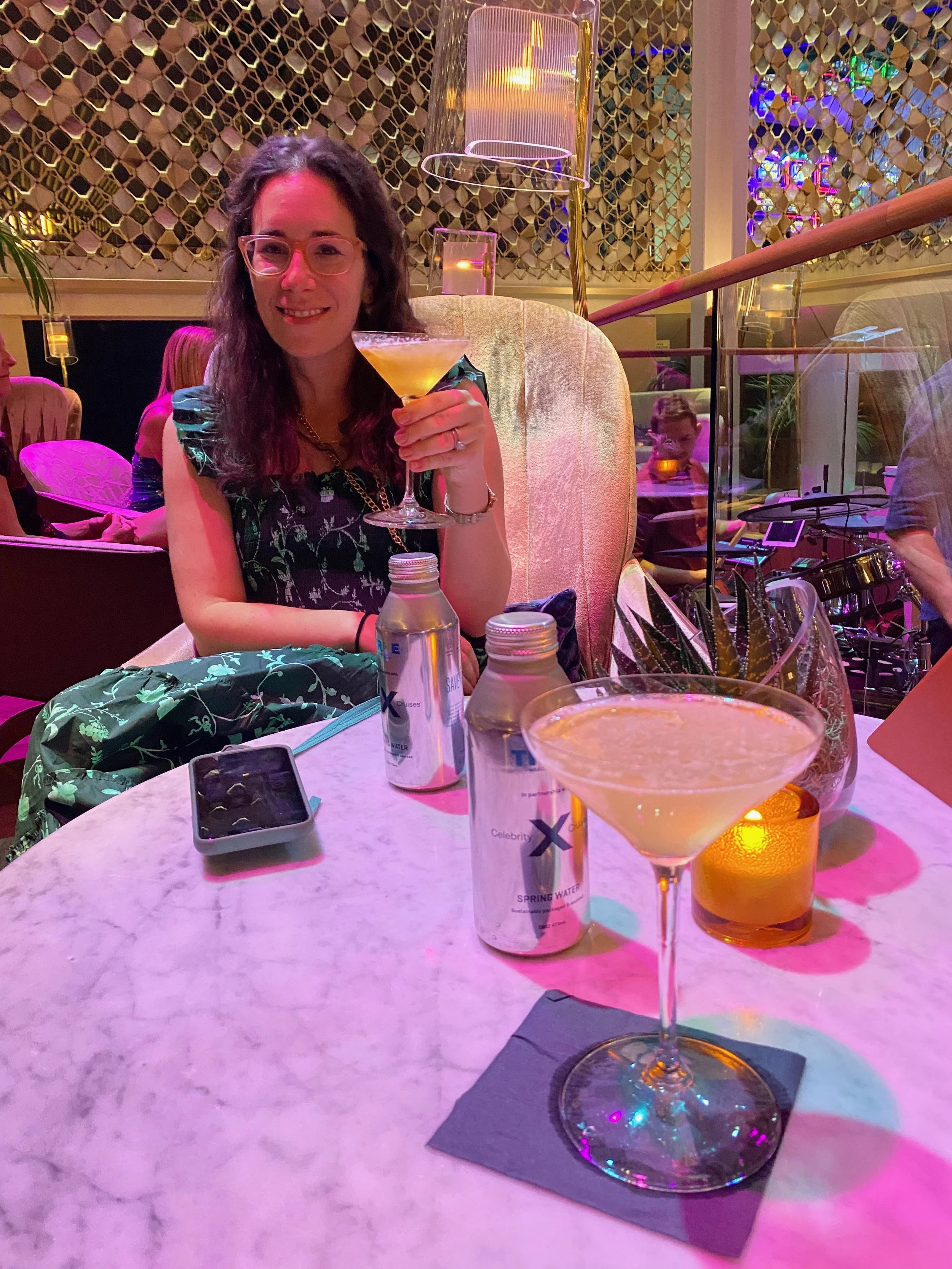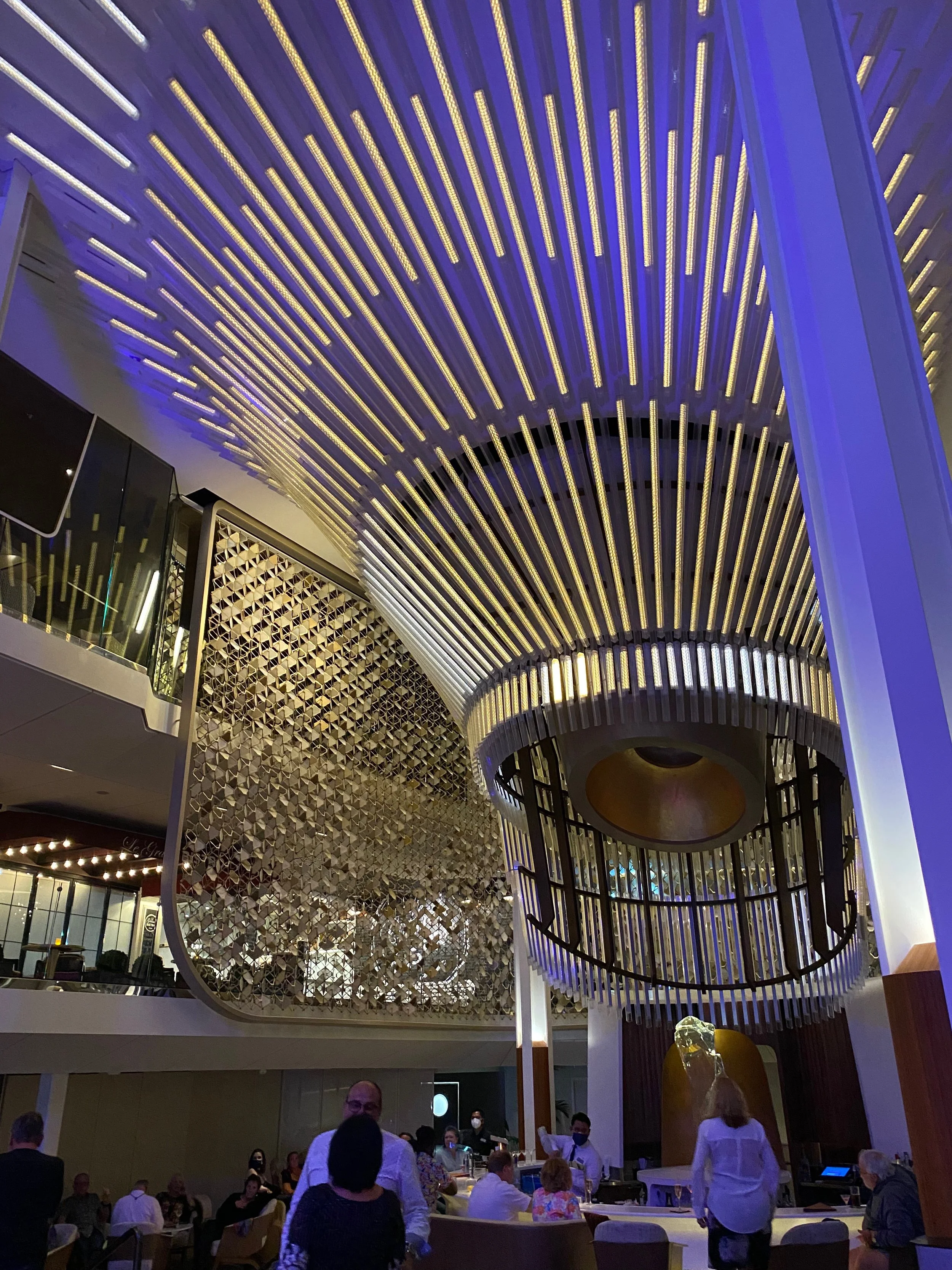 We went to the Martini Bar, which is really just the big atrium, and ordered Martinis. Up a flight I could see some of the singers and dancers, including one who was the main character in the show last night. I went up to him and told him that my 5 year old was very concerned about him and wanted to know why he was so sad during the whole show. I think he really enjoyed that. He ended up saying that he was so sad because his world was just in black and white, and by the end of the show it was in color. But he also said he agrees and doesn’t know why he has to be so sad throughout the entire show.