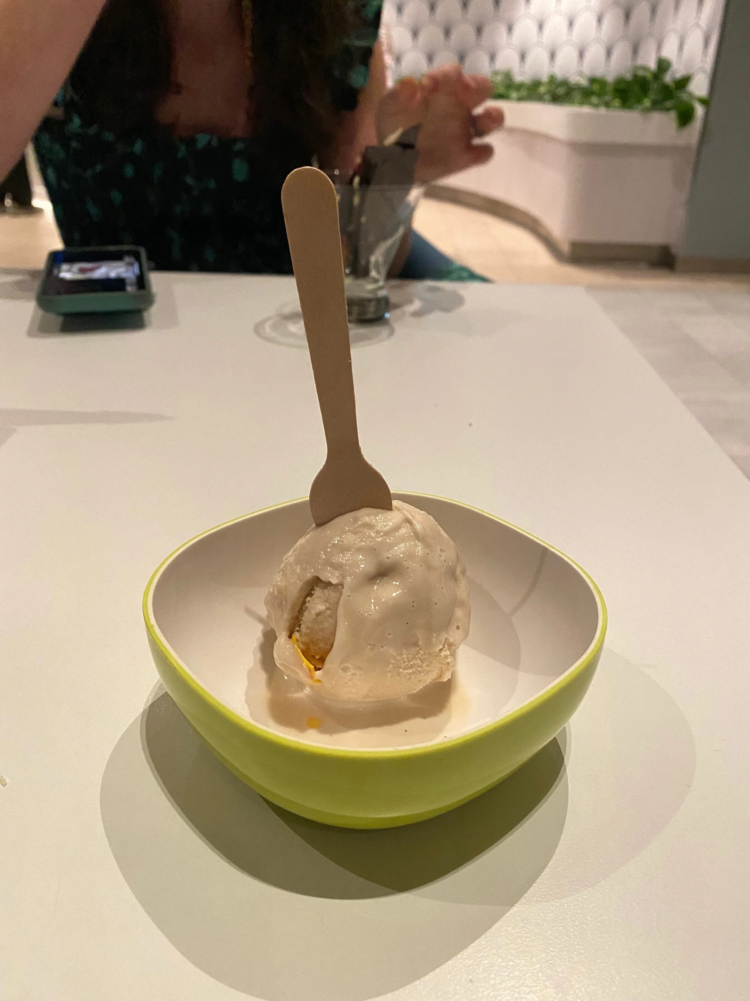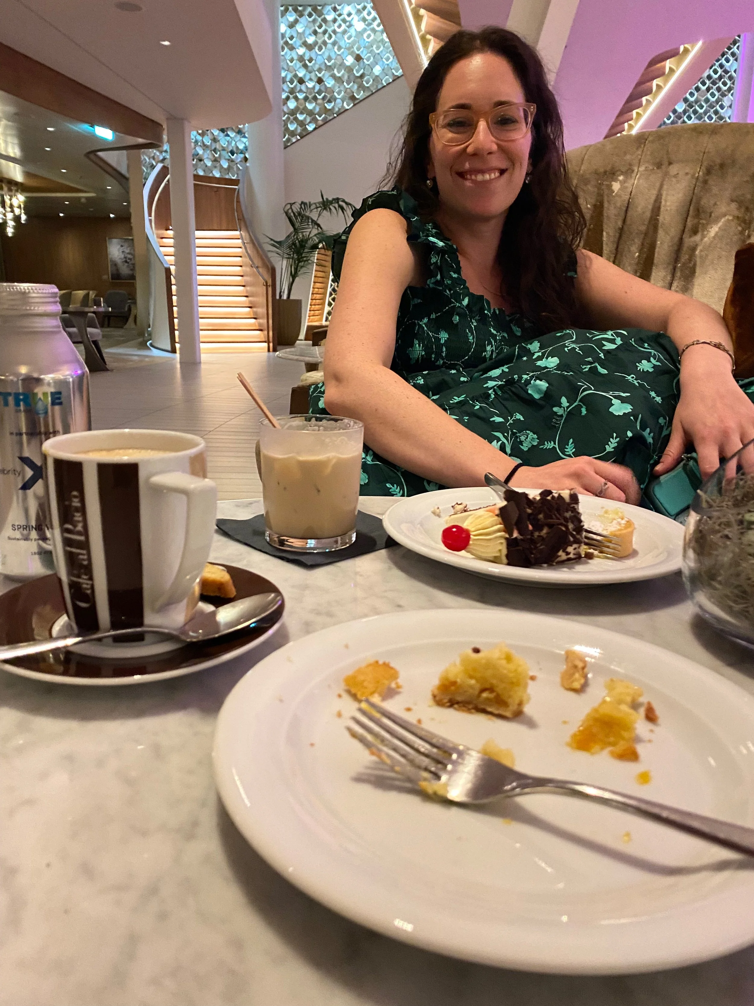 Then we walked around trying to find certain servers we wanted to tip. Then we went to the buffet to get a free scoop of gelato that I was entitled to with my status. We got coffee. It wasn’t great.