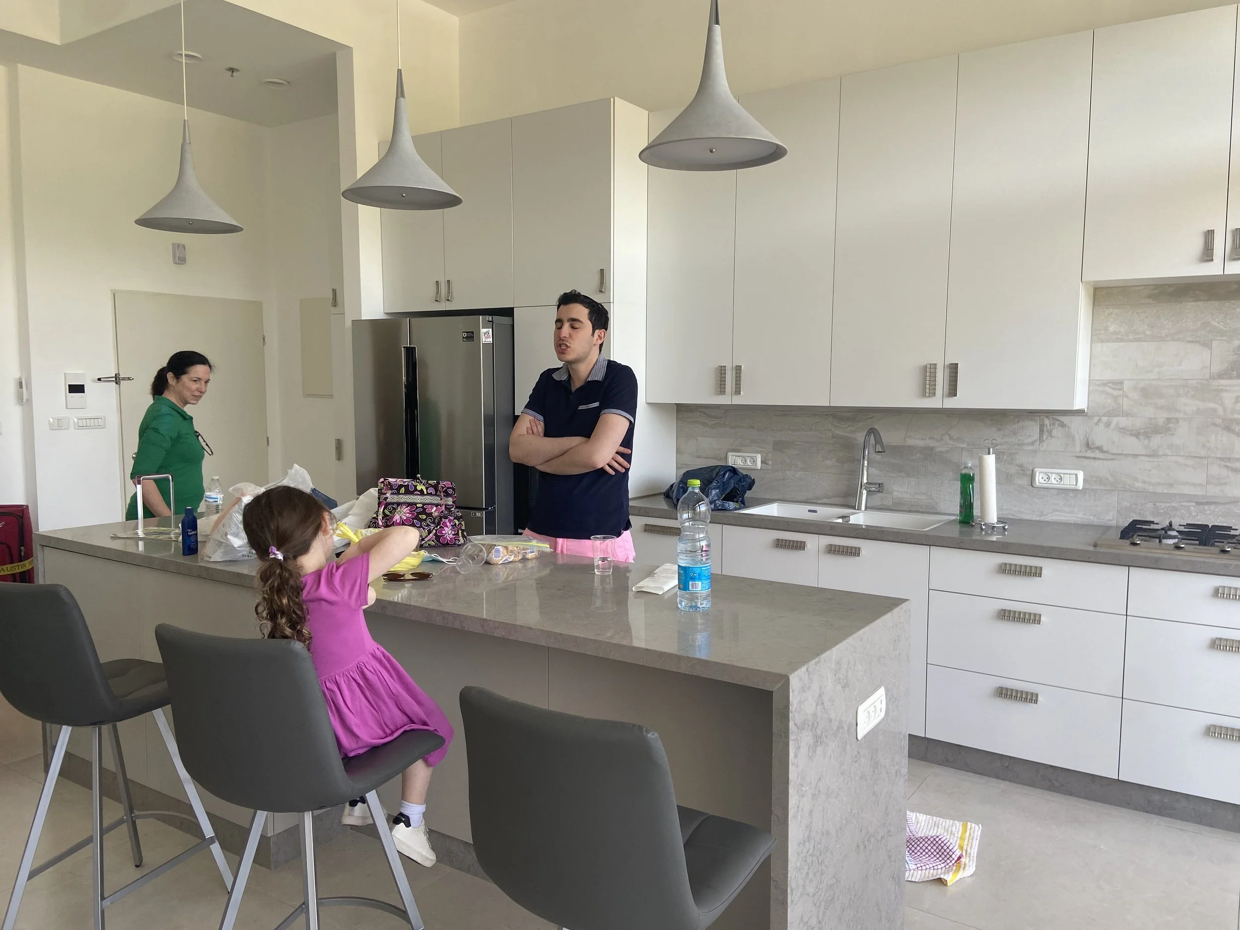 The apartment is beautifully set up. The ovens are tiny, so I guess Thanksgiving in Israel is out. We hung out there for a little. All of the furniture looks very nice, but it seems my mother has taken her quest to fill the world with uncomfortable couches to the Israel. Eventually we took a cab with Avery and Gabriella back to the hotel. We are really learning a lot of Hebrew here. Gabriella asked how to say “trunk” in here. Tzvi immediately answered “mepalpelet,” which apparently means “pepper,” but everyone believed him.