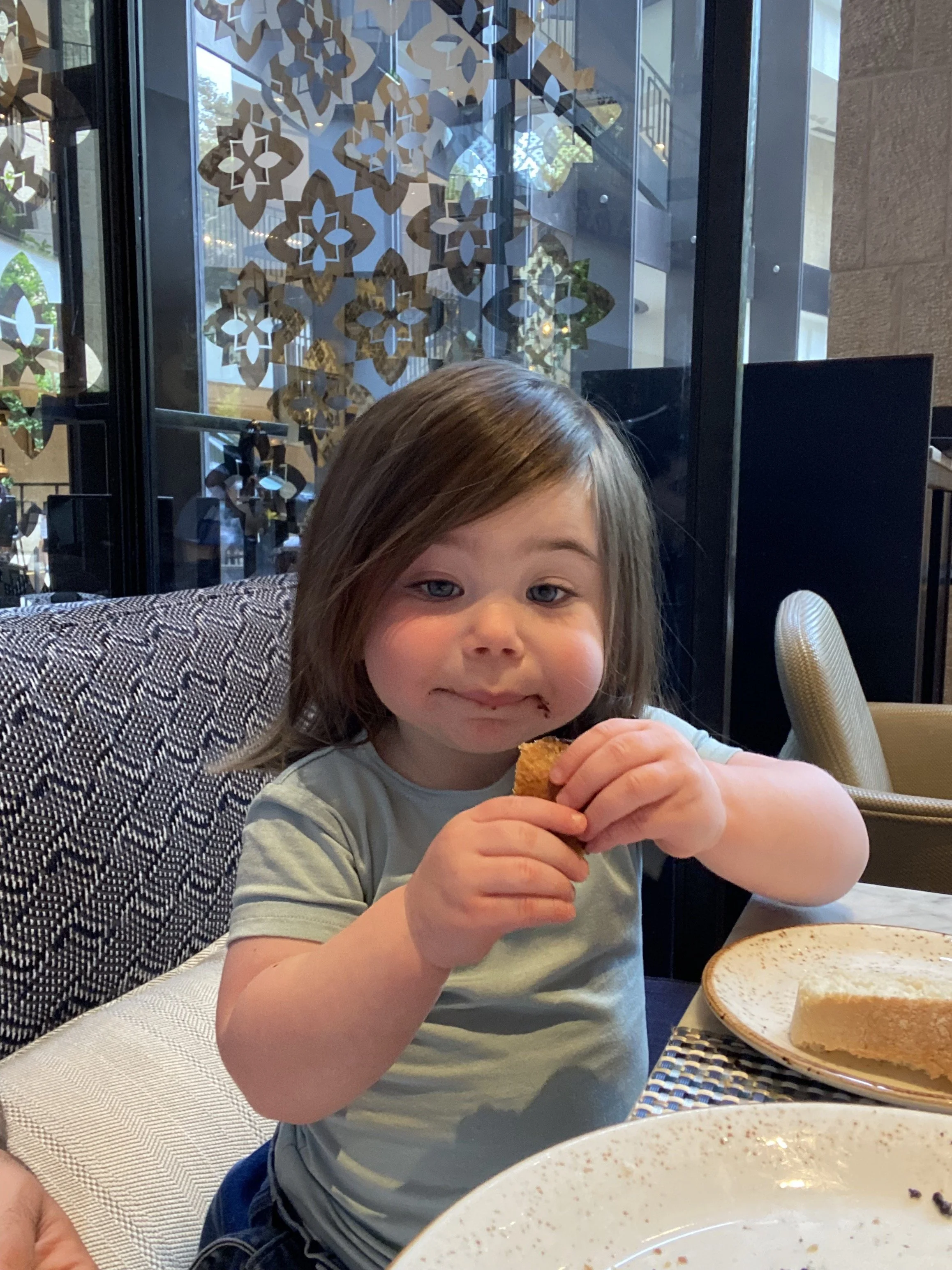 It was already past lunch time and we needed to feed the kids so I ordered schnitzel and fries from the rooftop restaurant, but it took forever. Grant was also there having his last meal before getting on the 5pm flight home. Once the food did come Hallie decided she didn’t want any but Madeleine ate the whole thing; she was probably so hungry from swimming so much.