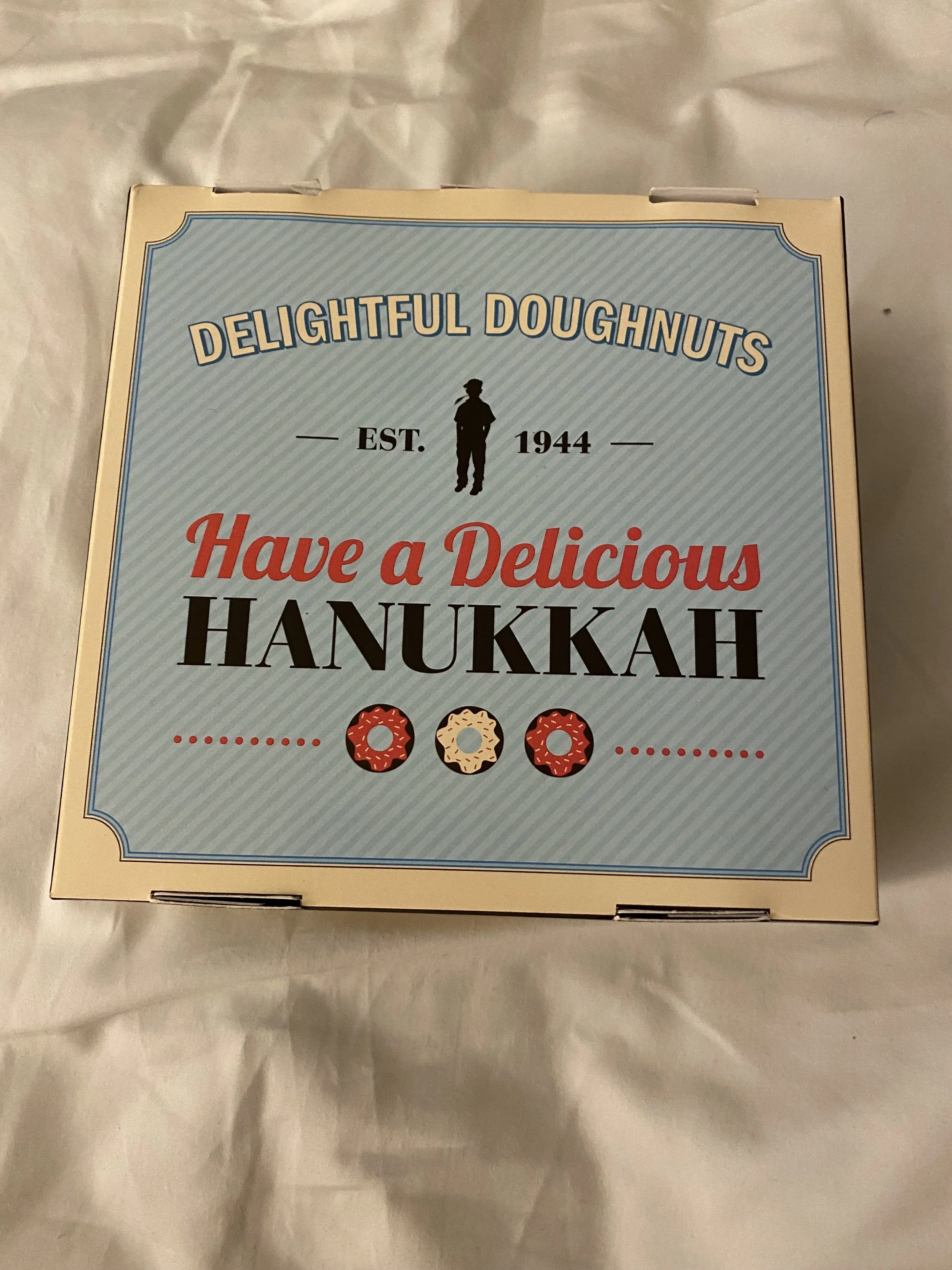 We made a final stop at Ne’eman where we bought more pastries and a giant donut that looked amazing and for some reason was still being sold in a box that said Have a Delicious Hanukkah. Maybe we waited to long to eat it – by the time we did (later that night) it was kind of dried out.