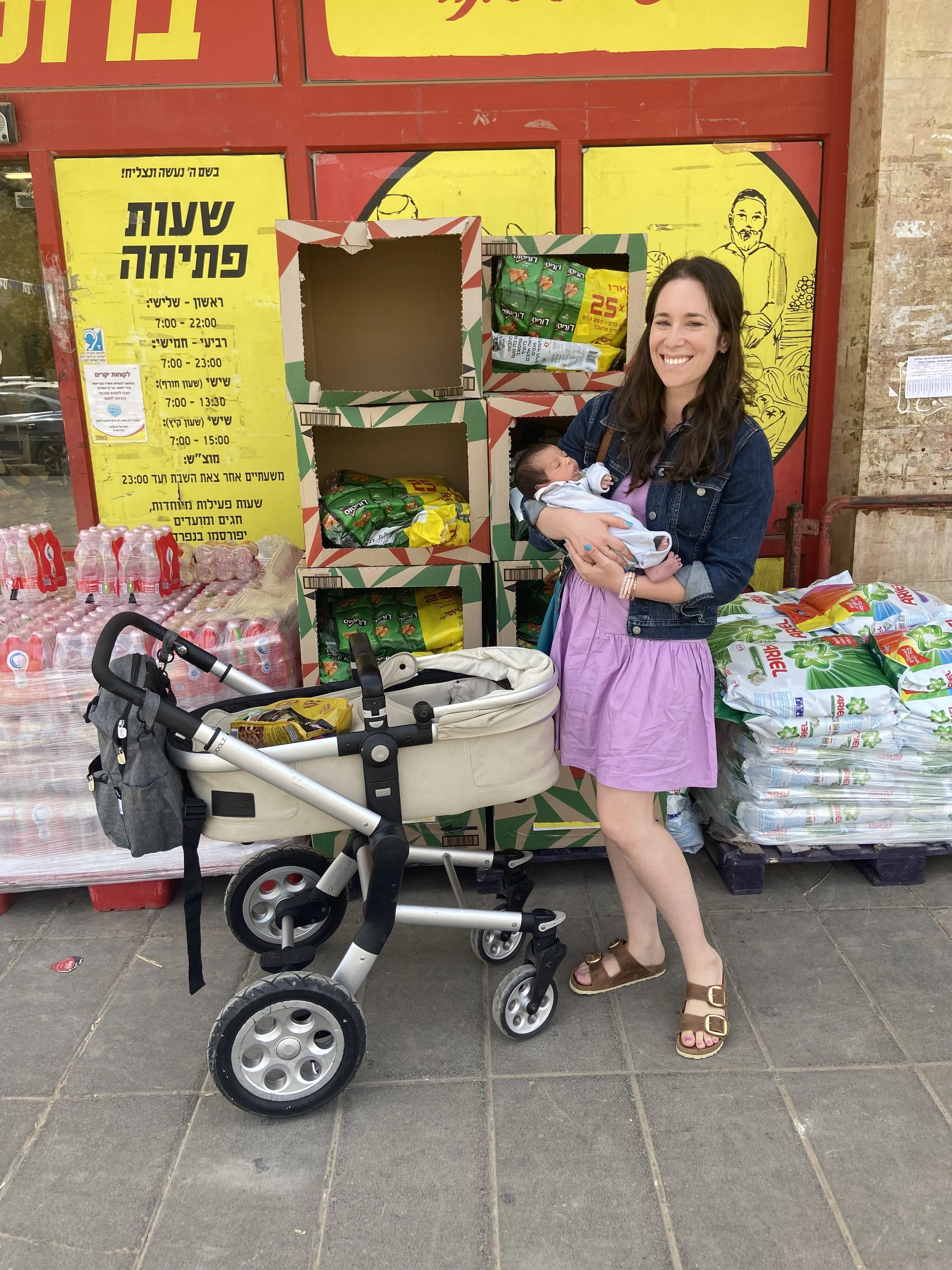 Anyway, I was supposed to meet Lisa Shapiro and Michelle Zomberg, who are now Tzipora Leah and Mindel, except Mindel got sick, so I ended up just meeting Tzipora Leah. I took a cab to somewhere in Ramat Eshkol where there were some cafes and a grocery store and a bank. We were going to sit down at a café, but I told her I was happy to just go with her to run errands since I didn’t need another coffee and she was out with her 3 week old and probably had things she needed to get done. So she took me to the bank and to the grocery store. She just had her 7th kid (yes, she’s my age). It was so funny talking to her because she’s still the same as she was in middle school, but also totally different. It was so interesting to hear about her life and what it’s like here. She told me a little bit about how they live and her husband’s life in kolel. I held her 3 week old, which gave me more anxiety than baby fever, so that’s good. It was just so nice to see her and it really felt like so much time had passed but no time has passed. We only communicate by email because she has a kosher phone so she can’t text or whatsapp. I was like, ‘how do you talk to people? I spend my whole day texting.’ She said she calls people and speaks to them. What a novel concept. It was sad I couldn’t see Mindel, but she has Whatsapp so we’ve been talking a bit. There is a photo of me and Tzipora Leah, but I don’t have it because she took it on her digital camera and hasn’t been able to send it yet. I do have a picture with her baby though.
