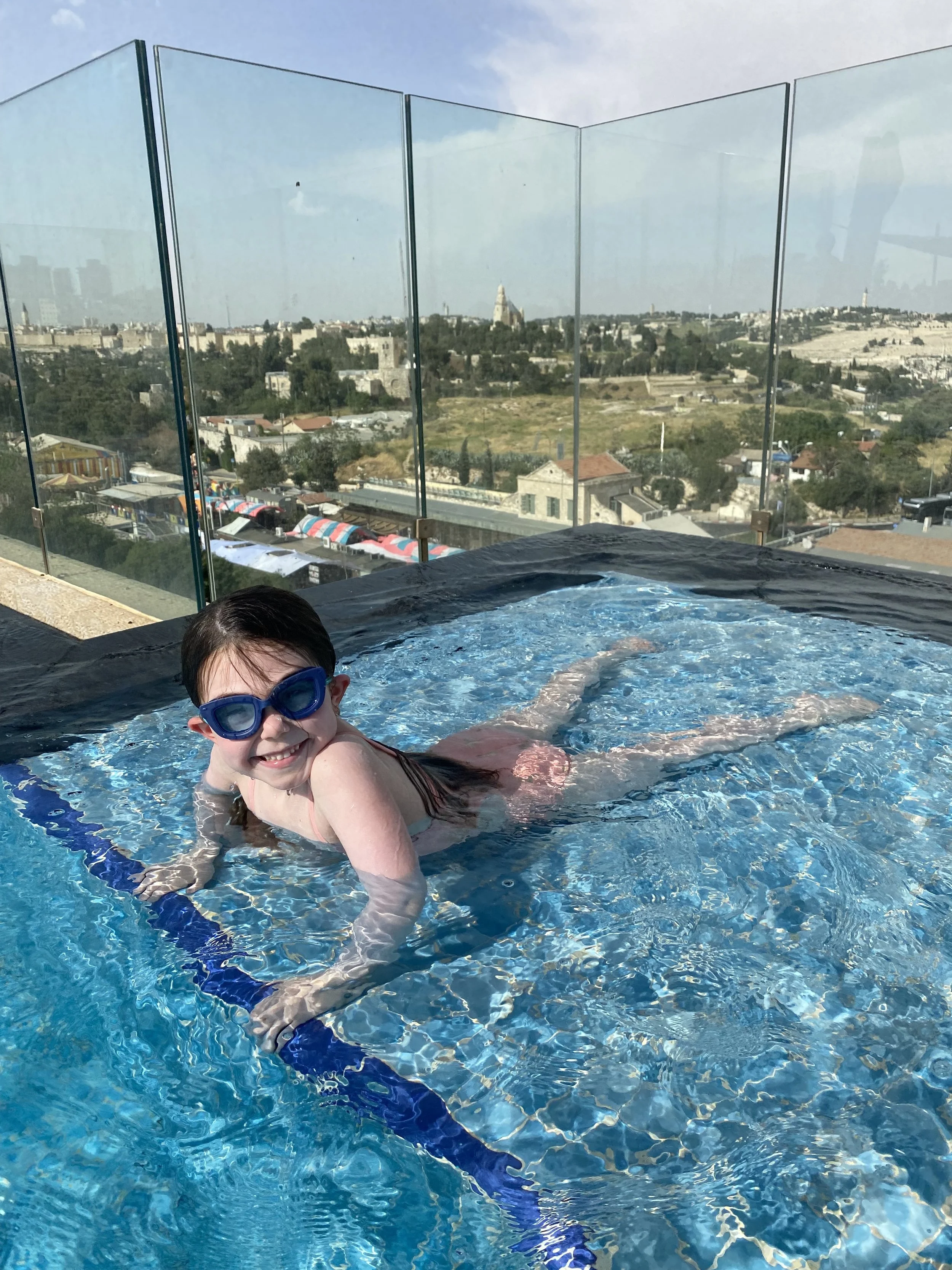 We felt pretty ready to go so we went up to the pool and got in a last swim. Madeleine had so much fun in her floaties again. It was a little cool but really nice.