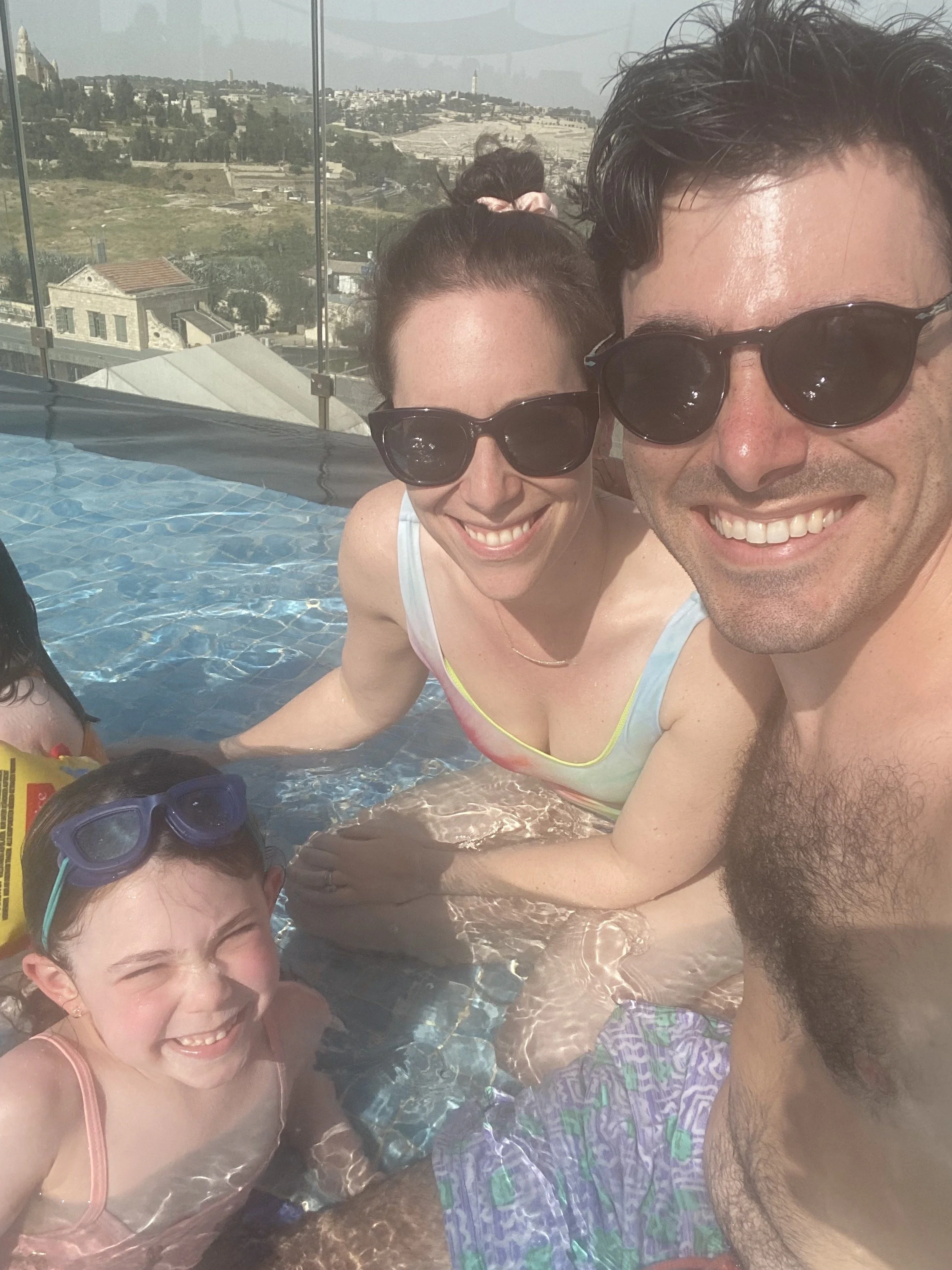 We walked until we got to the I Heart Jerusalem sign. Unfortunately Madeleine slept through it, but we got a nice photos with Hallie. Then Madeleine woke up and we took a cab back to the hotel.