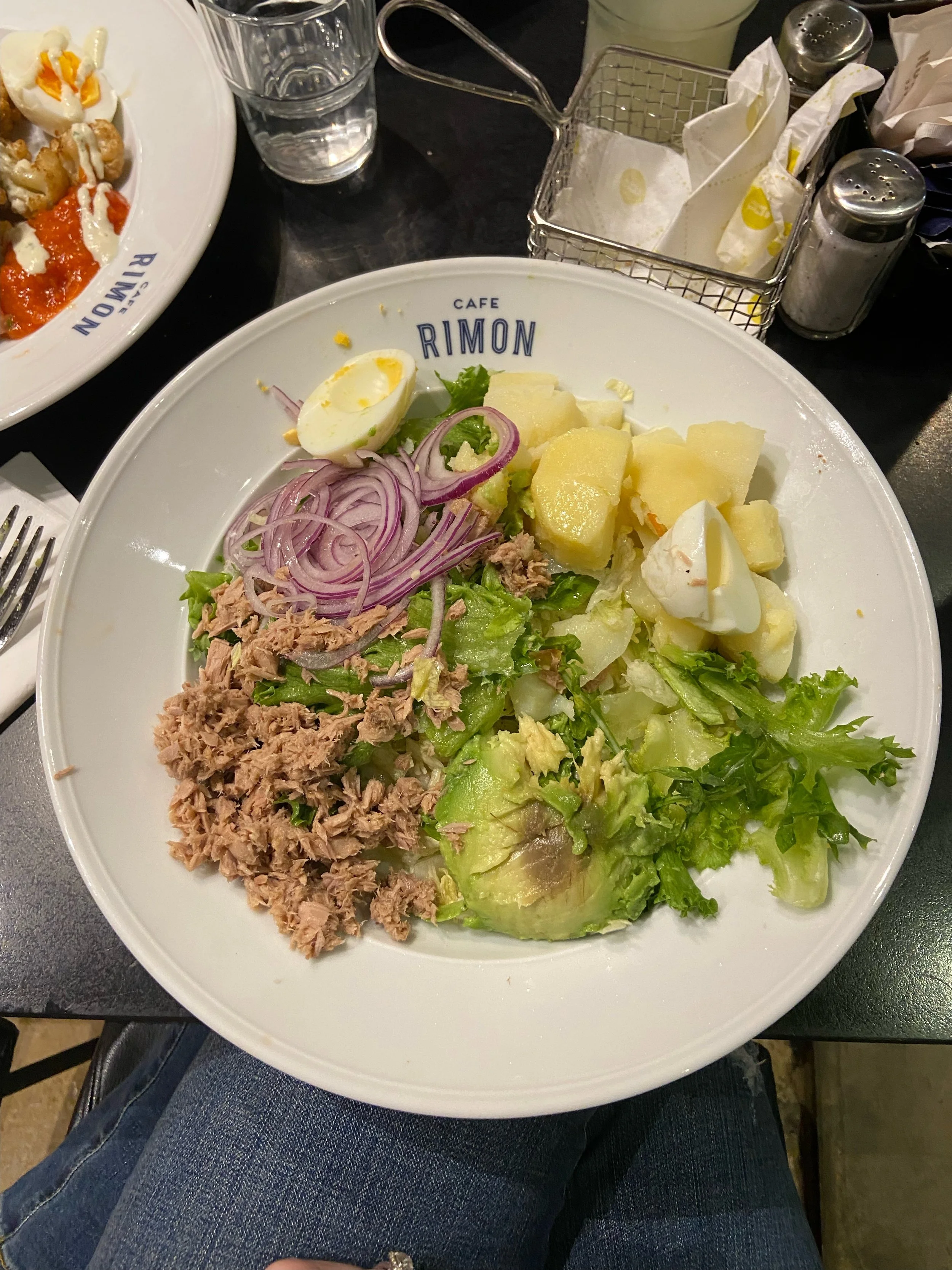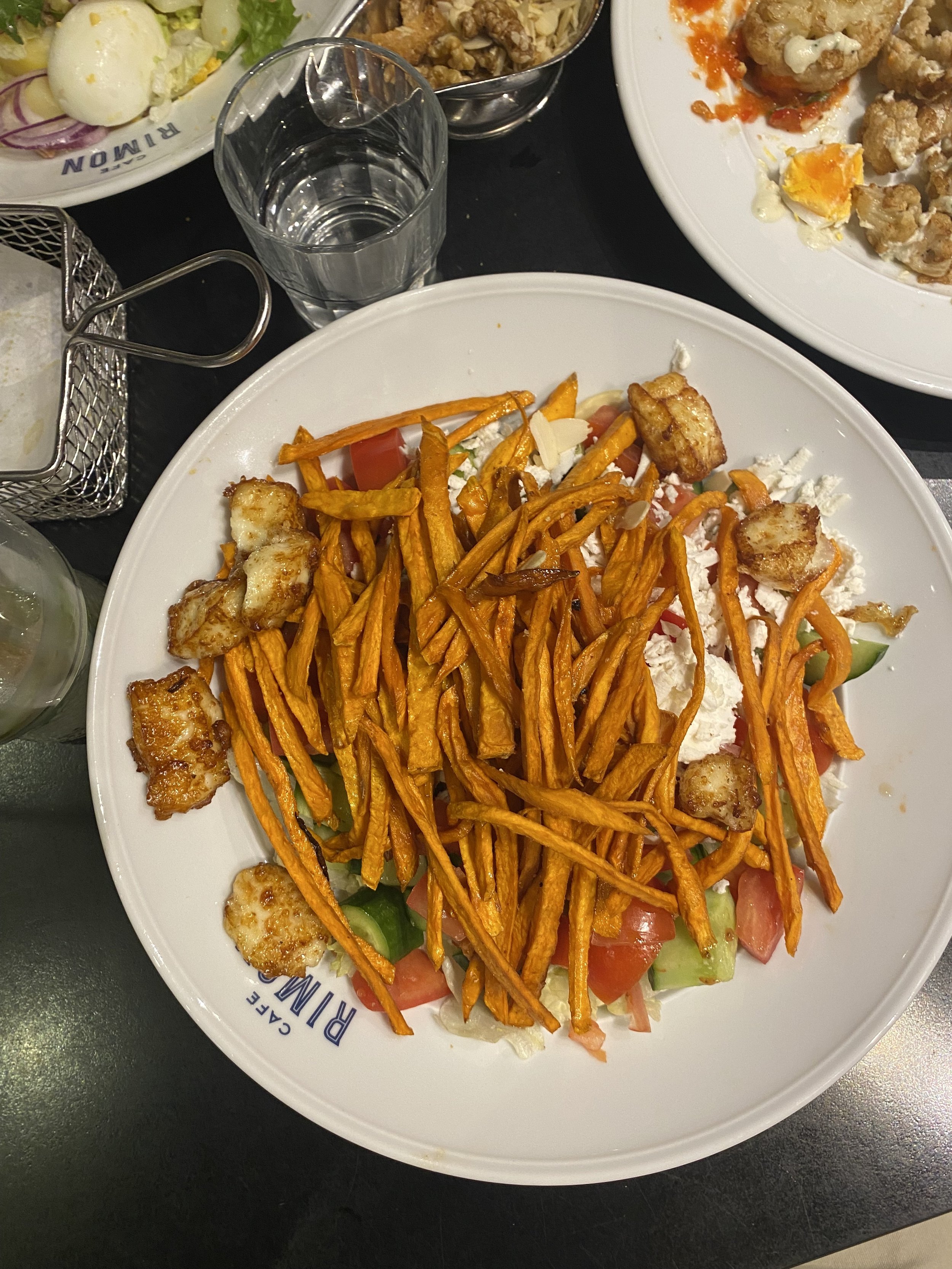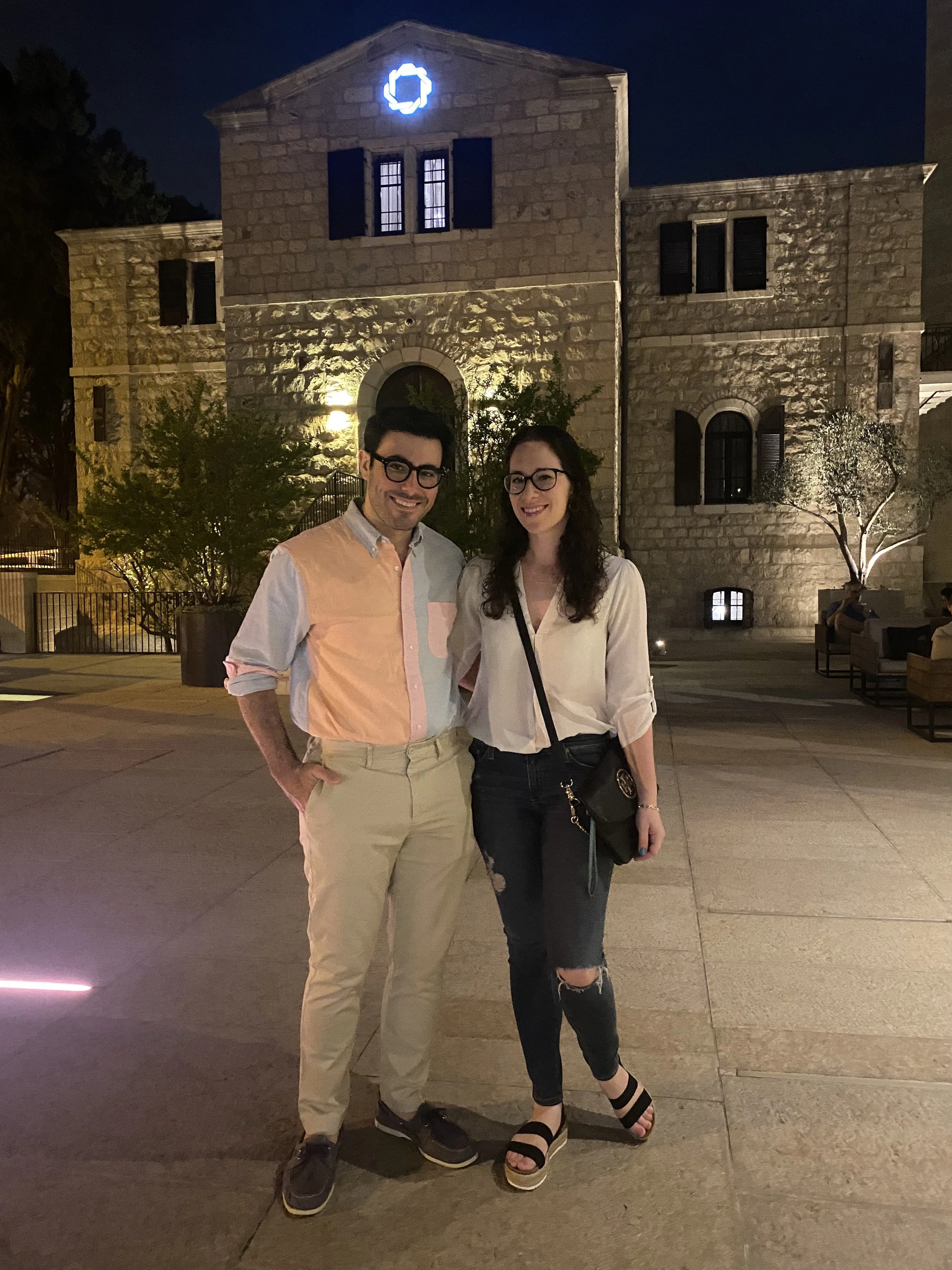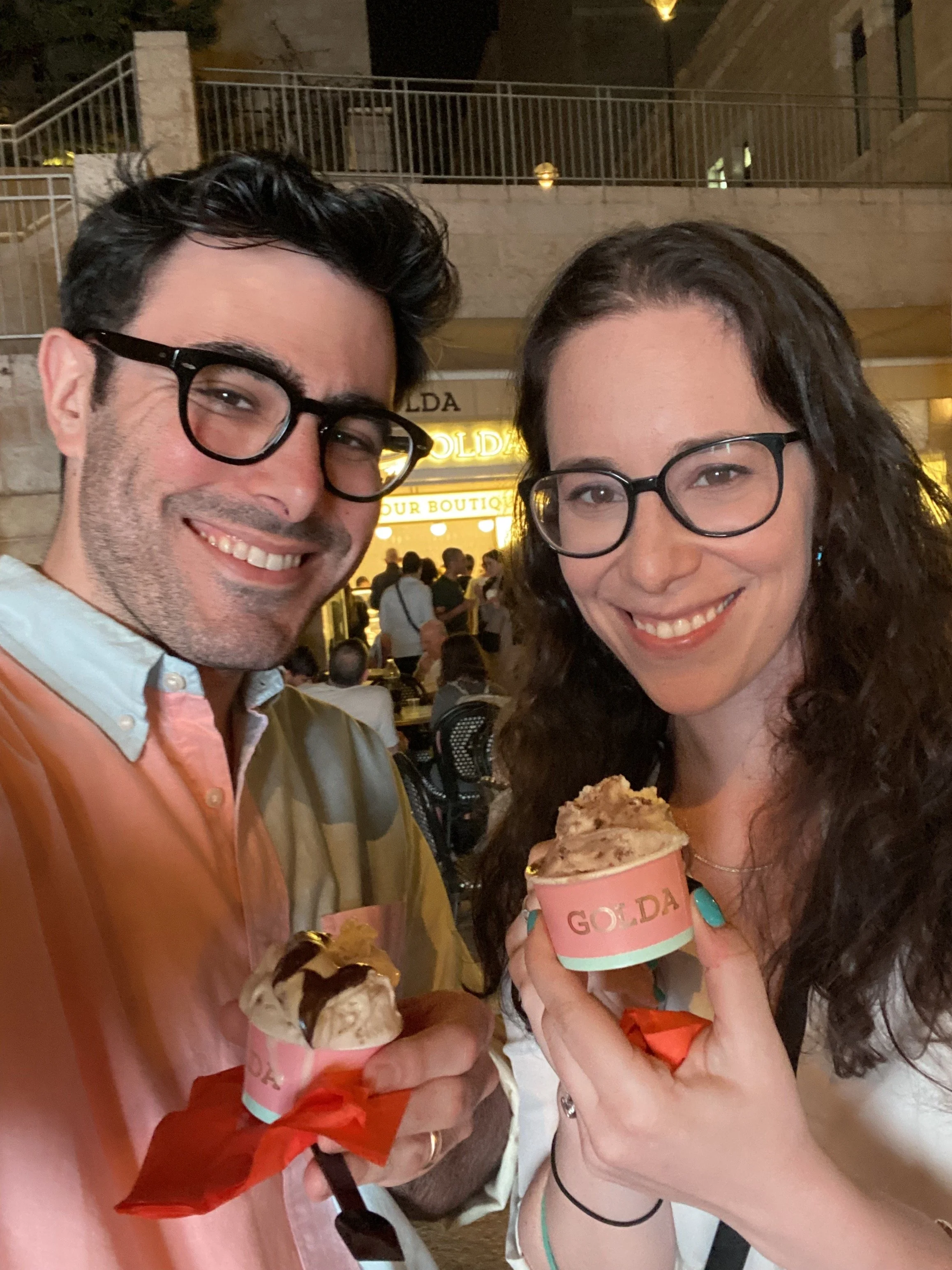 Tzvi and took showers in our new room. It was nice, but we immediately saw that the shower drain was clogged so we had to call a man to fix that. Then we headed to Mamilla for dinner and ended up at Café Rimon, which was delicious. We shared a cauliflower starter, I had a niçoise salad and Tzvi had a sweet potato salad. They also gave us Pesach bread, which came with salsa and salad dressing. Why? Because it’s Israel. After dinner we got some ice cream and I bought these pink pants that I wonder if I’ll ever wear.