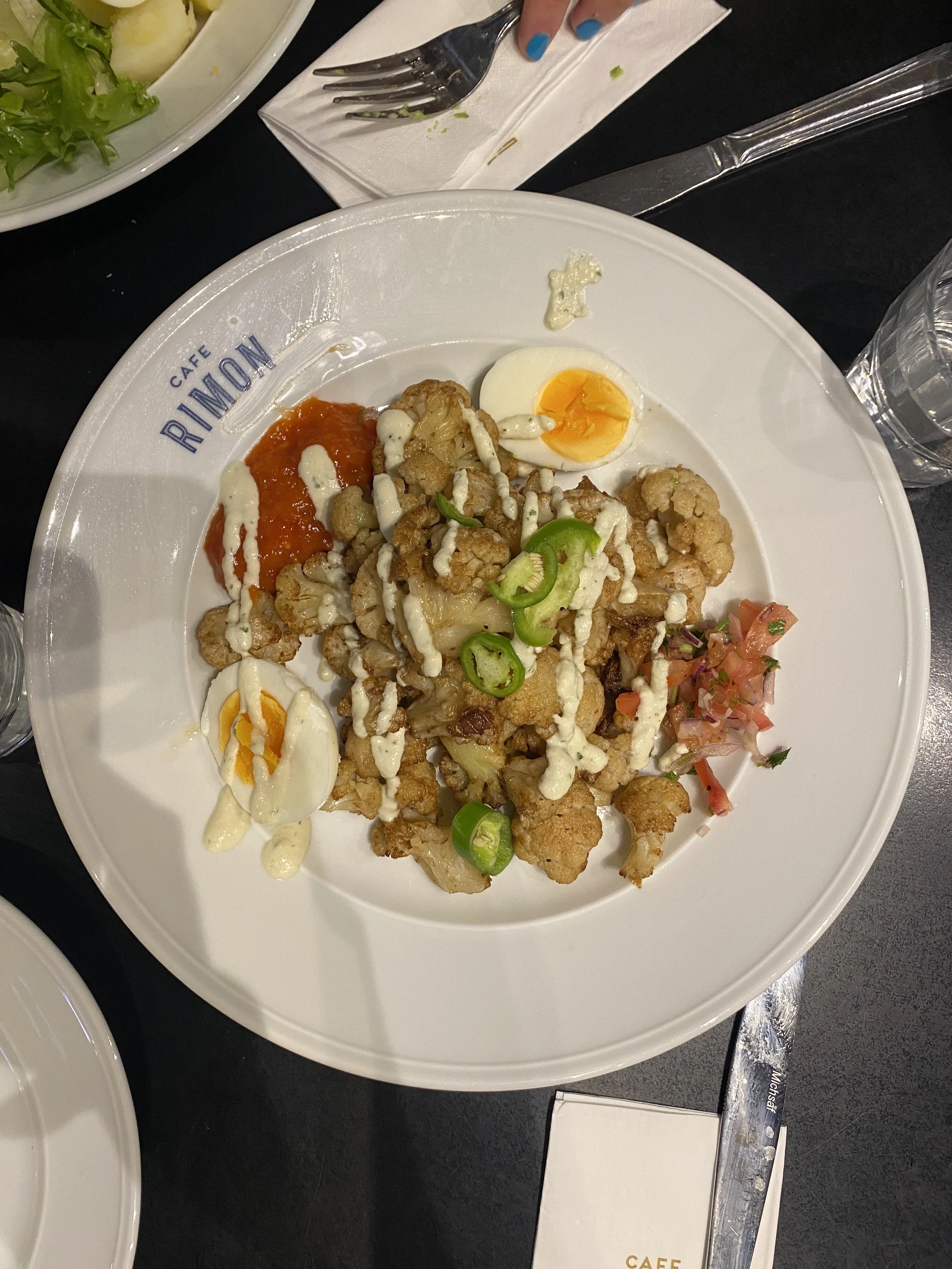 It took about a half hour to drive across the city to a café called Lorenz and Minz, which was maybe the only restaurant in the entire city of Tel Aviv that was serving a kitniyot free lunch. The restaurant was basically a nice outdoor garden with a buffet inside. Thankfully it wasn’t terribly hot. The buffet had great cauliflower and decent tuna. There was also pizza and gnocchi and some salads. The food was actually all pretty good.